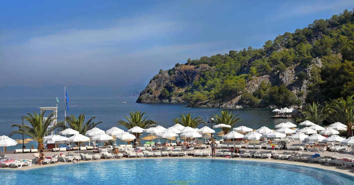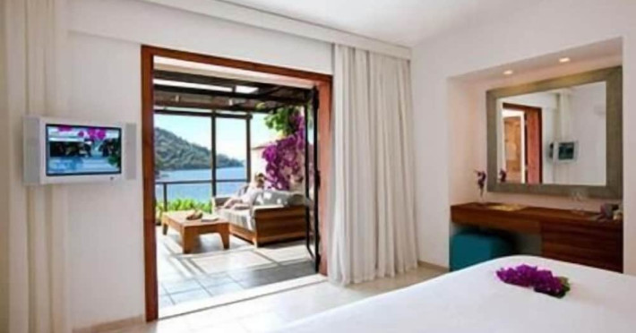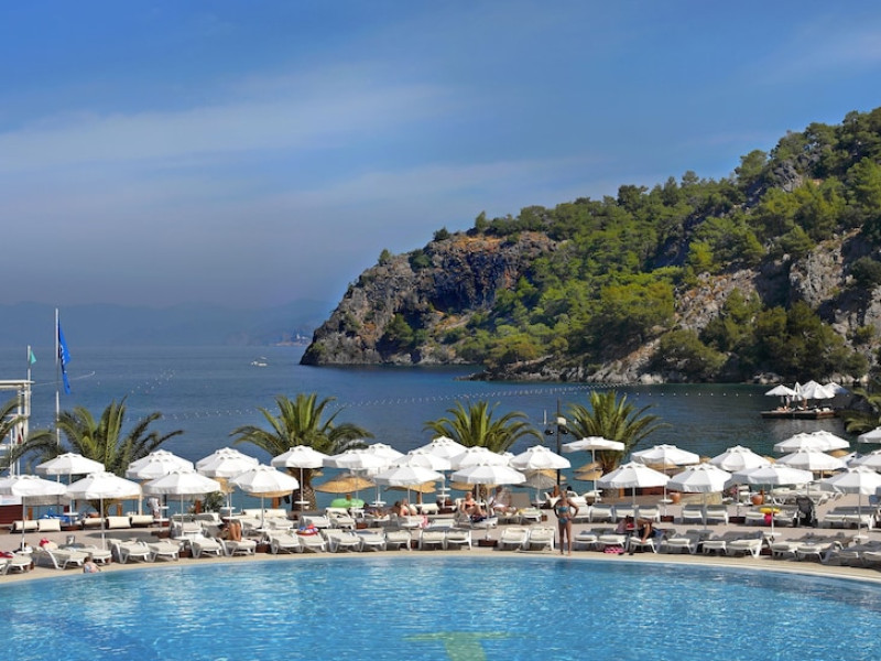 Facilities and services include 24-hour reception, wireless Internet access, swimming pool, spa (extra charge), Turkish bath, sauna, jacuzzi, gym, meeting room, kid's club, bar, solarium, restaurant, garden, terrace, night club, children's pool, and elevator.Rooms feature a TV, telephone, air conditioning, wireless Internet access, safe, hairdryer, bathroom, and minibar.** Please note that some of the above facilities may be closed due to weather / seasonal conditions.**** Please note that FLIGHT AND FULL NAMES INFORMATION REQUEST: It is very important for the hotel to get these details. Hotelier does not confirm even as optional if there is no information regarding their flight, full name, and surname of each client.**Address: Kalemya Koyu Pk 123, 48300, Fethiye, Turkey.