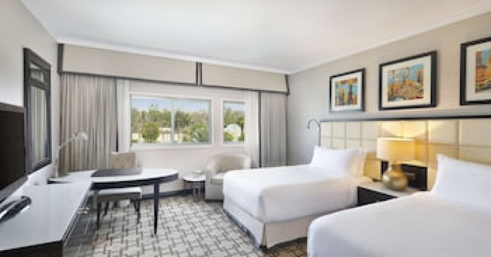 Escape to the presidential quarter in Heliopolis, less than five miles from Cairo International Airport, City Center Almaza, and Baron Empain Palace. Cairo International Convention Center is nine miles away. Enjoy two outdoor pools with cabanas, a children's pool, a fitness center, squash courts, and 13 dining options. The concierge will help you plan your days. All rooms feature touches of Egyptian heritage in their decor. Each air-conditioned rooms has flat-screen TV, a mini-bar and a work desk. Some rooms have panoramic pool views. The Casino offers the best in gaming in a fun and relaxed atmosphere. It offers the excitement of slot machines, video poker, and table games such as Blackjack and American Roulette as well as an intimate bar. Hilton Cairo Heliopolis Hotel has 13 different restaurants and snack-bars which include Thai, Indian, Latin, Italian, French, Japanese, Chinese, Egyptian & Lebanese cuisines. Traditional English dishes are served at Darts pub, the sports bar. Hilton Cairo Heliopolis Hotel is 3.1 mi away from Cairo International Airport.When booking more than 9 rooms, different policies and additional supplements may apply.