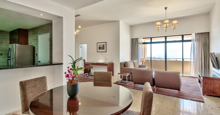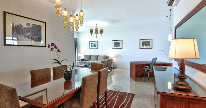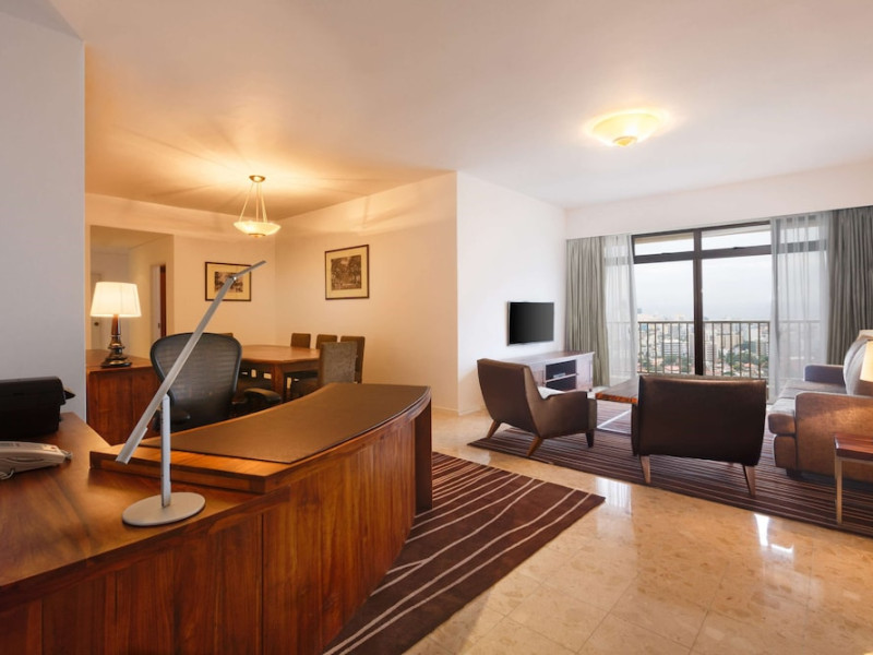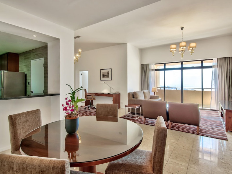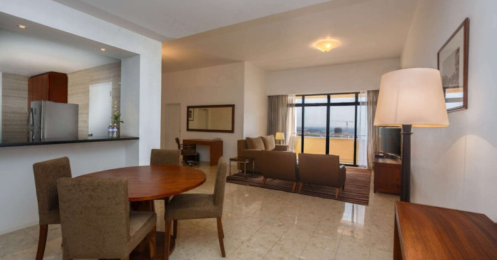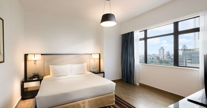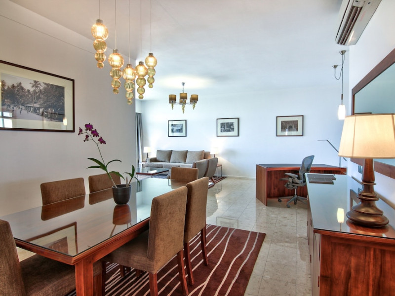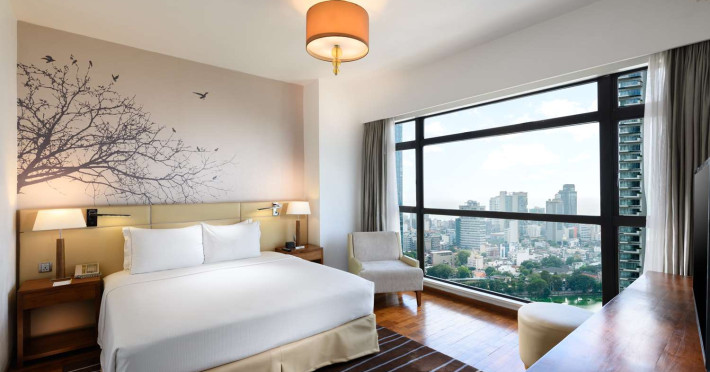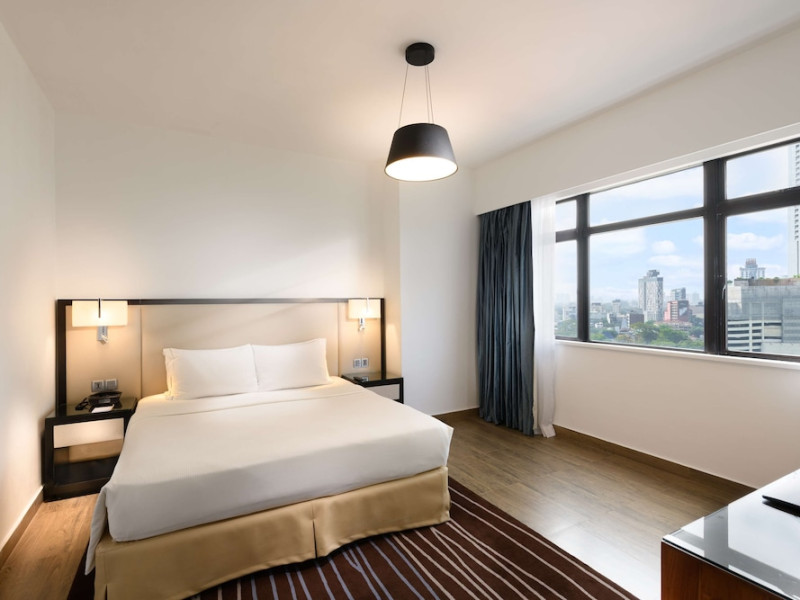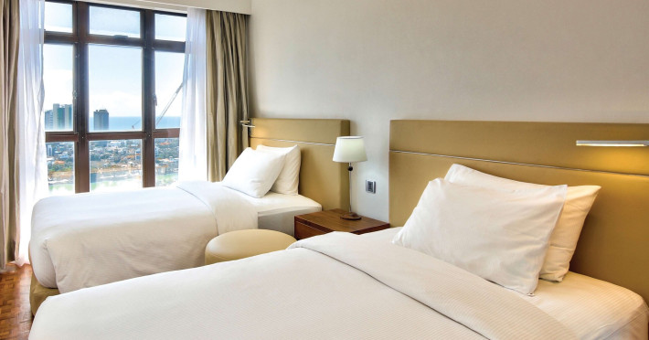 Hilton Colombo Residences offers 177 stylish rooms and suites with views of the Indian Ocean and the metropolis of Colombo. It is located near major banking institutions, supermarkets, hospitals, and shopping and cultural destinations, including Colombo City Centre and Gangaramaya Temple. The hotel features global and casual dining options at BASICO and FLOW, a bar/lounge, and a poolside bar. Recreational amenities include an outdoor pool, a hot tub, and an outdoor tennis court, as well as fitness facilities and massage services. For a surcharge, guests may use a roundtrip airport shuttle (available 24 hours) and a train station pick-up service. The hotel provides venues for conferences and events with capacity of up to 850 guests and 1115 square meters of space consisting of a conference center and meeting rooms. Complimentary wireless internet access is available. Breakfast is available with reduced service. The Executive Lounge is currently not available. The Hilton Colombo Residence is a All Suite, Business, Leisure, Tourist hotel. The nightlife/restaurants are located in the hotel.