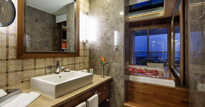 Camera de familie, 2 dormitoare, Village, Swim-Up: suprafata camerei 142 m2, in vile swim-up, acces direct la piscina de pe terasa, serviciu de transfer catre cladirea principala si plaja.