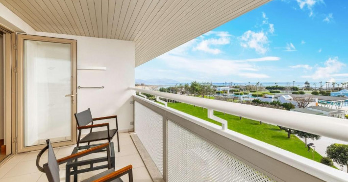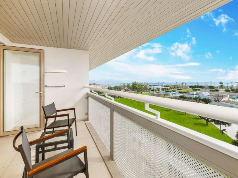 Camera twin cu vedere la mare, Cladirea principala, Piscina comuna: suprafata camerei 34 m2, situata la primul etaj, acces direct la piscina prin scari.