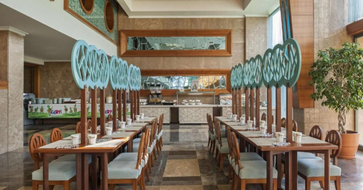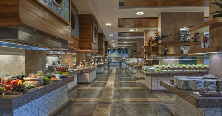 Cina disponibila in 7 restaurante à la carte (19:00-22:30, rezervare necesara, contra cost, asiatic, japonez, italian, turcesc, indian, peste, gratar)