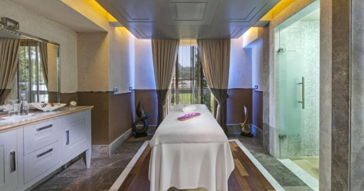 Luxosul hotel de cinci stele, situat chiar pe o plaja privata din zona Sarigerme. Acesta ofera cazare in camere si vile elegante cu vedere la mare, inclusiv camere cu acces direct la piscina. Complexul dispune de zece piscine exterioare, un parc acvatic cu tobogane, o piscina interioara si facilitati sportive extinse. Relaxarea este asigurata de un centru spa modern, cu hamam, sauna, baie cu aburi si o gama larga de masaje si tratamente wellness.