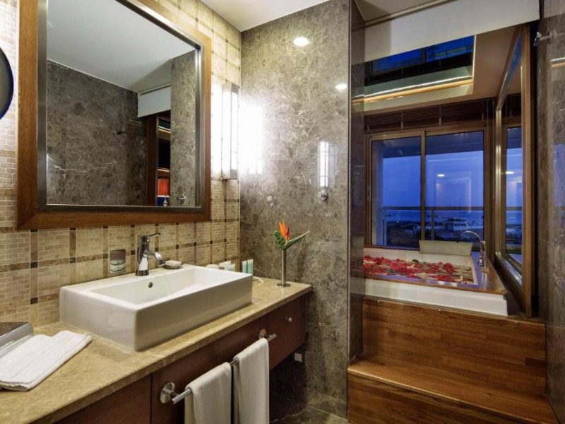 Camera dubla, Deluxe, Village, Swim-Up: suprafata camerei 71 m2, in vile swim-up, acces direct la piscina de pe terasa, serviciu de transfer catre cladirea principala si plaja.