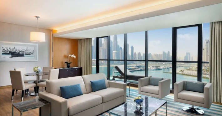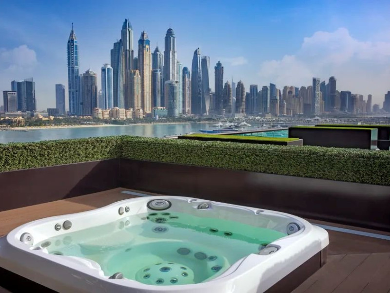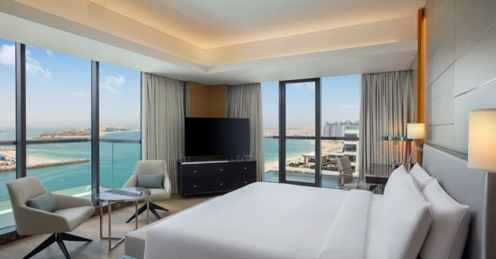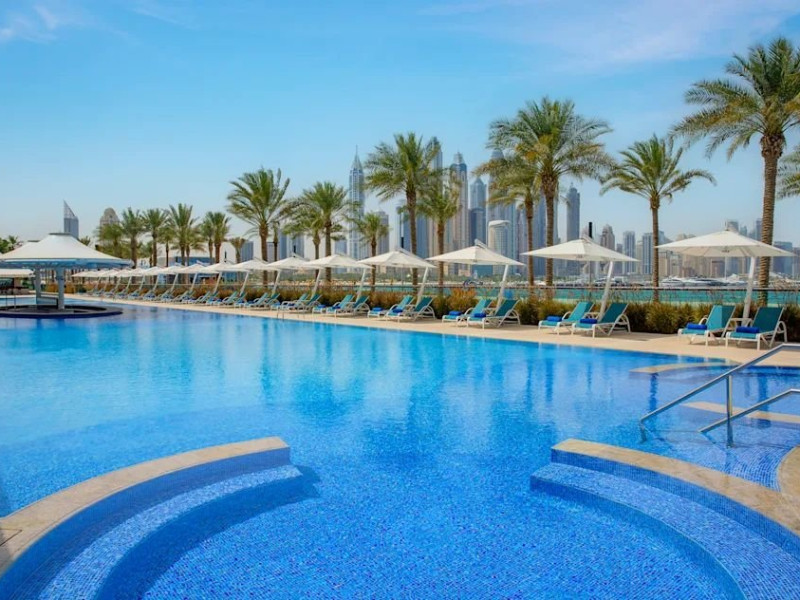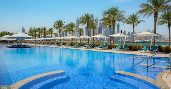 Descriere: Hilton Dubai Palm Jumeirah este un resort premium de 5 stele, situat direct pe plaja, pe celebra Palm Jumeirah, oferind privelisti spectaculoase asupra Golfului Arabic si a siluetei Dubai Marina. Hotelul combina eleganta moderna cu atmosfera relaxanta de vacanta la mare, fiind ideal pentru cupluri, familii si calatorii de afaceri. Resortul dispune de plaja privata, piscina cu vedere la ocean, centru spa de lux, parcare gratuita si zece restaurante si baruri cu concepte culinare diverse. Camerele si suitele sunt spatioase, luminoase si concepute pentru confort maxim, multe dintre ele avand balcoane private si vederi impresionante catre mare. Localizare: Hotelul este amplasat pe Palm West Beach, pe exclusivista Palm Jumeirah, cu acces direct la promenada si la plaja. Locatia ofera atat liniste si relaxare, cat si acces facil catre principalele atractii, centre comerciale si zone de divertisment din Dubai. Dotari camera: Hilton Dubai Palm Jumeirah ofera camere Deluxe, camere Executive si suite elegante. Toate unitatile de cazare dispun de balcon privat, aer conditionat, TV, Wi-Fi, minibar, seif si bai moderne. Camerele Executive ofera acces la Executive Lounge, iar suitele pun la dispozitie spatiu suplimentar, vederi panoramice si, in unele cazuri, terase private si cada tip whirlpool. Serviciul de room service este disponibil, oferind preparate de calitate, servite in intimitatea camerei. Facilitati hotel: Hotelul ofera o plaja privata complet amenajata, piscina exterioara cu vedere la mare, eforea Spa cu zone de relaxare si tratamente premium, centru de fitness modern, parcare gratuita, club pentru copii Pirates Kids Club cu spatii de joaca interioare si exterioare, precum si activitati recreative pentru toate varstele. Resortul dispune de zece restaurante si baruri cu specific international, asiatic, american, polinezian si bufet international, inclusiv locatii pe plaja si pe acoperis. De asemenea, hotelul pune la dispozitie facilitati pentru intalniri si evenimente, sali de conferinta, ballroom elegant si spatii dedicate nuntilor si evenimentelor private. Site web: https://www.hilton.com/en/hotels/dxbpjhi-hilton-dubai-palm-jumeirah Nota informativa: Pentru anumite facilitati din hotel sau din camera, hotelierul poate solicita taxe suplimentare. La sosire, solicitati receptiei informatii exacte privind aceste costuri. Taxa turistica obligatorie: se achita la receptie.