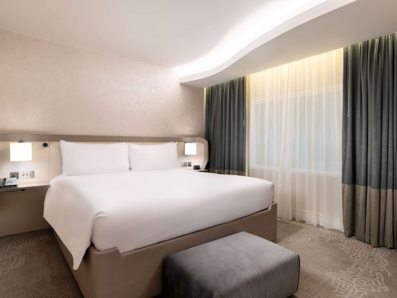 Connected to Heathrow Airport's Terminal 4 via a covered walkway and less than 15 minutes from Terminals 2, 3, and 5, the recently refurbished Hilton London Heathrow Airport Hotel offers 398 guest rooms, including executive rooms and suites. Rooms feature flat-screen televisions, satellite programming, wired and wireless internet access (surcharge), private bathrooms with complimentary toiletries and hair dryers, phones, laptop-compatible safes, and desks. Guests can enjoy three OXBO dining experiences (Café, Bar, and Kitchen), a restaurant, coffee shop/cafe, bar/lounge, and 24-hour room service. The hotel also provides a fitness center, terrace, garden, complimentary wireless internet access, concierge services, and gift shops/newsstands. For families, the hotel offers a bespoke Family Experience with dedicated kids' amenities, a Kids Welcome, a Kids Breakfast, and a Kids Menu. The hotel boasts extensive conference, events, and meeting facilities with multiple meeting rooms and offers Hilton’s EventReady Hybrid Solutions. Onsite recreation includes running and walking trails in the parklands. The Hilton Heathrow Terminal 4 Hotel is a Airport Hotel, Full Service, Modern, Tourist hotel. Located in Heathrow Airport area. The nightlife/restaurants are easily accessible by taxi or bus from the hotel.