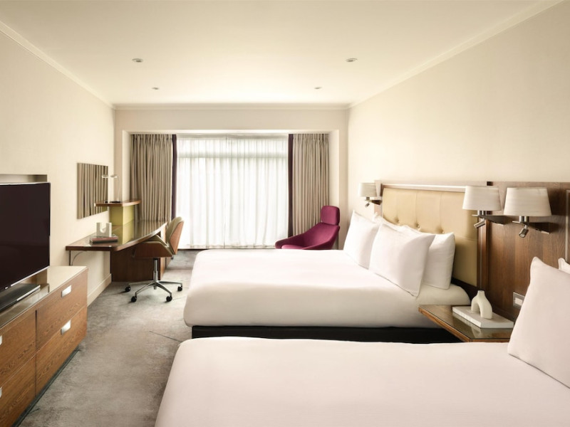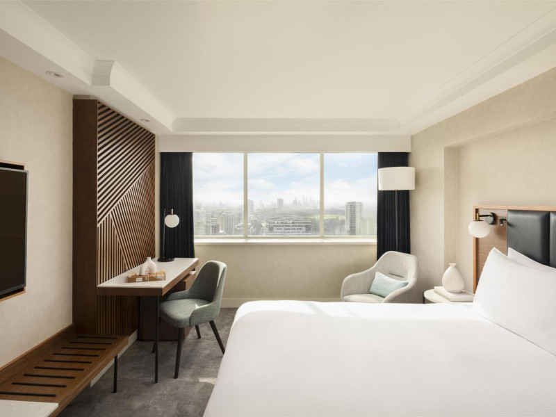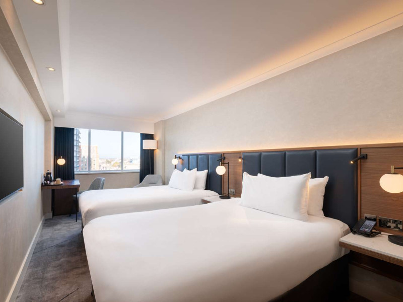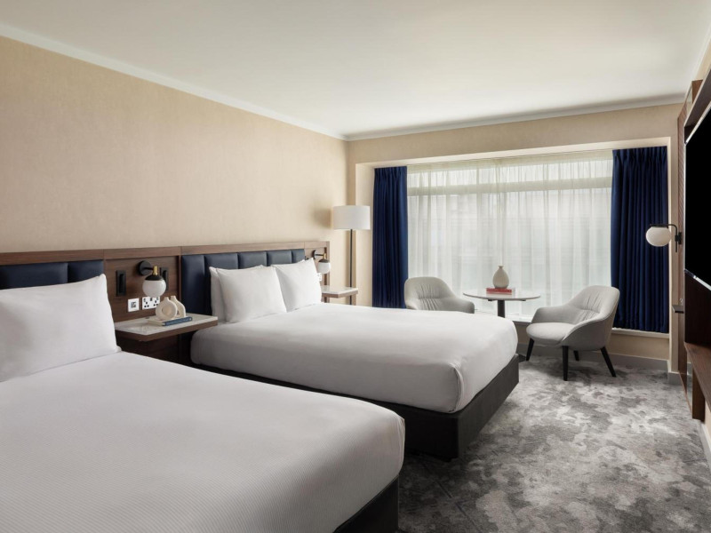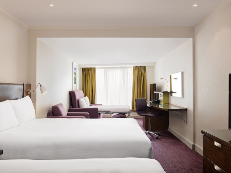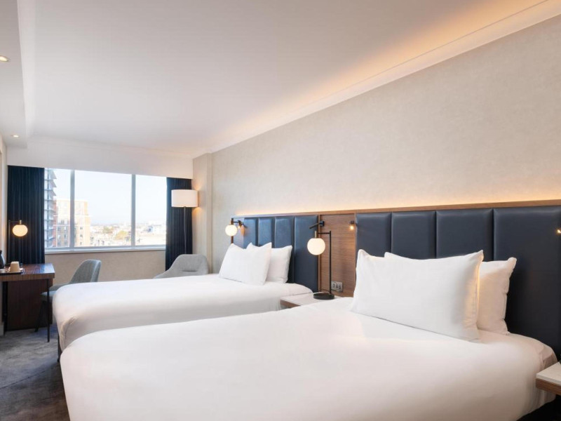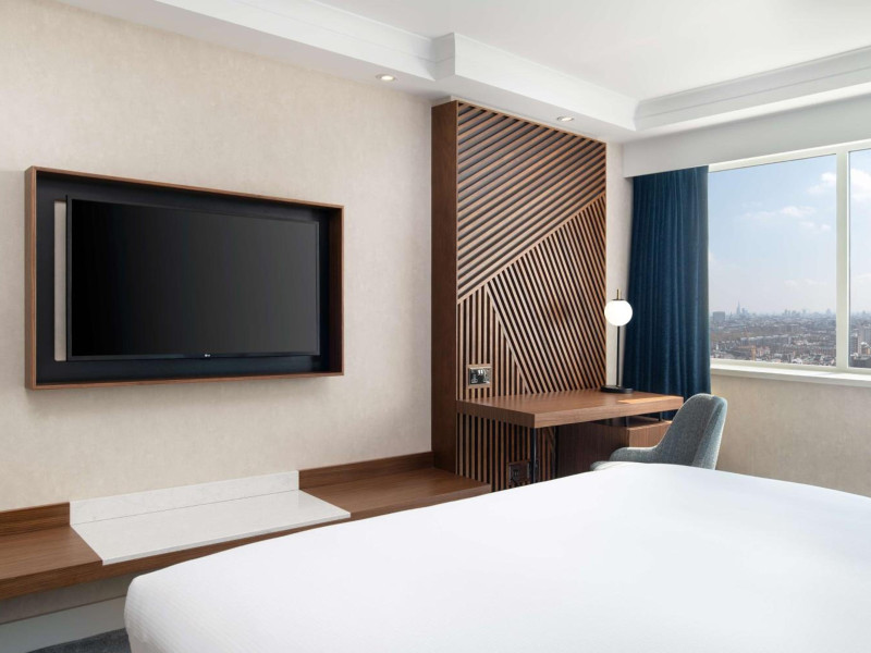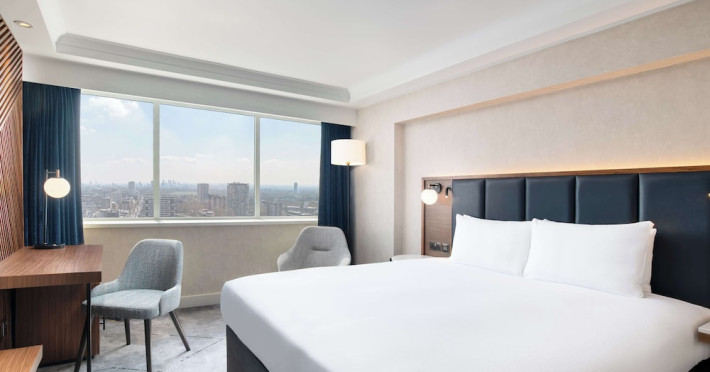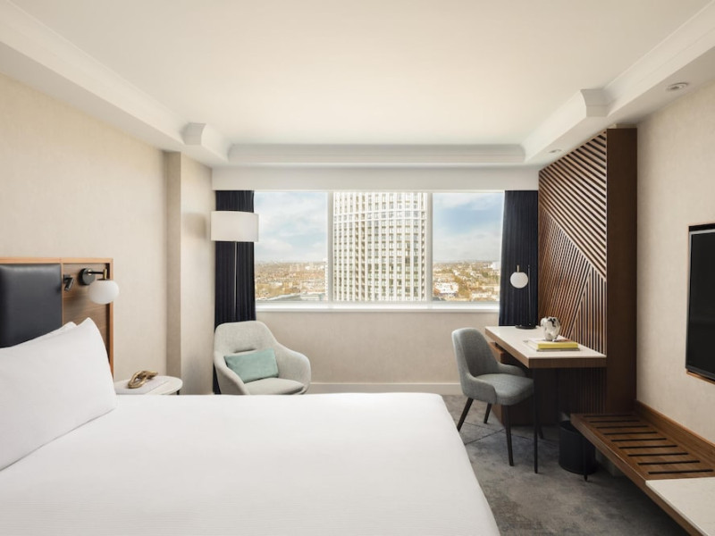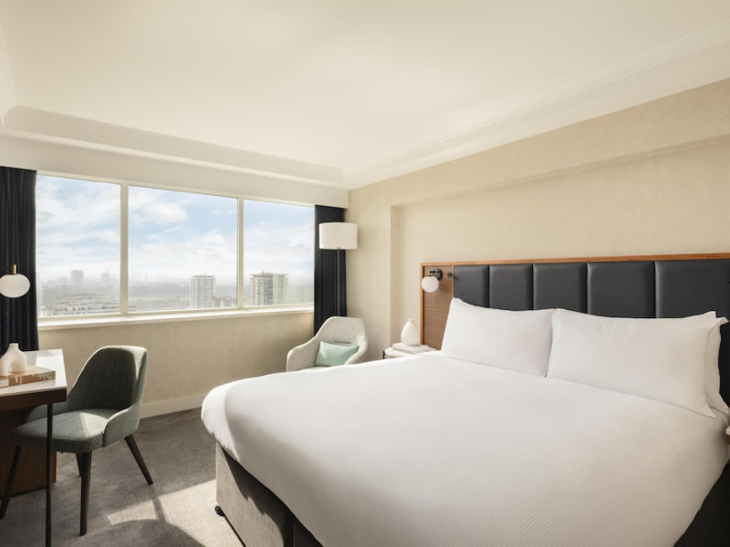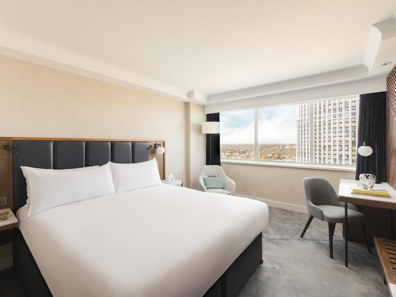 The Hilton London Metropole offers 1,100 guest rooms, including suites and executive rooms, many with London skyline views. Located centrally in London, it's within a mile of Hyde Park and Paddington Station, and a short walk from Edgware Road Underground Station (four tube lines). The hotel features four uniquely themed bars and restaurants (including Tyburn Kitchen with a Josper Charcoal grill and Bow Bar with unique cocktails), a gym, a refurbished executive lounge, 24-hour room service, and a coffee shop/cafe. Amenities include complimentary Wi-Fi, concierge services, a business center, and self-parking (fee applies). Rooms have refrigerators, LED TVs, private bathrooms with toiletries, and laptop-compatible safes. Buffet breakfast is available (fee applies). The hotel also boasts over 35 event rooms, including three ballrooms, and has received three sustainability accreditations. It is approximately 15 minutes from Heathrow Airport via the Heathrow Express. The Hilton London Metropole is a Tourist hotel. The nightlife/restaurants are easily accessible by taxi or bus from the hotel.