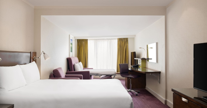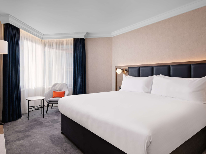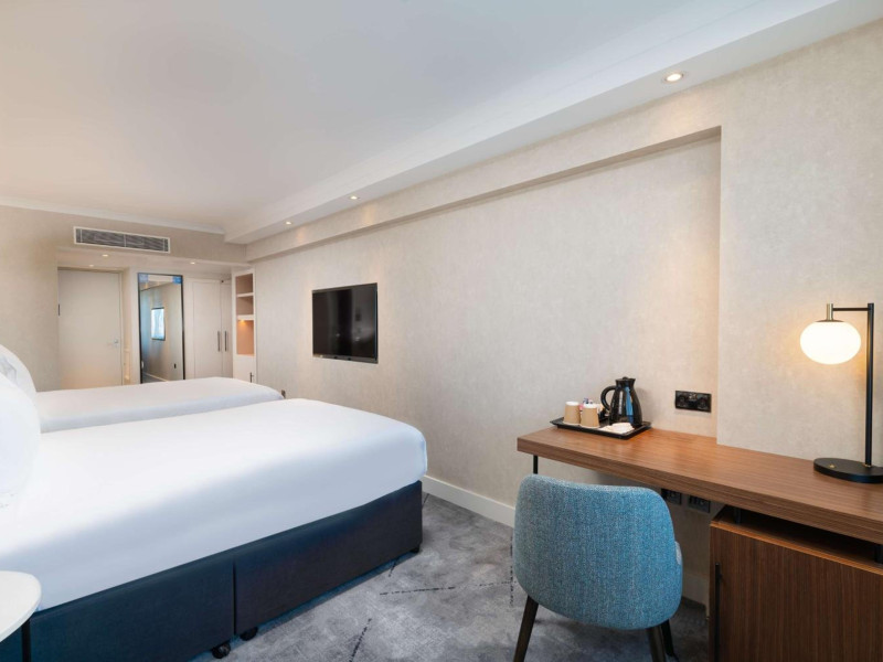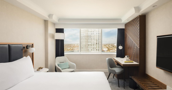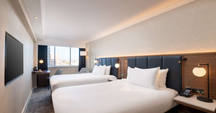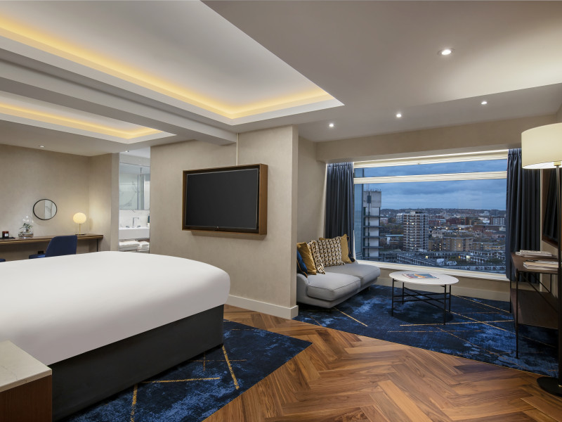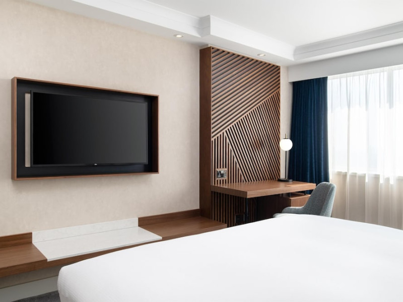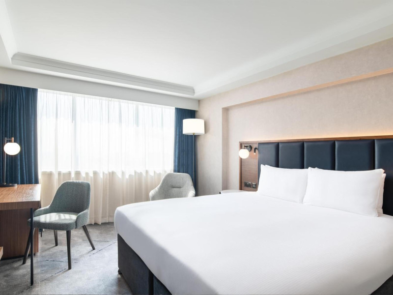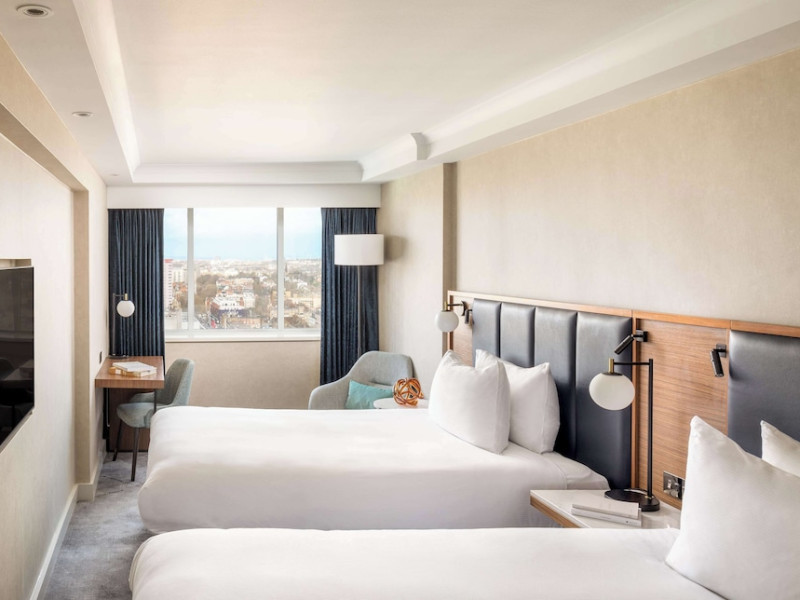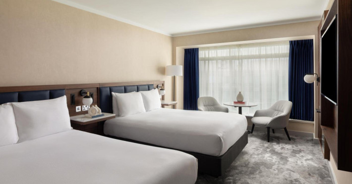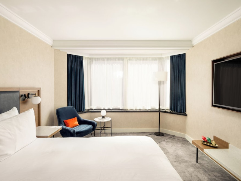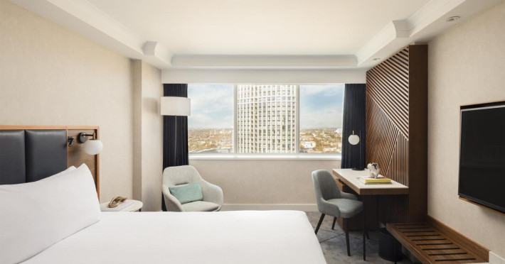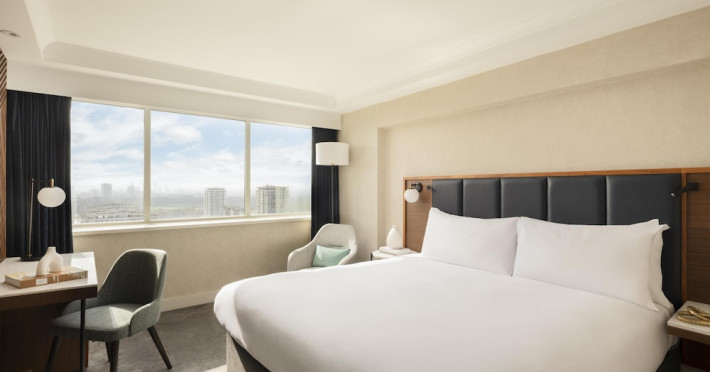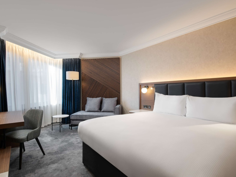 The Hilton London Metropole offers 1,100 guest rooms, including suites and executive rooms, many with London skyline views. Located centrally in London, it's within a mile of Hyde Park and Paddington Station, and a short walk from Edgware Road Underground Station (four tube lines). The hotel features four uniquely themed bars and restaurants (including Tyburn Kitchen with a Josper Charcoal grill and Bow Bar with unique cocktails), a gym, a refurbished executive lounge, 24-hour room service, and a coffee shop/cafe. Amenities include complimentary Wi-Fi, concierge services, a business center, and self-parking (fee applies). Rooms have refrigerators, LED TVs, private bathrooms with toiletries, and laptop-compatible safes. Buffet breakfast is available (fee applies). The hotel also boasts over 35 event rooms, including three ballrooms, and has received three sustainability accreditations. It is approximately 15 minutes from Heathrow Airport via the Heathrow Express. The Hilton London Metropole is a Tourist hotel. The nightlife/restaurants are easily accessible by taxi or bus from the hotel.