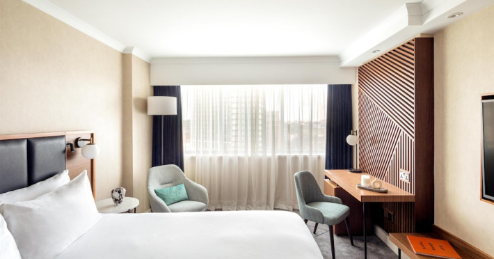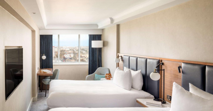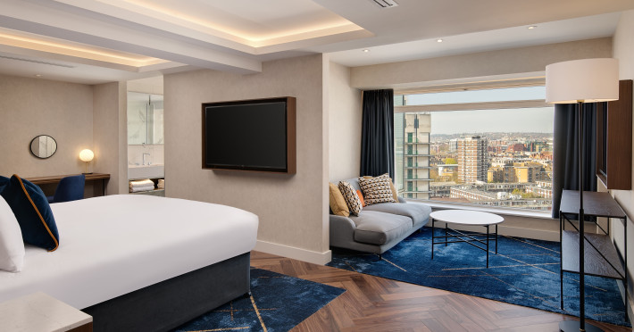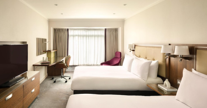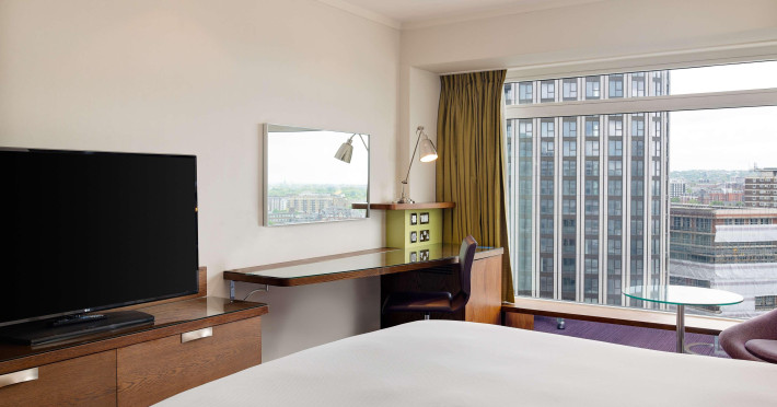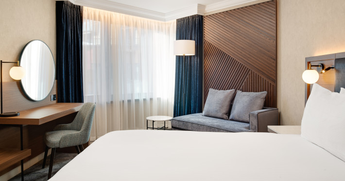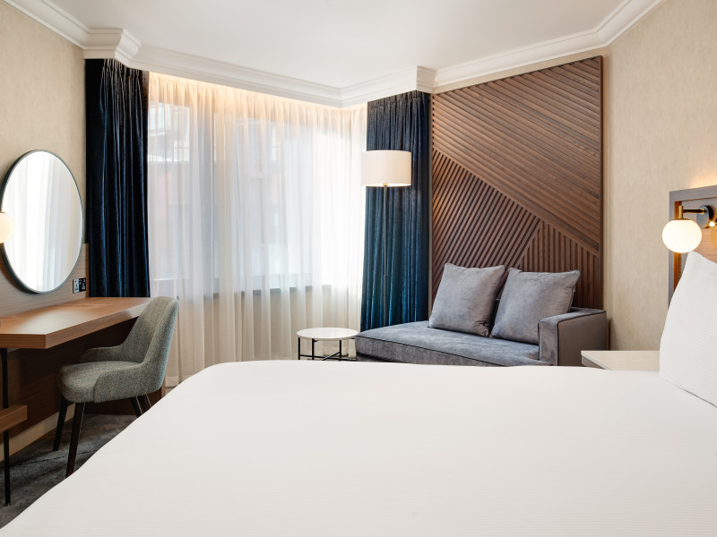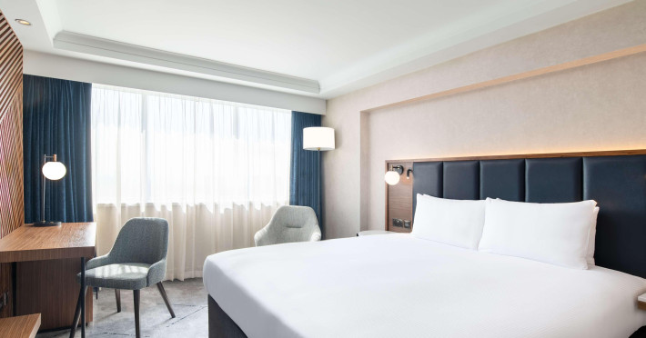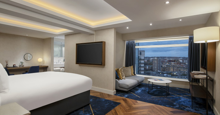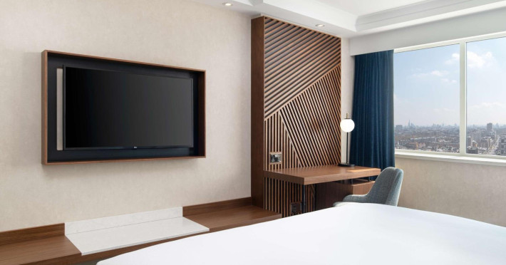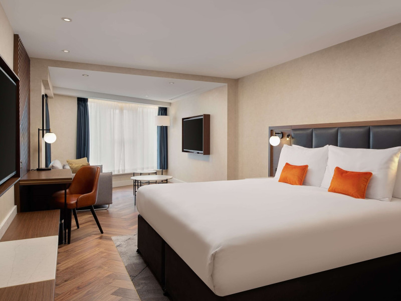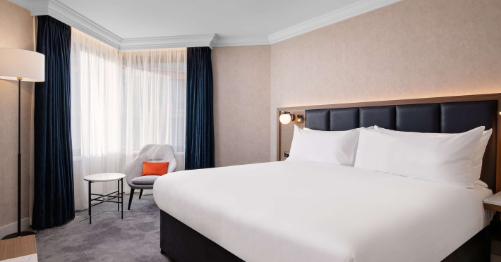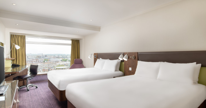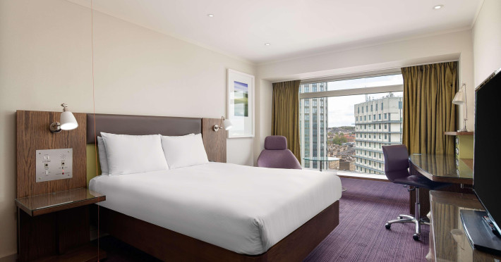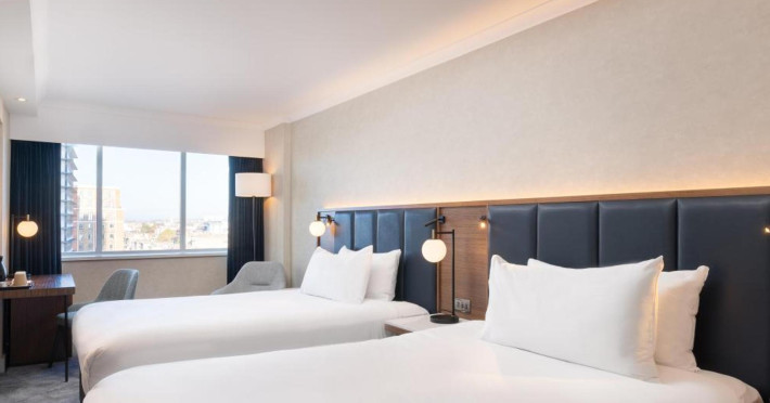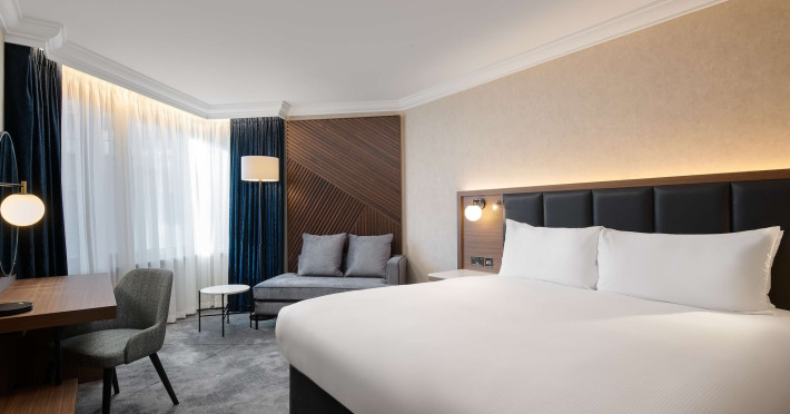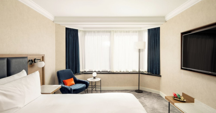 The Hilton London Metropole offers 1,100 guest rooms, including suites and executive rooms, many with London skyline views. Located centrally in London, it's within a mile of Hyde Park and Paddington Station, and a short walk from Edgware Road Underground Station (four tube lines). The hotel features four uniquely themed bars and restaurants (including Tyburn Kitchen with a Josper Charcoal grill and Bow Bar with unique cocktails), a gym, a refurbished executive lounge, 24-hour room service, and a coffee shop/cafe. Amenities include complimentary Wi-Fi, concierge services, a business center, and self-parking (fee applies). Rooms have refrigerators, LED TVs, private bathrooms with toiletries, and laptop-compatible safes. Buffet breakfast is available (fee applies). The hotel also boasts over 35 event rooms, including three ballrooms, and has received three sustainability accreditations. It is approximately 15 minutes from Heathrow Airport via the Heathrow Express. The Hilton London Metropole is a Tourist hotel. The nightlife/restaurants are easily accessible by taxi or bus from the hotel.