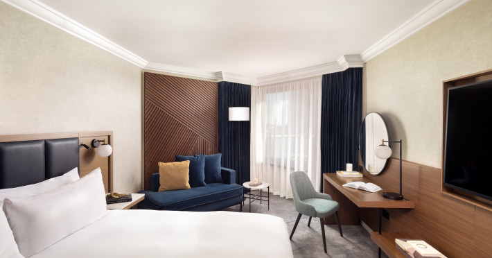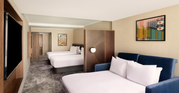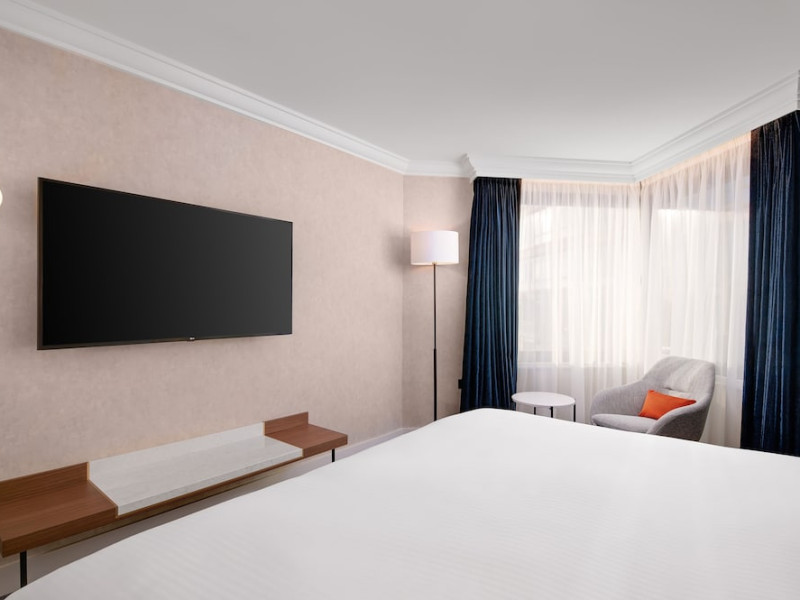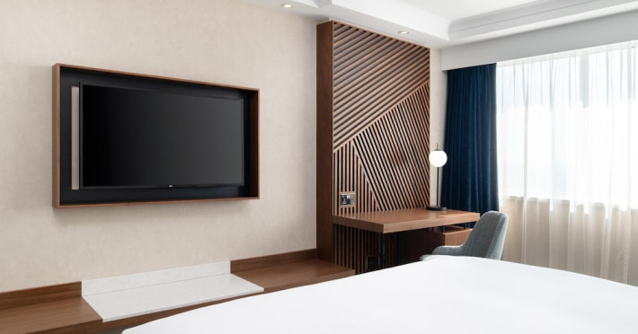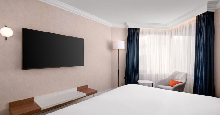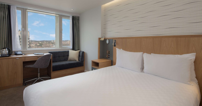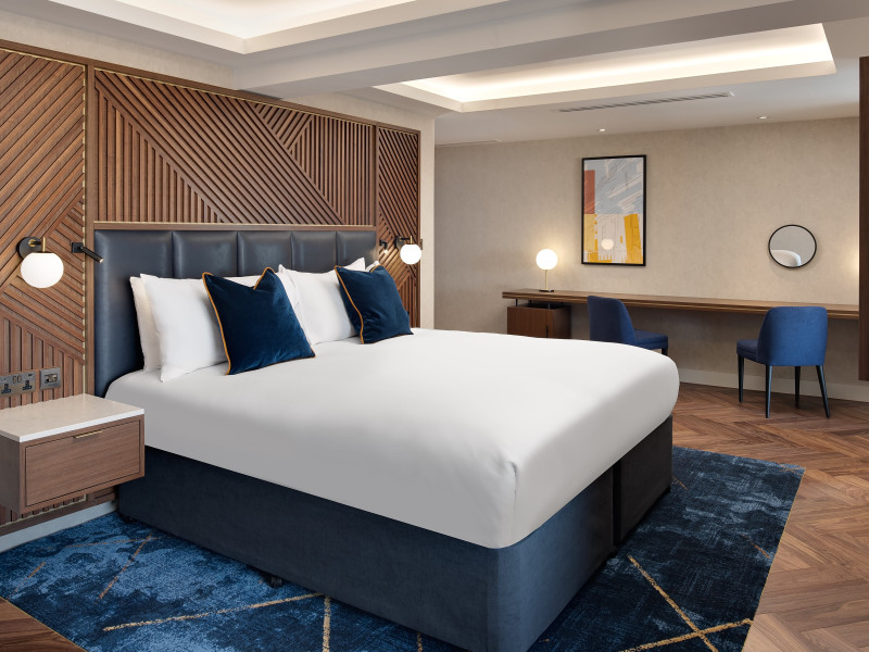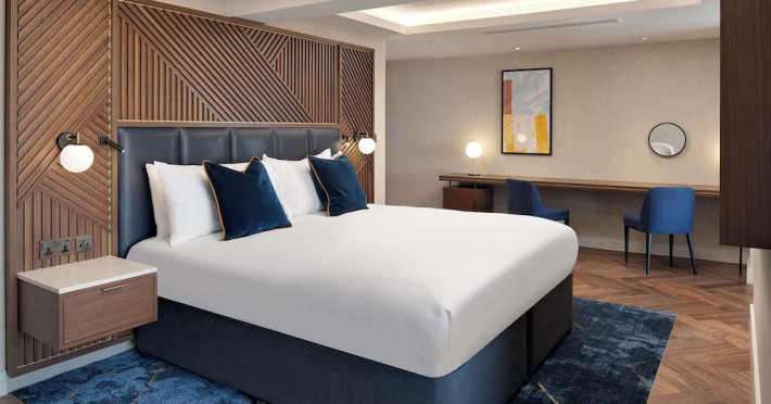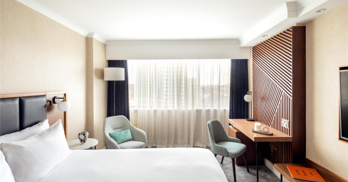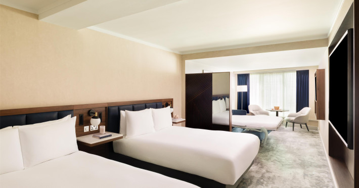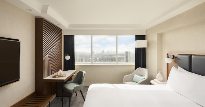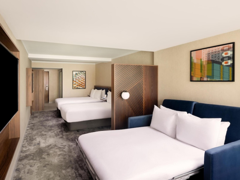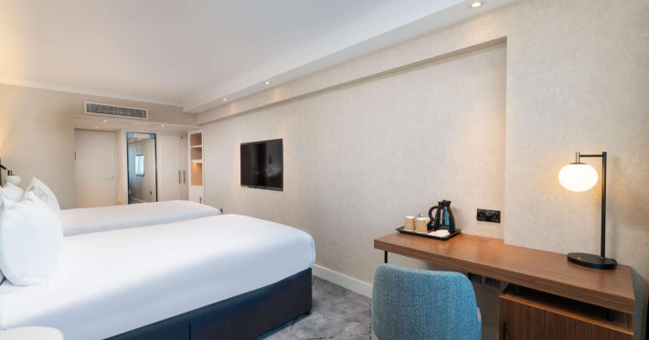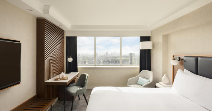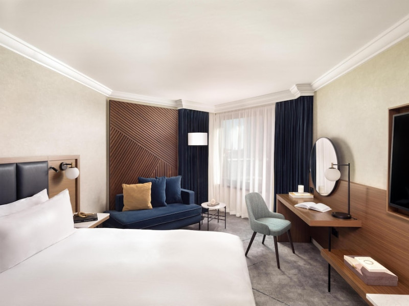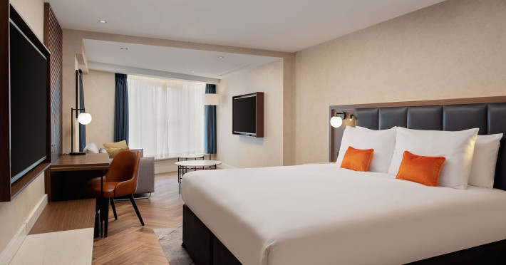 The Hilton London Metropole offers 1,100 guest rooms, including suites and executive rooms, many with London skyline views. Located centrally in London, it's within a mile of Hyde Park and Paddington Station, and a short walk from Edgware Road Underground Station (four tube lines). The hotel features four uniquely themed bars and restaurants (including Tyburn Kitchen with a Josper Charcoal grill and Bow Bar with unique cocktails), a gym, a refurbished executive lounge, 24-hour room service, and a coffee shop/cafe. Amenities include complimentary Wi-Fi, concierge services, a business center, and self-parking (fee applies). Rooms have refrigerators, LED TVs, private bathrooms with toiletries, and laptop-compatible safes. Buffet breakfast is available (fee applies). The hotel also boasts over 35 event rooms, including three ballrooms, and has received three sustainability accreditations. It is approximately 15 minutes from Heathrow Airport via the Heathrow Express. The Hilton London Metropole is a Tourist hotel. The nightlife/restaurants are easily accessible by taxi or bus from the hotel.