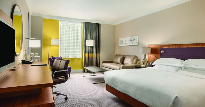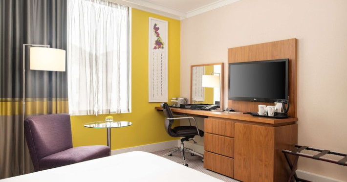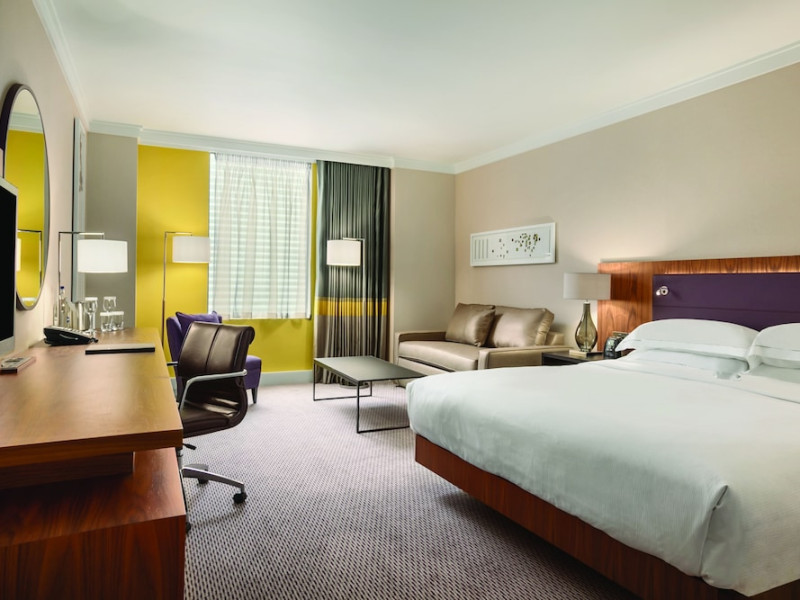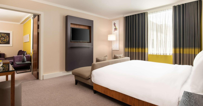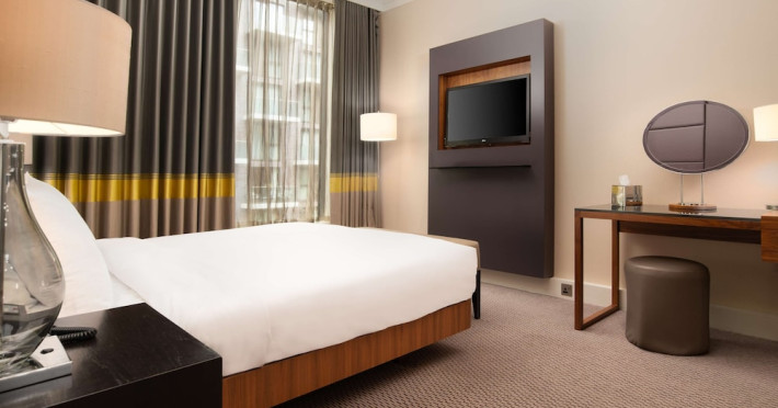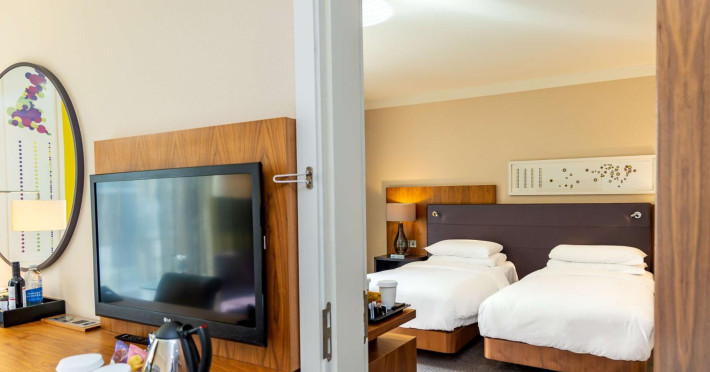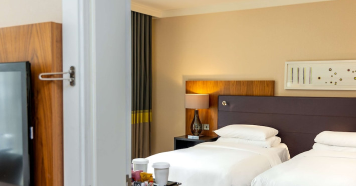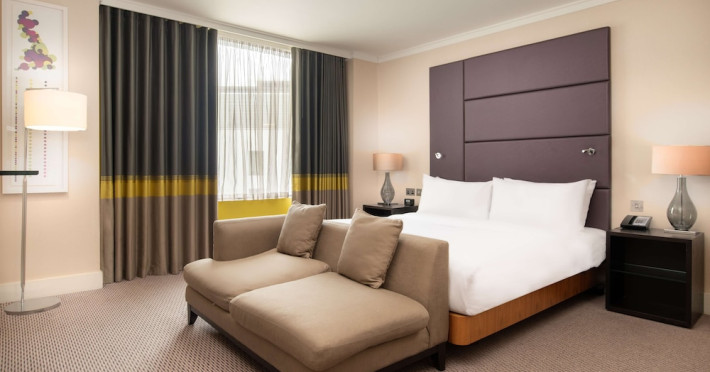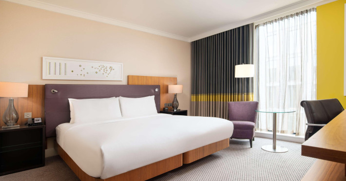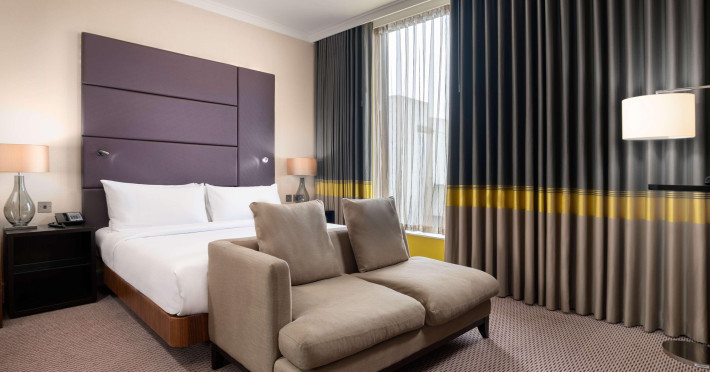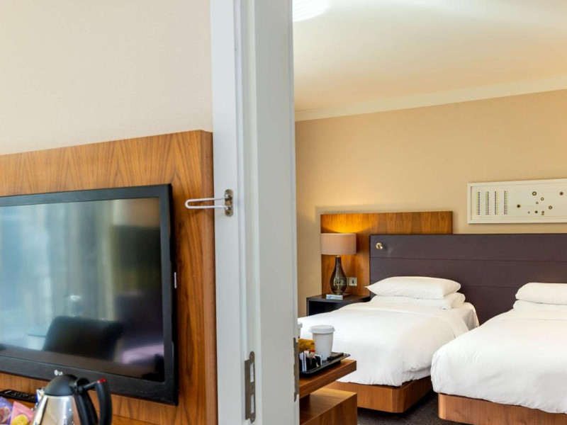Located next to Wembley Stadium and OVO Arena Wembley, Hilton London Wembley is near Wembley Park tube station and London Designer Outlet. Guest rooms feature en-suite facilities, a flat-screen TV, and a work desk. Guests can enjoy the restaurant and bar, including the Sky Bar & Roof Terrace and Icons Bar. The hotel offers an indoor pool, sauna, steam room, and a 24-hour fitness center. Additional amenities include a 24-hour business center, meeting rooms, Wi-Fi access, concierge services, and daily housekeeping. Discounted parking is available. Executive Room guests have access to the Executive Lounge with complimentary breakfast and evening canapes.
