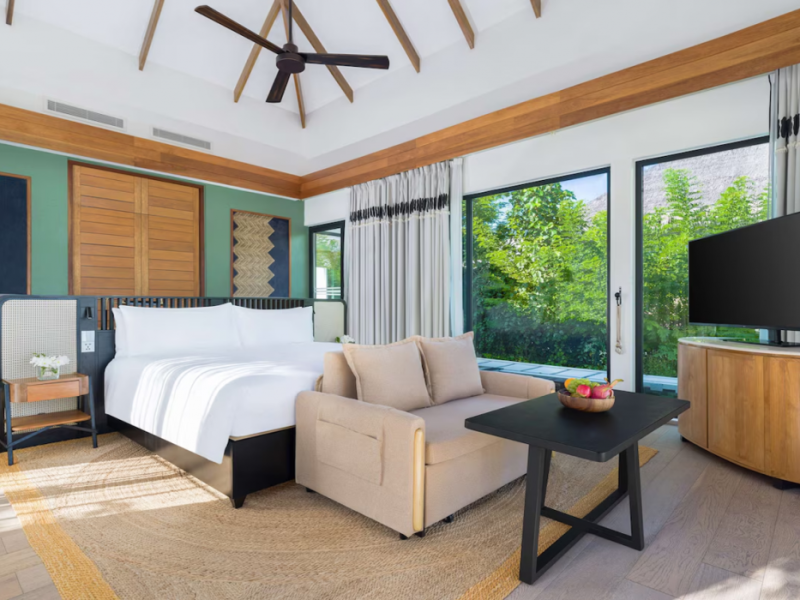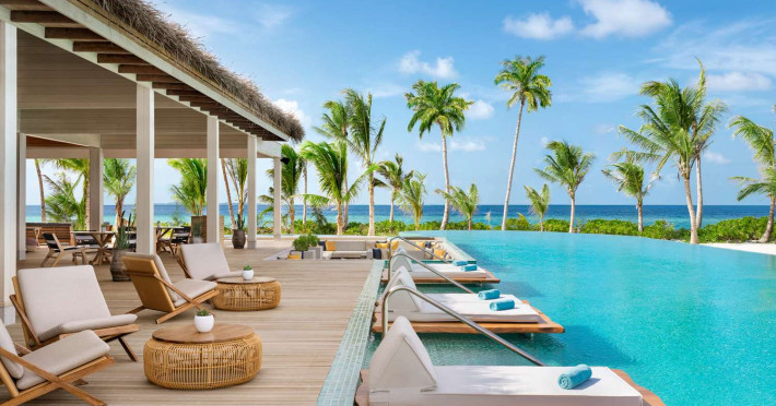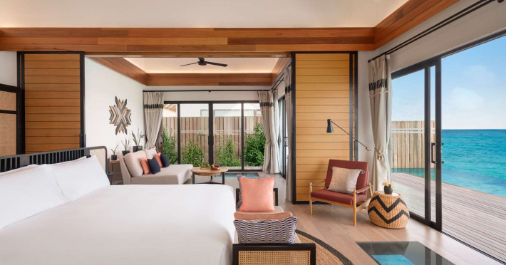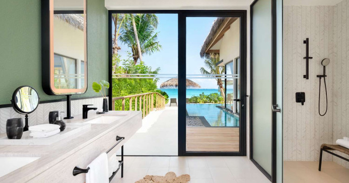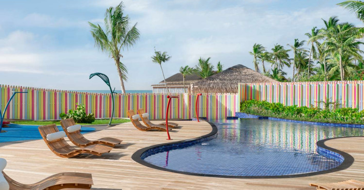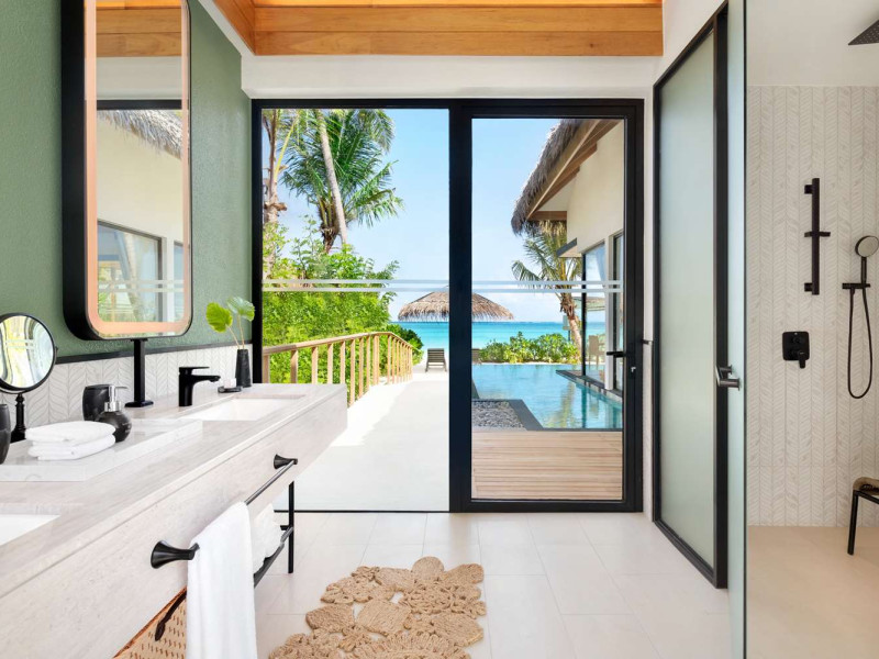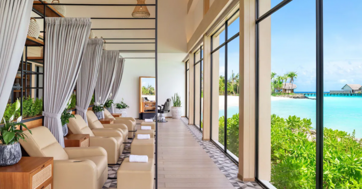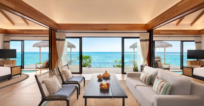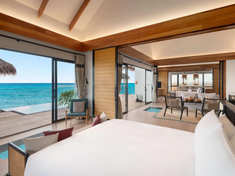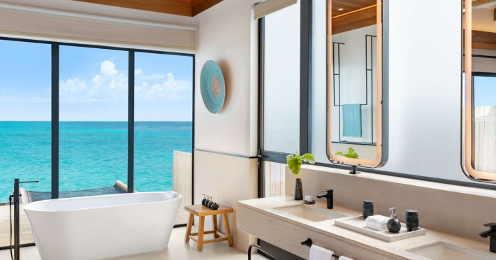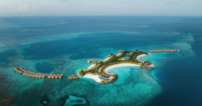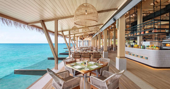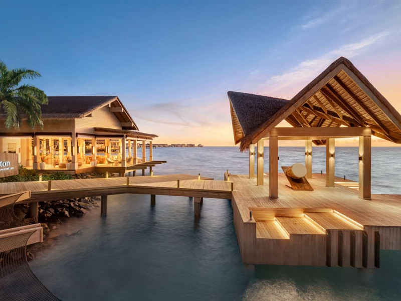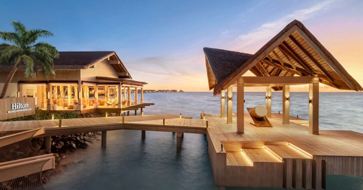 Located in the North Malé Atoll, Hilton Maldives Amingiri Resort & Spa offers beachfront accommodation accessible via a 20-minute premium speedboat transfer from Velana International Airport (MLE). A mandatory fee applies for the speedboat transfer: USD 300 per adult and USD 150 per child (ages 6-11 or 2-12 - *discrepancy, included*), plus taxes and service charge; third-party transport is not permitted. The resort features a private beach area, outdoor pool, spa with massages, body treatments, and facials, and complimentary wireless internet access. Dining options include 6 restaurants, 2 bars/lounges, and 24-hour room service. A complimentary buffet breakfast is served daily. The resort also offers a 24-hour front desk, multilingual staff, concierge services, dry cleaning/laundry services, a kids' club, a sauna, and a children's playground. Individually decorated guestrooms feature air conditioning, flat-screen televisions with cable programming, private bathrooms with separate bathtubs and showers including deep soaking bathtubs and rainfall showerheads, desks, safes, and complimentary wireless internet access. One-bedroom overwater and beach pool villas sleep up to 3 with a rollaway bed. Two-bedroom beach pool villas sleep up to 6.