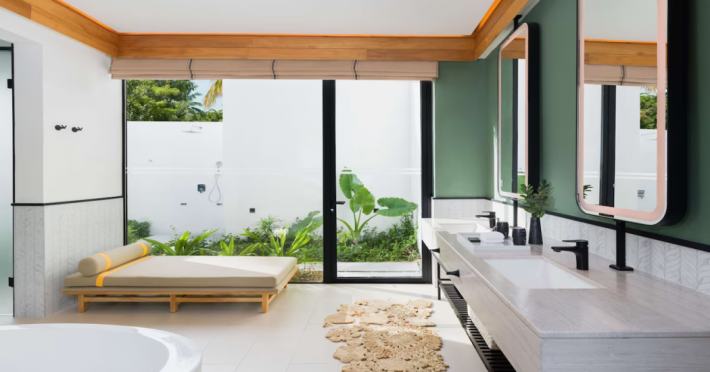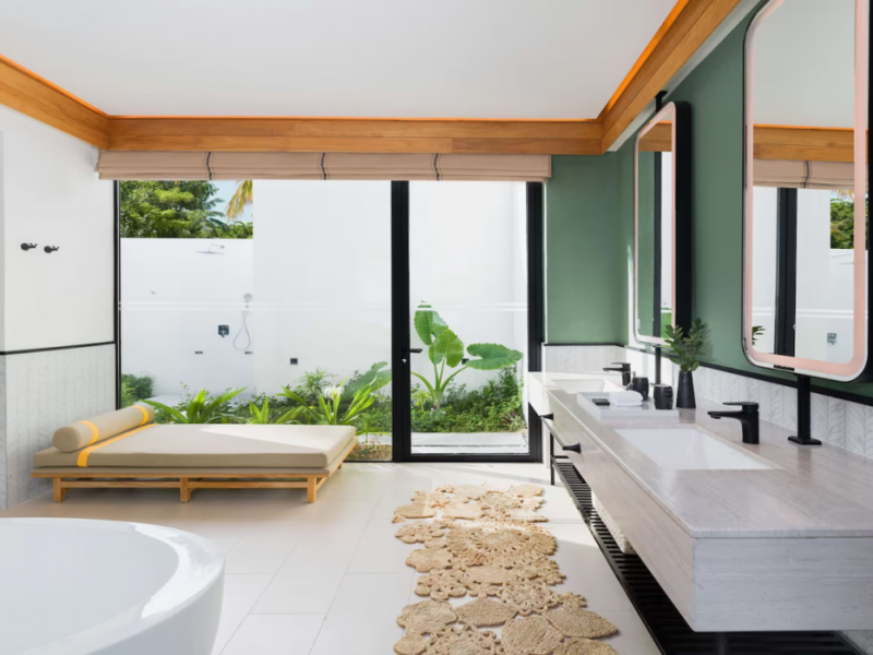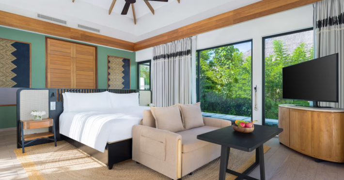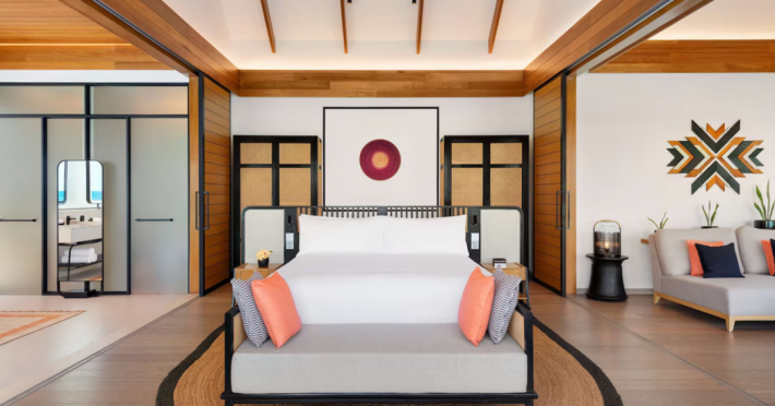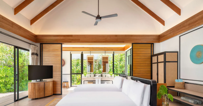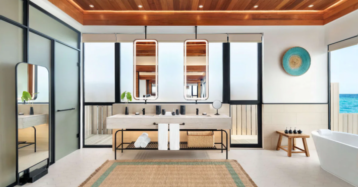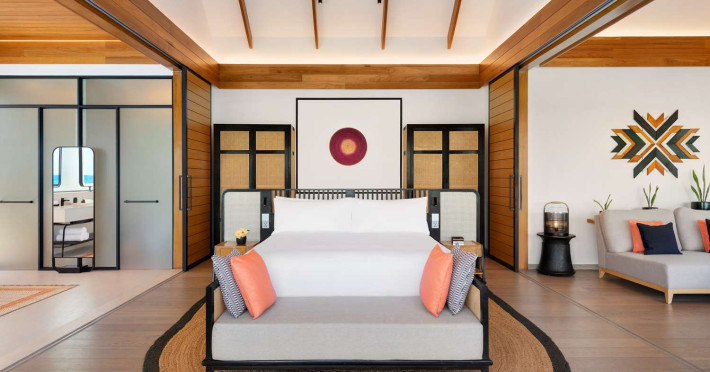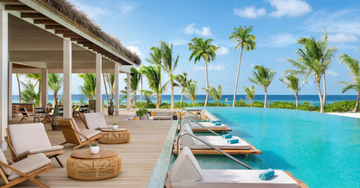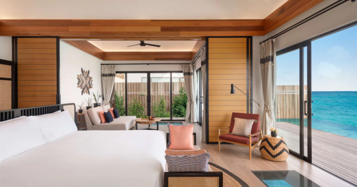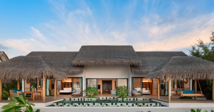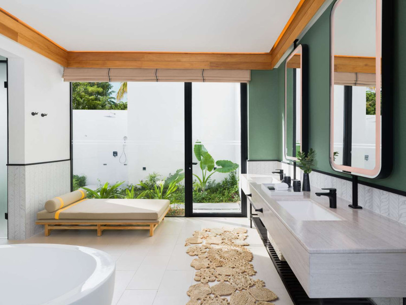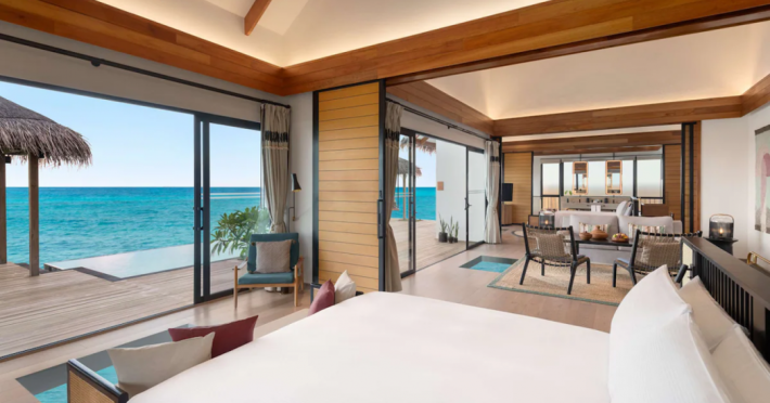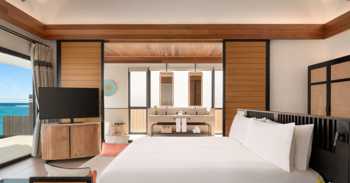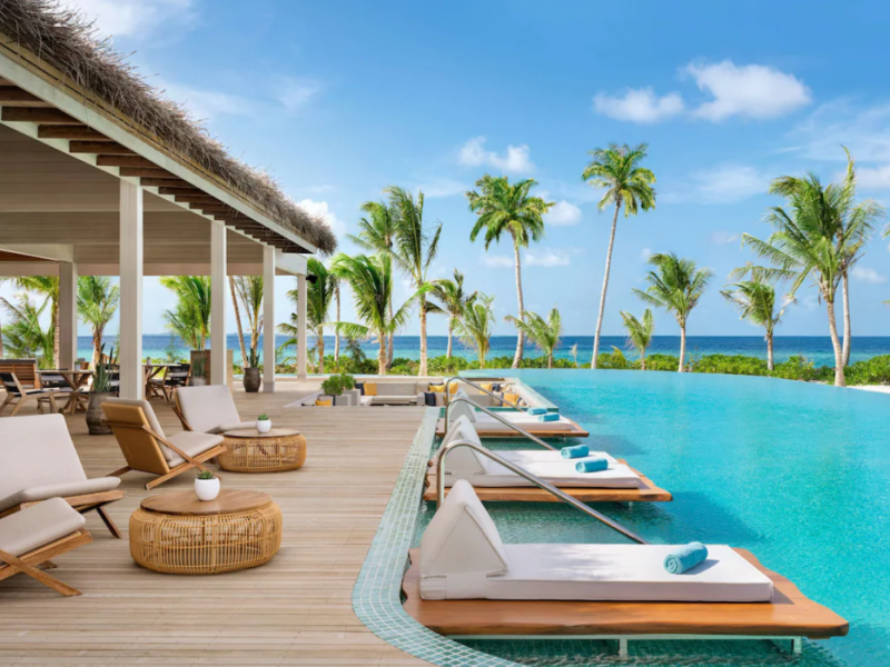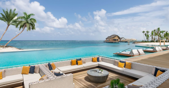 Located in the North Malé Atoll, Hilton Maldives Amingiri Resort & Spa offers beachfront accommodation accessible via a 20-minute premium speedboat transfer from Velana International Airport (MLE). A mandatory fee applies for the speedboat transfer: USD 300 per adult and USD 150 per child (ages 6-11 or 2-12 - *discrepancy, included*), plus taxes and service charge; third-party transport is not permitted. The resort features a private beach area, outdoor pool, spa with massages, body treatments, and facials, and complimentary wireless internet access. Dining options include 6 restaurants, 2 bars/lounges, and 24-hour room service. A complimentary buffet breakfast is served daily. The resort also offers a 24-hour front desk, multilingual staff, concierge services, dry cleaning/laundry services, a kids' club, a sauna, and a children's playground. Individually decorated guestrooms feature air conditioning, flat-screen televisions with cable programming, private bathrooms with separate bathtubs and showers including deep soaking bathtubs and rainfall showerheads, desks, safes, and complimentary wireless internet access. One-bedroom overwater and beach pool villas sleep up to 3 with a rollaway bed. Two-bedroom beach pool villas sleep up to 6.