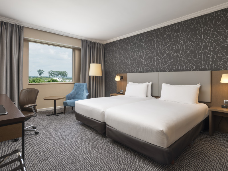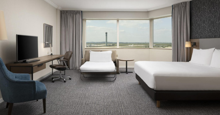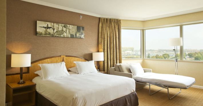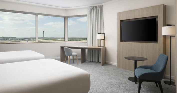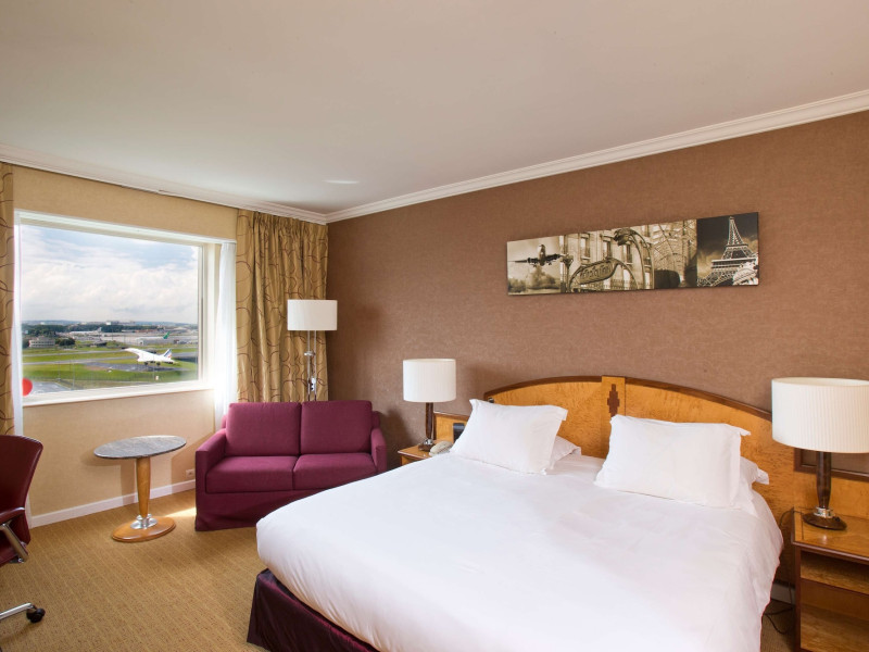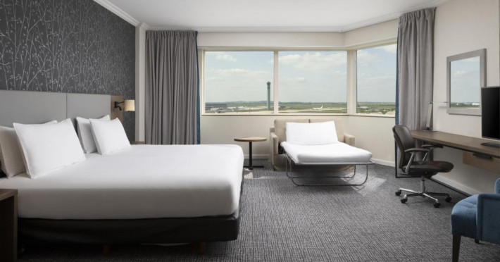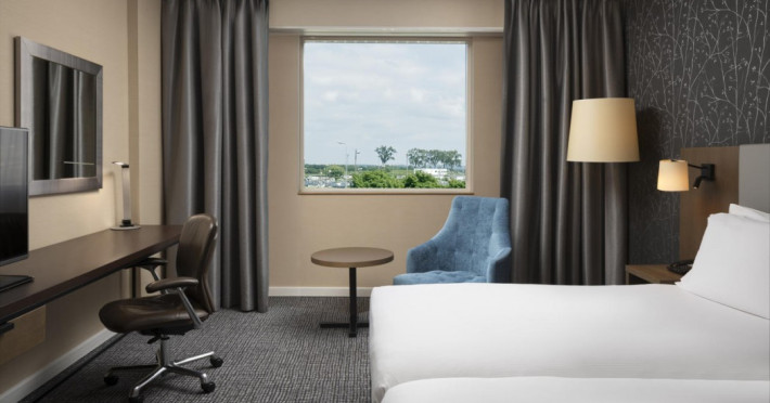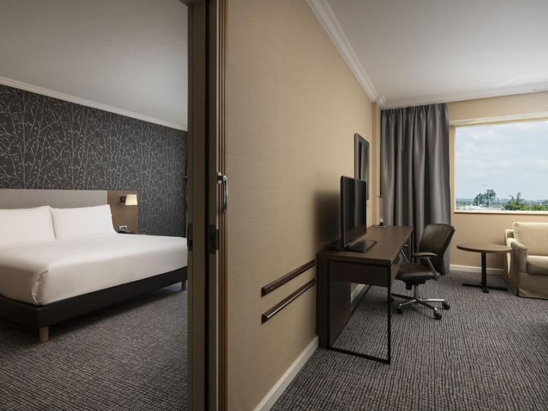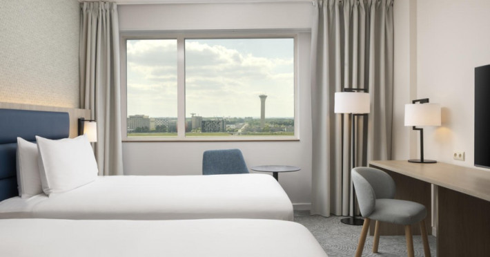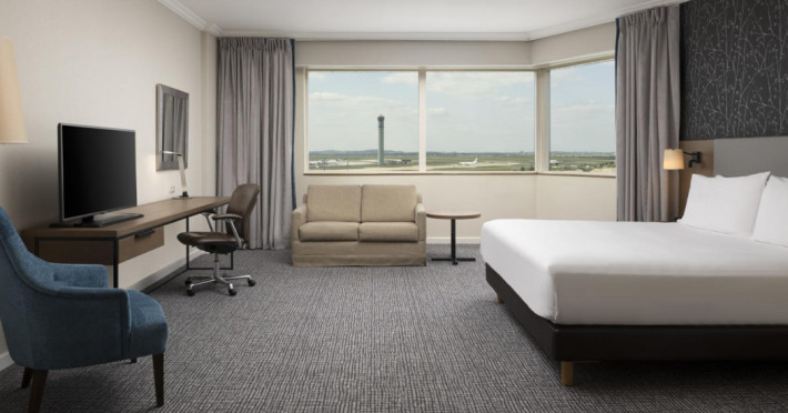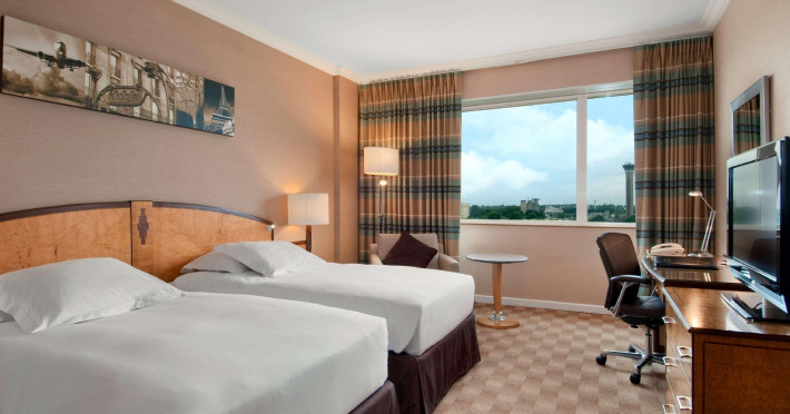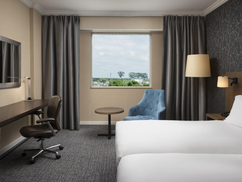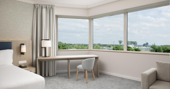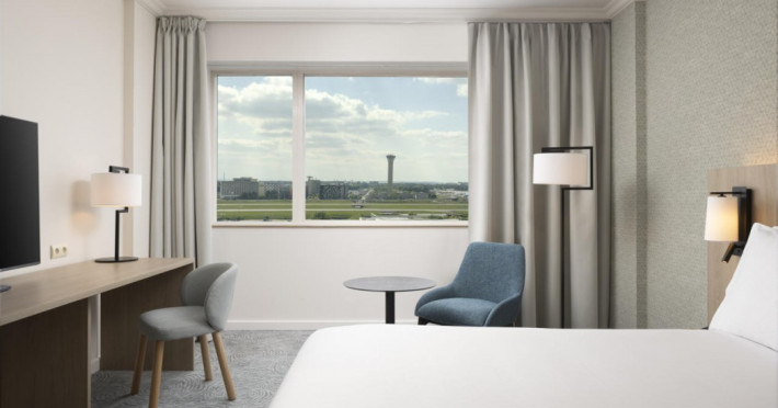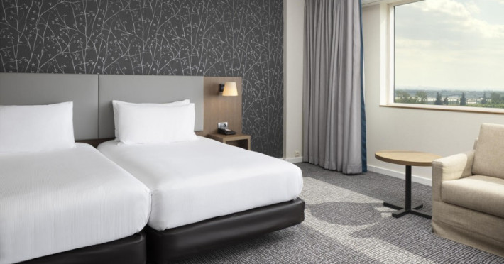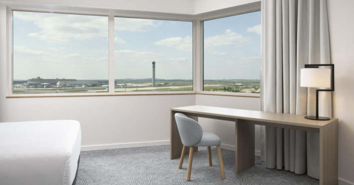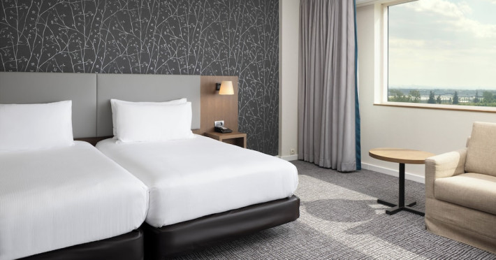 Hilton Paris Charles De Gaulle Airport, located in Tremblay-en-France, offers 392 stylish rooms (minimum 30 sq m), each featuring air-conditioning, a refrigerator, a workstation with large desk, fast WiFi (standard WiFi free, premium WiFi €10/day extra), satellite programming, a marble bathroom with separate bathtub and shower, a laptop-compatible safe, and an electric kettle. Executive Plus rooms (45 sq m) accommodate up to 3 people and include access to the Executive Lounge with complimentary continental breakfast and drinks. A complimentary breakfast buffet is served daily (6:00 AM - 10:30 AM), with breakfast costing €29 per person/day extra. The hotel offers a family experience for children under 12, including a Kids Welcome, dedicated Kids Breakfast, Kids Menu, and kids amenities (upon request). Dining options include the Skylight Bar & Restaurant, serving French cuisine and international snacks, open for breakfast, lunch, and dinner, and 24-hour room service. The hotel features 24 meeting rooms, a 700 sq m Concorde Ballroom (seating 650, reception 800), a 24-hour fitness center, a business center, concierge services, self-parking (fee applies), and a vending machine. Free CDGVAL train service connects to the three main airport terminals (3-minute walk from hotel, operates 4:00 AM - 1:00 AM, 7 days a week). Nearby attractions include Villepinte Exhibition Centre (10-minute drive), Usines Centre Outlet Shopping Mall (10-minute drive), O'Parinor (12 km), and Le Bourget Exhibition Center (13.2 km). Paris Charles de Gaulle Airport (CDG) is 4.4 mi away, and Paris Orly Airport (ORY) is 25.9 mi away. The Hilton Paris Charles De Gaulle Airport is a Tourist hotel. The nightlife/restaurants are easily accessible by taxi or bus from the hotel.