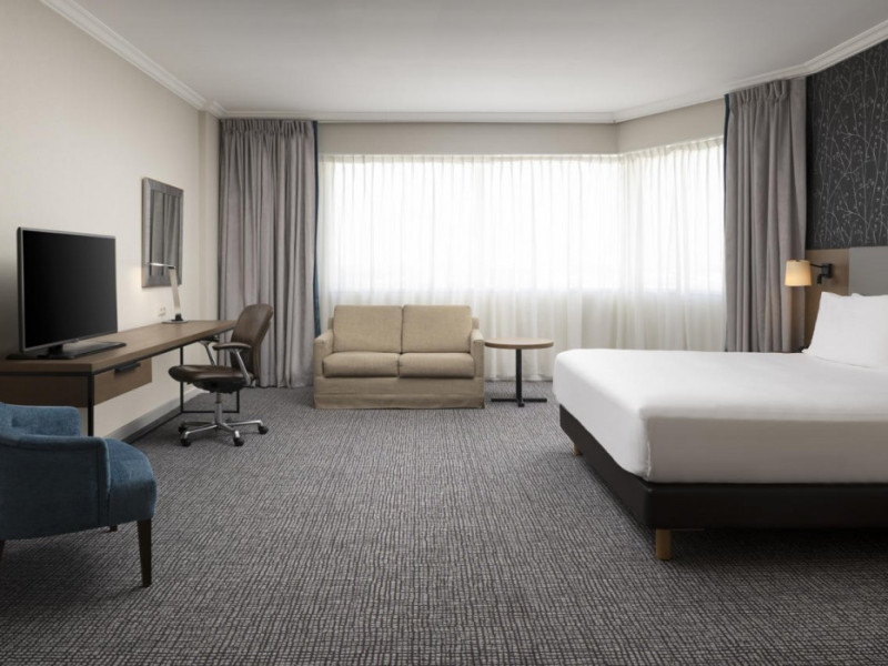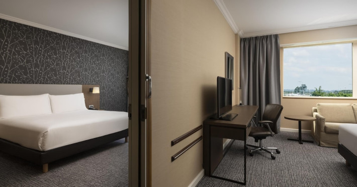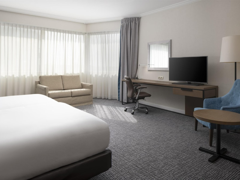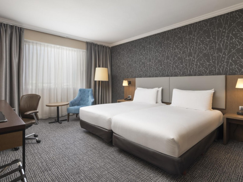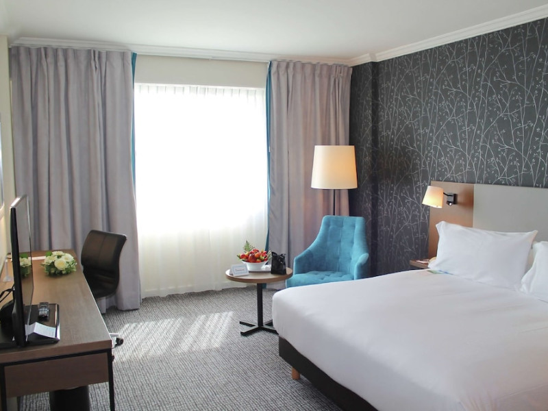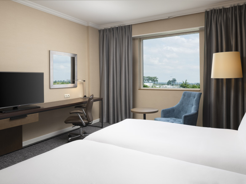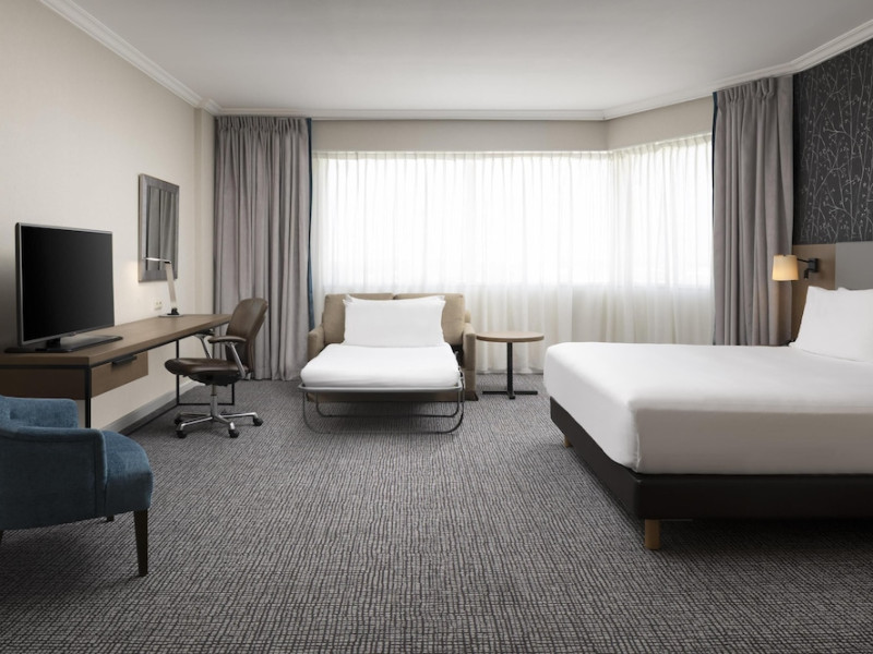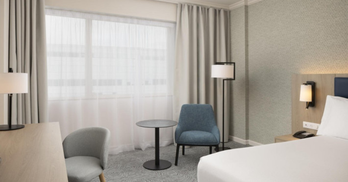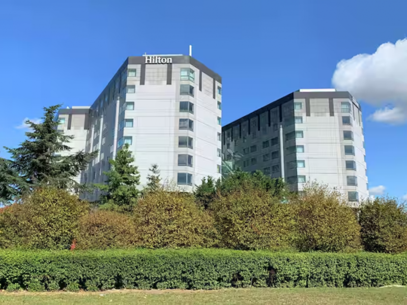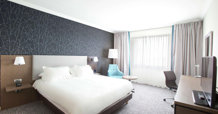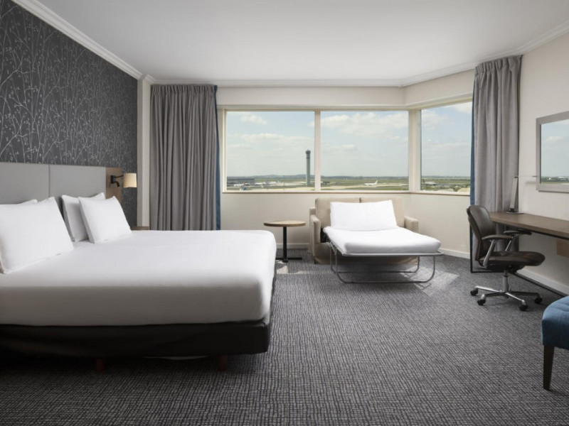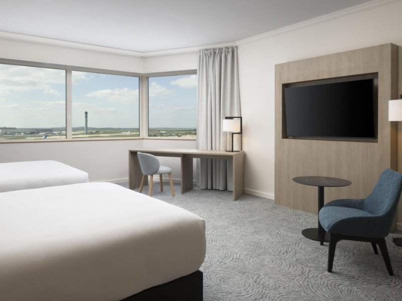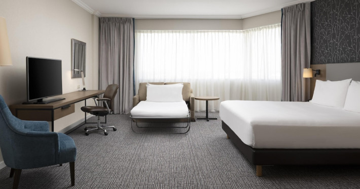 Hilton Paris Charles De Gaulle Airport, located in Tremblay-en-France, offers 392 stylish rooms (minimum 30 sq m), each featuring air-conditioning, a refrigerator, a workstation with large desk, fast WiFi (standard WiFi free, premium WiFi €10/day extra), satellite programming, a marble bathroom with separate bathtub and shower, a laptop-compatible safe, and an electric kettle. Executive Plus rooms (45 sq m) accommodate up to 3 people and include access to the Executive Lounge with complimentary continental breakfast and drinks. A complimentary breakfast buffet is served daily (6:00 AM - 10:30 AM), with breakfast costing €29 per person/day extra. The hotel offers a family experience for children under 12, including a Kids Welcome, dedicated Kids Breakfast, Kids Menu, and kids amenities (upon request). Dining options include the Skylight Bar & Restaurant, serving French cuisine and international snacks, open for breakfast, lunch, and dinner, and 24-hour room service. The hotel features 24 meeting rooms, a 700 sq m Concorde Ballroom (seating 650, reception 800), a 24-hour fitness center, a business center, concierge services, self-parking (fee applies), and a vending machine. Free CDGVAL train service connects to the three main airport terminals (3-minute walk from hotel, operates 4:00 AM - 1:00 AM, 7 days a week). Nearby attractions include Villepinte Exhibition Centre (10-minute drive), Usines Centre Outlet Shopping Mall (10-minute drive), O'Parinor (12 km), and Le Bourget Exhibition Center (13.2 km). Paris Charles de Gaulle Airport (CDG) is 4.4 mi away, and Paris Orly Airport (ORY) is 25.9 mi away. The Hilton Paris Charles De Gaulle Airport is a Tourist hotel. The nightlife/restaurants are easily accessible by taxi or bus from the hotel.
