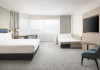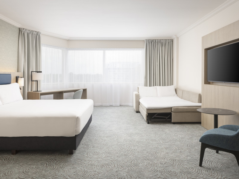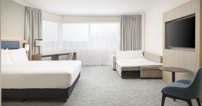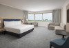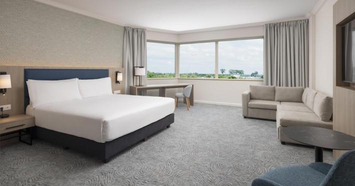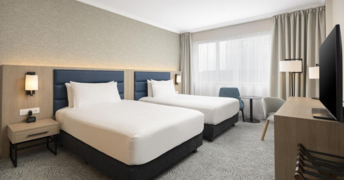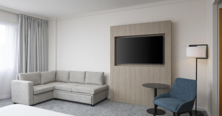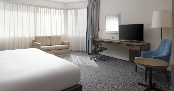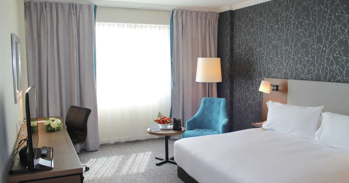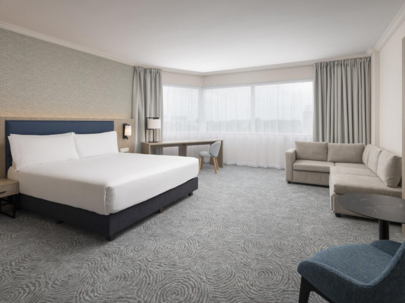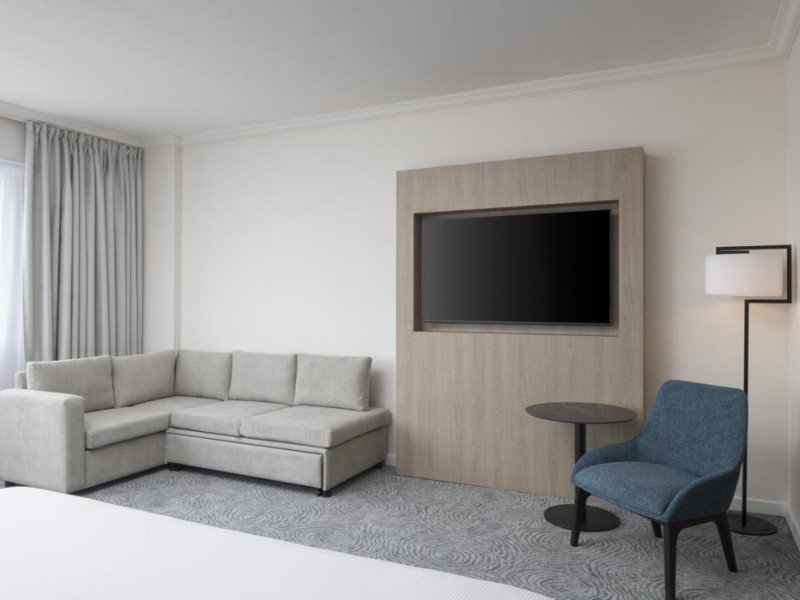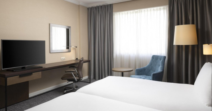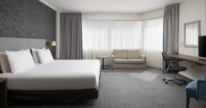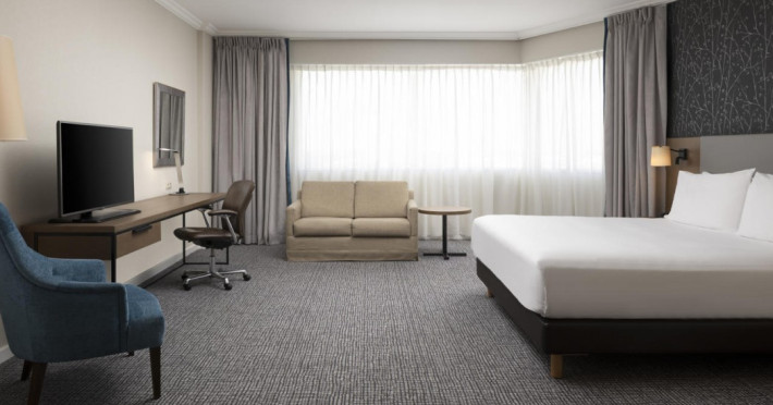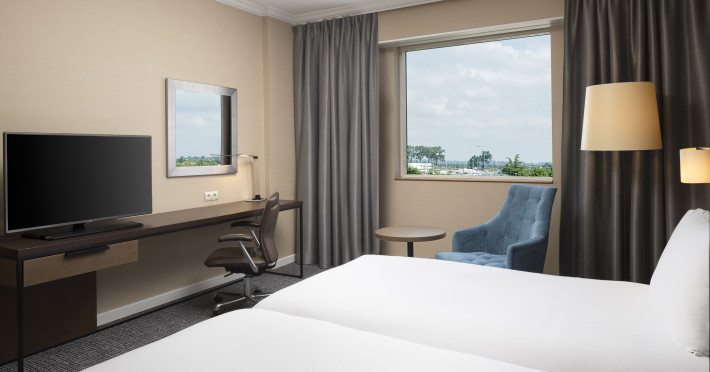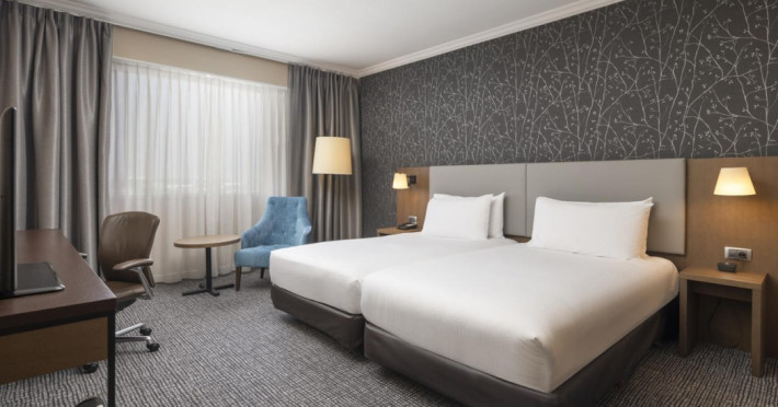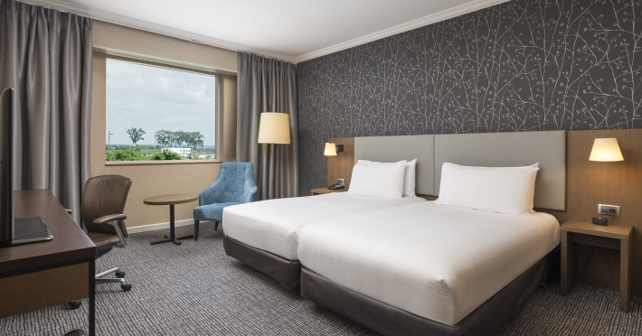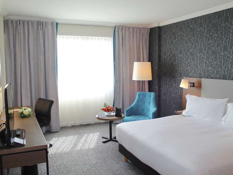 Hilton Paris Charles De Gaulle Airport, located in Tremblay-en-France, offers 392 stylish rooms (minimum 30 sq m), each featuring air-conditioning, a refrigerator, a workstation with large desk, fast WiFi (standard WiFi free, premium WiFi €10/day extra), satellite programming, a marble bathroom with separate bathtub and shower, a laptop-compatible safe, and an electric kettle. Executive Plus rooms (45 sq m) accommodate up to 3 people and include access to the Executive Lounge with complimentary continental breakfast and drinks. A complimentary breakfast buffet is served daily (6:00 AM - 10:30 AM), with breakfast costing €29 per person/day extra. The hotel offers a family experience for children under 12, including a Kids Welcome, dedicated Kids Breakfast, Kids Menu, and kids amenities (upon request). Dining options include the Skylight Bar & Restaurant, serving French cuisine and international snacks, open for breakfast, lunch, and dinner, and 24-hour room service. The hotel features 24 meeting rooms, a 700 sq m Concorde Ballroom (seating 650, reception 800), a 24-hour fitness center, a business center, concierge services, self-parking (fee applies), and a vending machine. Free CDGVAL train service connects to the three main airport terminals (3-minute walk from hotel, operates 4:00 AM - 1:00 AM, 7 days a week). Nearby attractions include Villepinte Exhibition Centre (10-minute drive), Usines Centre Outlet Shopping Mall (10-minute drive), O'Parinor (12 km), and Le Bourget Exhibition Center (13.2 km). Paris Charles de Gaulle Airport (CDG) is 4.4 mi away, and Paris Orly Airport (ORY) is 25.9 mi away. The Hilton Paris Charles De Gaulle Airport is a Tourist hotel. The nightlife/restaurants are easily accessible by taxi or bus from the hotel.