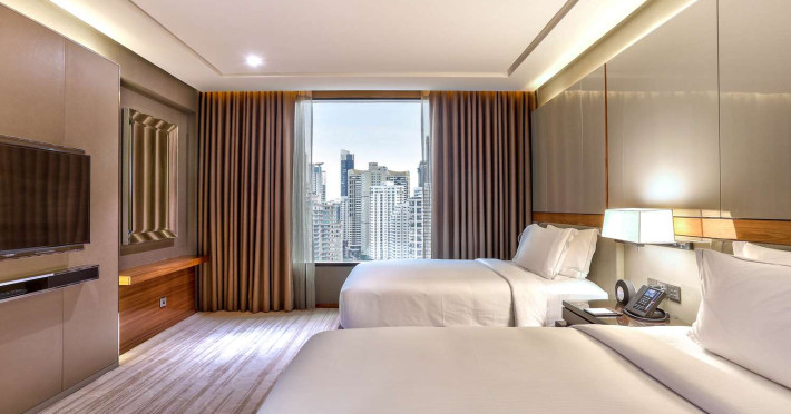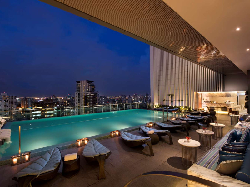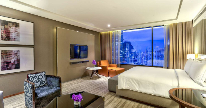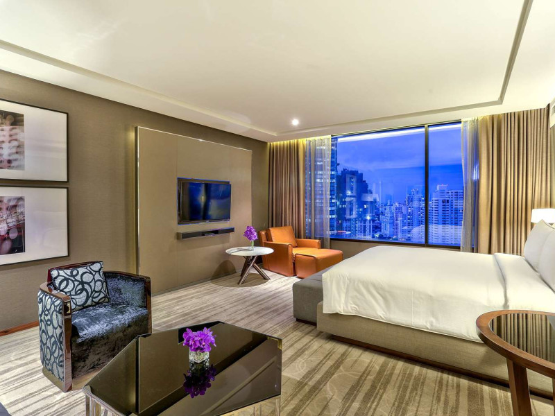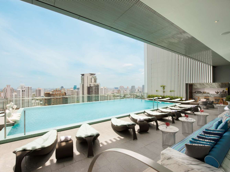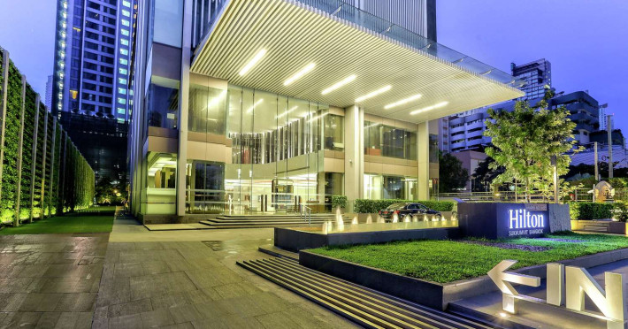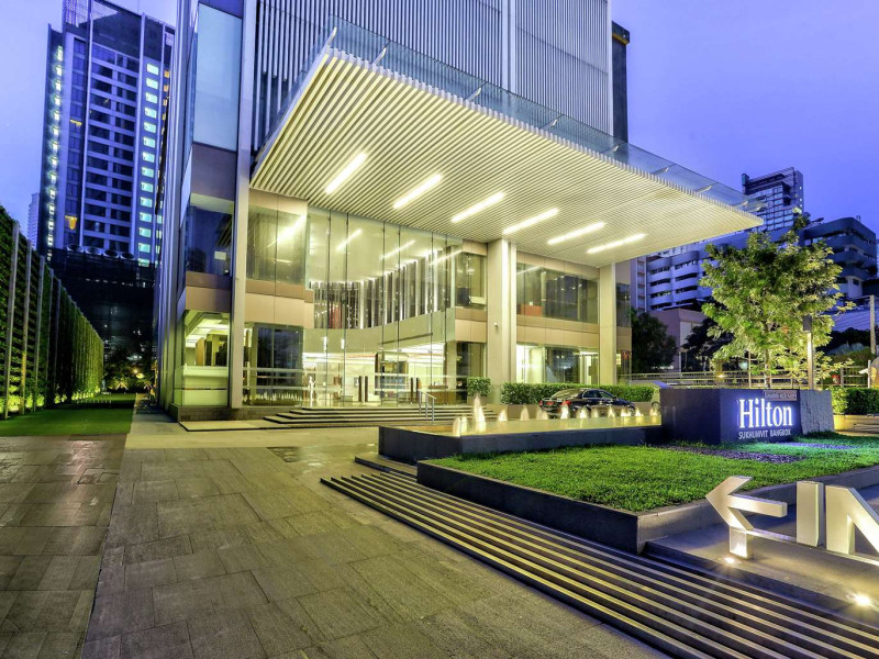 Ideally set in the heart of Bangkok’s major business, leisure and entertainment districts, the contemporary Hilton Sukhumvit Bangkok hotel is close to The Emporium leisure complex and the tranquil green space of Benjasiri Park and offers easy access to the Phrom Pong BTS Skytrain Station, the Expressway and the Airport. Plan a business or social event at this Bangkok hotel with a variety of flexible space available, all of which feature WiFi and the very latest in audio/visual equipment. A complimentary business center is also available for your convenience, offering a range of services and amenities. All of our contemporary guest rooms are tastefully decorated with muted colors and natural wood accents and offer LCD TVs and wired and wireless internet access. Upgrade to a luxurious Executive Room or Suite to enjoy additional space and amenities and Executive Lounge access with complimentary breakfast, evening cocktails and 2 hours of meeting room access. Indulge in traditional Italian dishes in our elegant restaurant, Scalini, or savor delicious tapas dishes, influenced by both Mediterranean and Asian flavors in the relaxed atmosphere of Mondo, which transforms into a popular and vibrant lounge area when the sun goes down. Sip whiskies on the outdoor deck or treat yourself to a selection of meats and cheeses from the Charcuterie and Cheese Tower. Work out in the complimentary 24-hour Fitness Center, or enjoy a dip in the heated outdoor swimming pool.