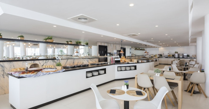 Located by the sea in Palma de Mallorca, HM Tropical Hotel offers a beachfront experience with convenient access to the airport and nearby dining options. The hotel features an outdoor pool, a fitness center, and a Sky Bar with sunset views. Guests can enjoy international cuisine in the restaurant, relax at the poolside bar, or unwind on the private beach. The hotel also offers complimentary wireless internet access, tour/ticket assistance, a business center, and a 24-hour front desk. The comfortable rooms are equipped with refrigerators, plasma televisions with satellite programming, private balconies or patios, and private bathrooms with showers, complimentary toiletries, and hair dryers. Buffet breakfasts are available daily for a fee. Self-parking is available onsite for a surcharge. The HM TROPICAL is a Tourist hotel. Located in Playa De Palma area. The nightlife/restaurants are located in the hotel.