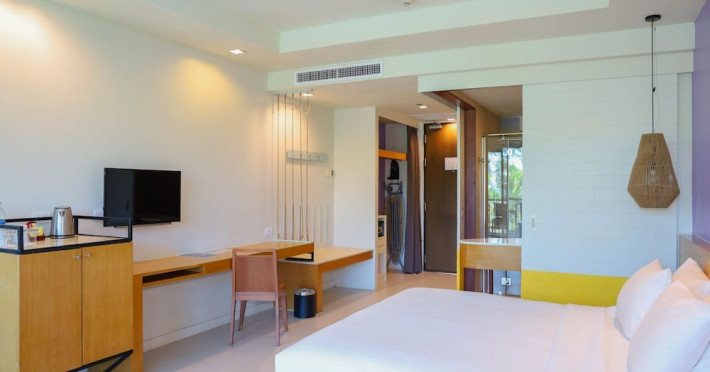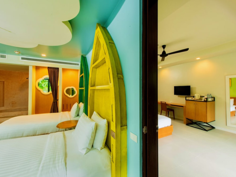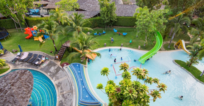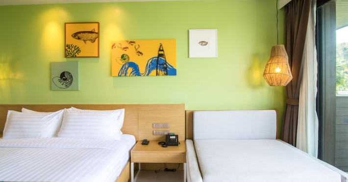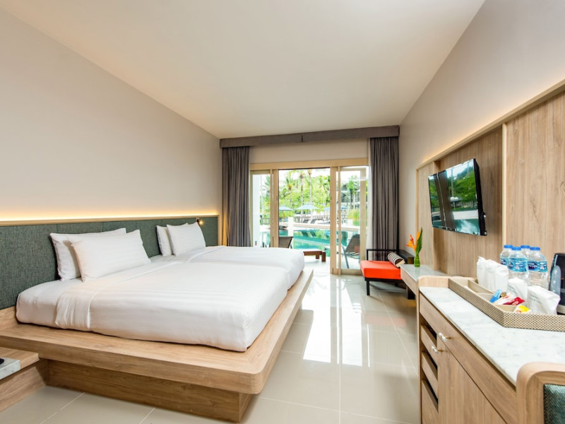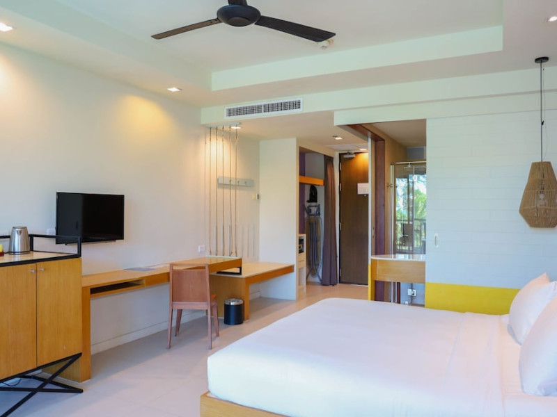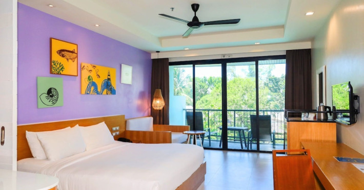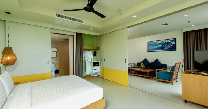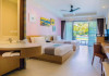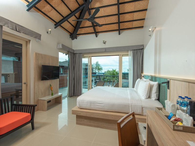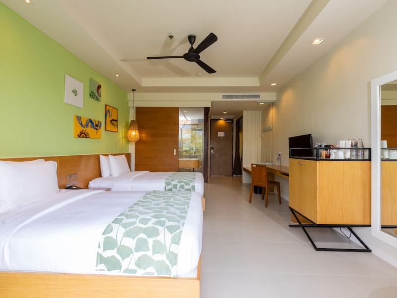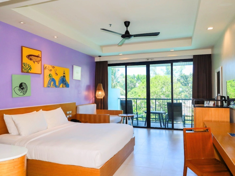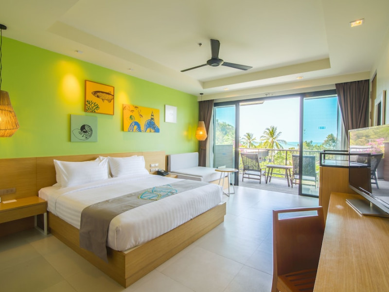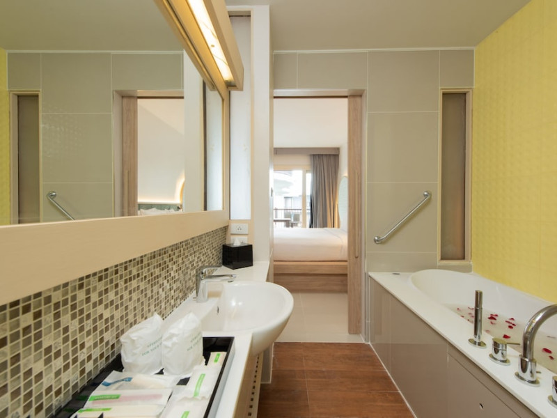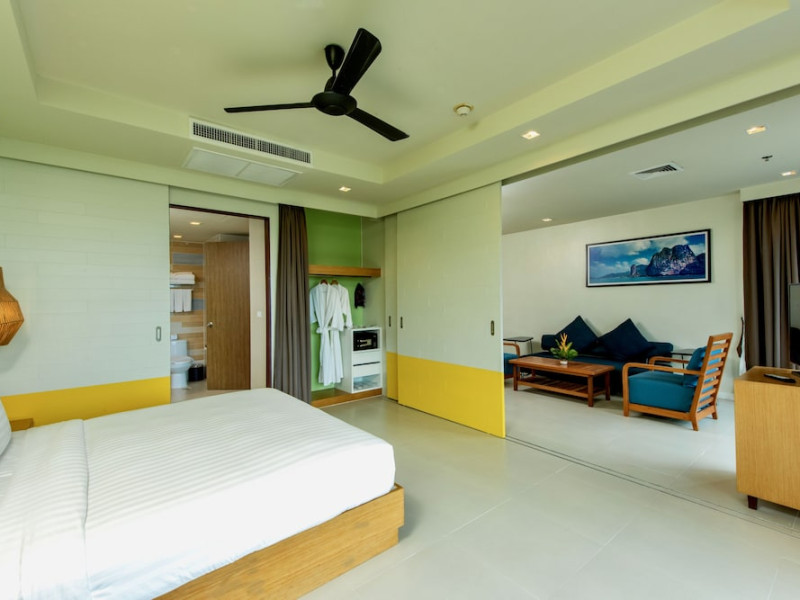 Holiday Inn Resort Krabi Ao Nang Beach offers a beachfront location amidst tropical greenery, a 30-minute drive from Krabi International Airport and a short walk to Ao Nang shopping area. It provides easy access to attractions, including Phi Phi and Railay Islands. The resort features multiple swimming pools, including a kids' zone with sliders, and a Kids Club. Dining options include a restaurant with Ao Nang Beach views, a swim-up pool bar, and a coffee shop. Guests can enjoy complimentary Wi-Fi, concierge services, an arcade/game room, and a fitness center. The resort also offers a 24-hour business center, meeting rooms, and free self-parking. Individually furnished guestrooms feature private balconies, satellite programming, and private bathrooms with complimentary toiletries. The hotel is near Ao Nang Landmark Night Market, Nopparat Thara Beach, and Ao Nang Beach. Renovations will occur from May 1, 2025, to July 31, 2025, with efforts to minimize disturbance. Airport transfer and taxi services are available. Some rooms offer separate living rooms and balconies or terraces, along with amenities like refrigerators, coffee/tea makers, and mini-bars. Select rooms include hair dryers and bathrobes. Breakfast is available, and guests can enjoy evening entertainment at the bar. The Holiday Ao Nang Beach Resort Krabi is a Beach Resort, Boutique, Child Friendly, Family Style, Full Service, Honeymoon, Leisure, Modern, Resort, Spa Resort, Tourist, Traditional hotel. The nightlife/restaurants are within walking distance from the hotel.