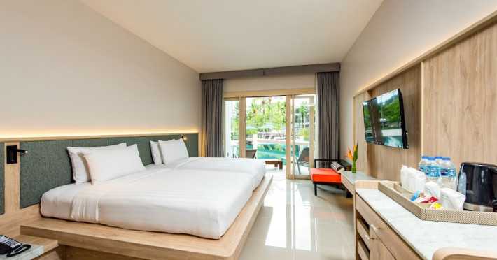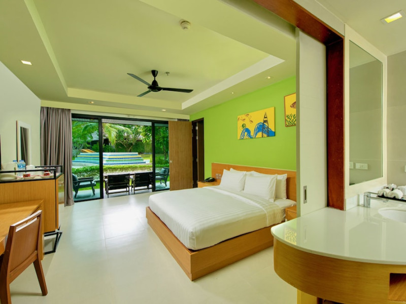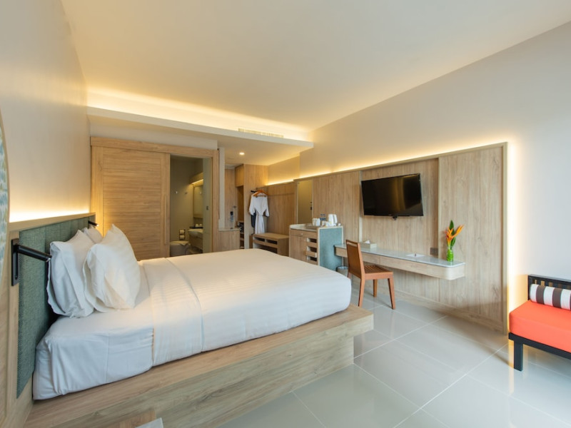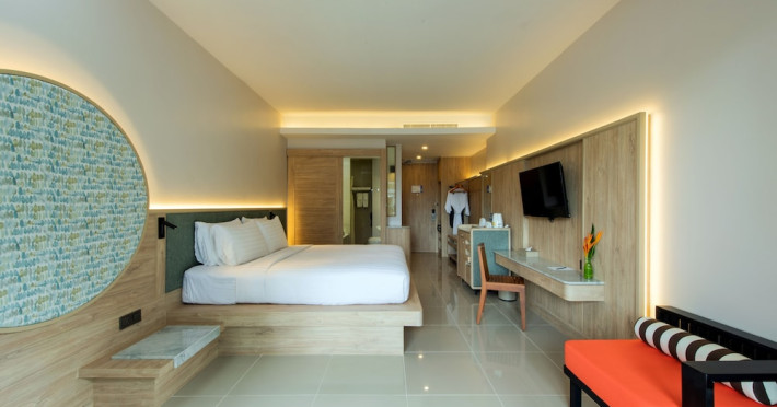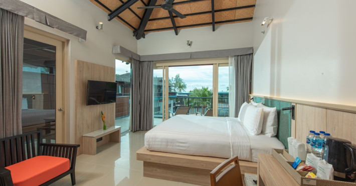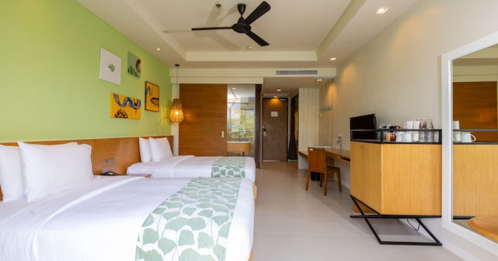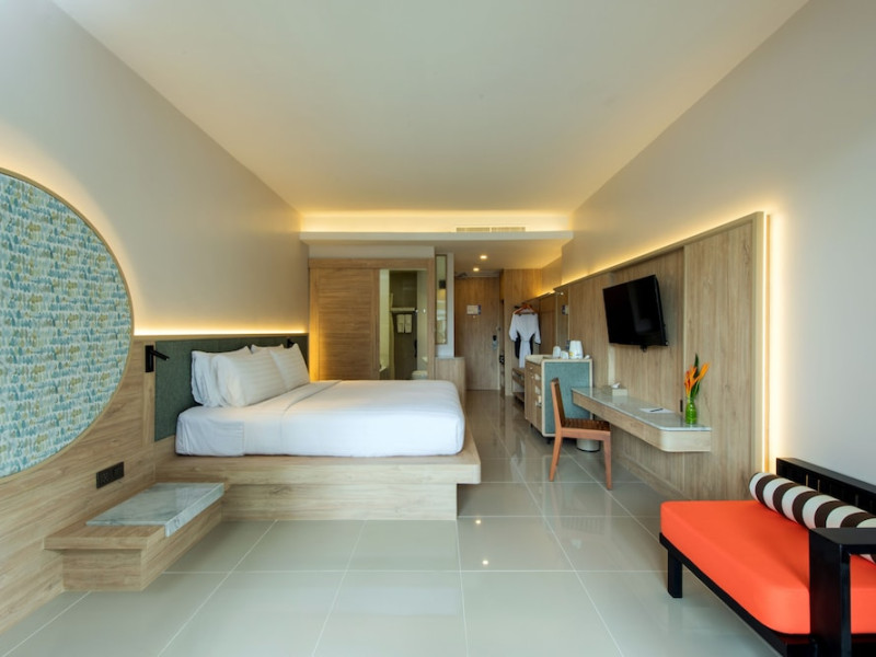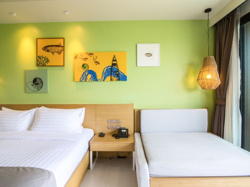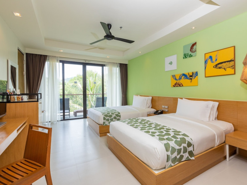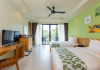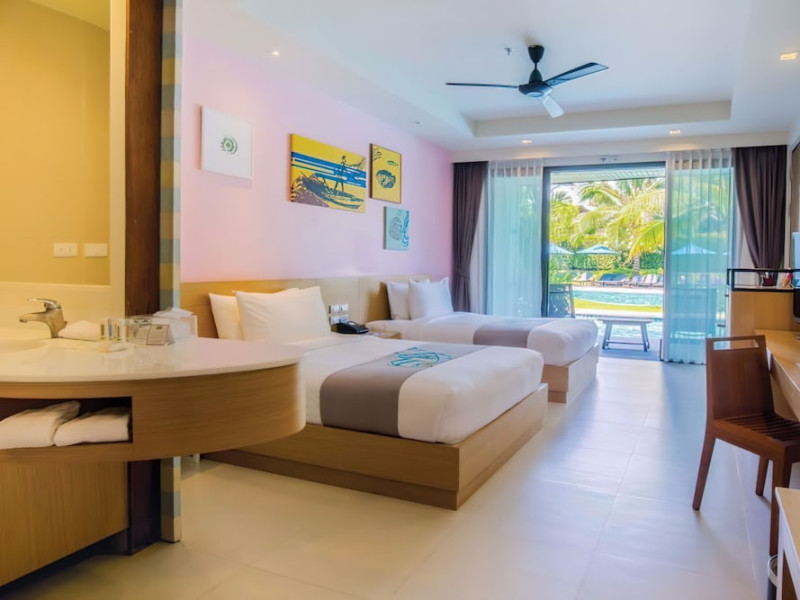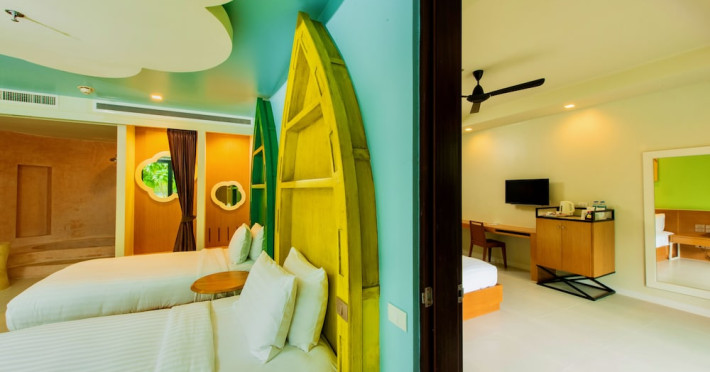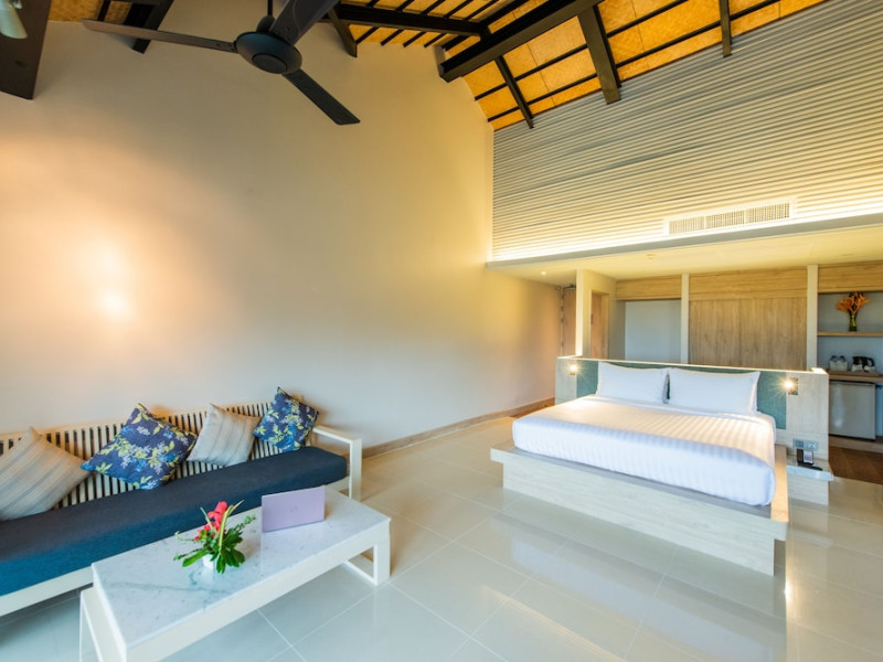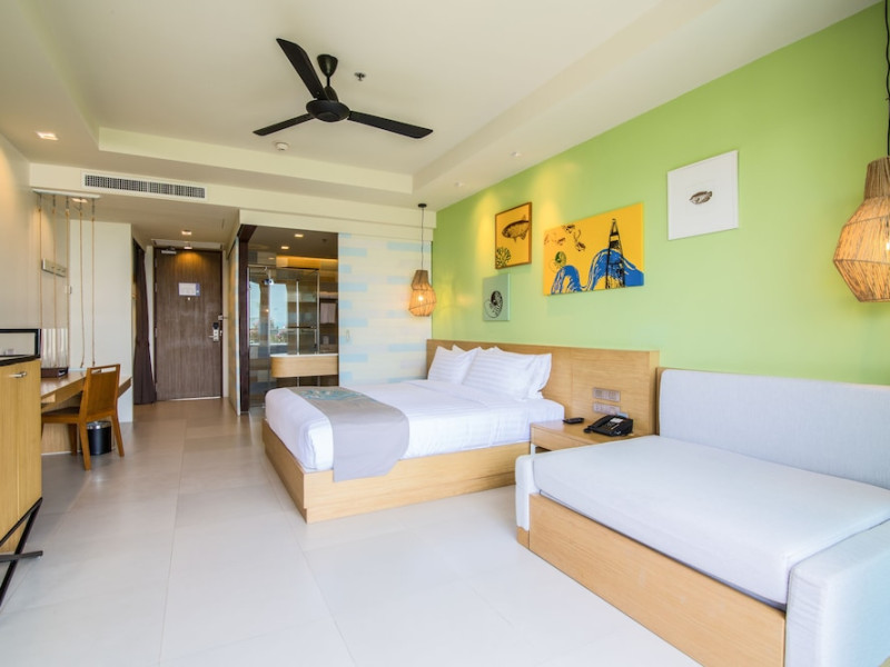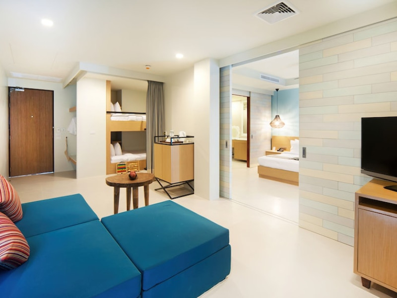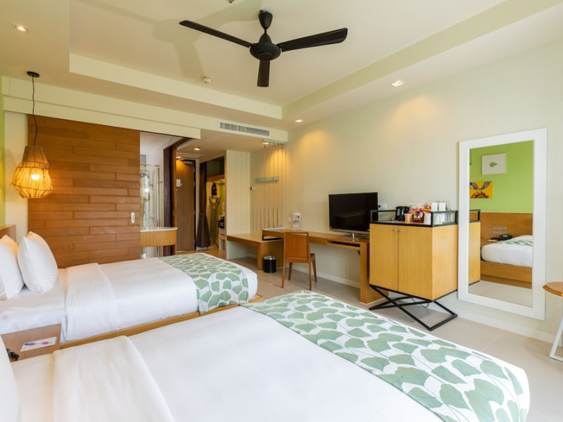 Holiday Inn Resort Krabi Ao Nang Beach offers a beachfront location amidst tropical greenery, a 30-minute drive from Krabi International Airport and a short walk to Ao Nang shopping area. It provides easy access to attractions, including Phi Phi and Railay Islands. The resort features multiple swimming pools, including a kids' zone with sliders, and a Kids Club. Dining options include a restaurant with Ao Nang Beach views, a swim-up pool bar, and a coffee shop. Guests can enjoy complimentary Wi-Fi, concierge services, an arcade/game room, and a fitness center. The resort also offers a 24-hour business center, meeting rooms, and free self-parking. Individually furnished guestrooms feature private balconies, satellite programming, and private bathrooms with complimentary toiletries. The hotel is near Ao Nang Landmark Night Market, Nopparat Thara Beach, and Ao Nang Beach. Renovations will occur from May 1, 2025, to July 31, 2025, with efforts to minimize disturbance. Airport transfer and taxi services are available. Some rooms offer separate living rooms and balconies or terraces, along with amenities like refrigerators, coffee/tea makers, and mini-bars. Select rooms include hair dryers and bathrobes. Breakfast is available, and guests can enjoy evening entertainment at the bar. The Holiday Ao Nang Beach Resort Krabi is a Beach Resort, Boutique, Child Friendly, Family Style, Full Service, Honeymoon, Leisure, Modern, Resort, Spa Resort, Tourist, Traditional hotel. The nightlife/restaurants are within walking distance from the hotel.