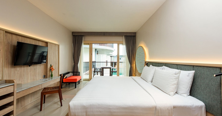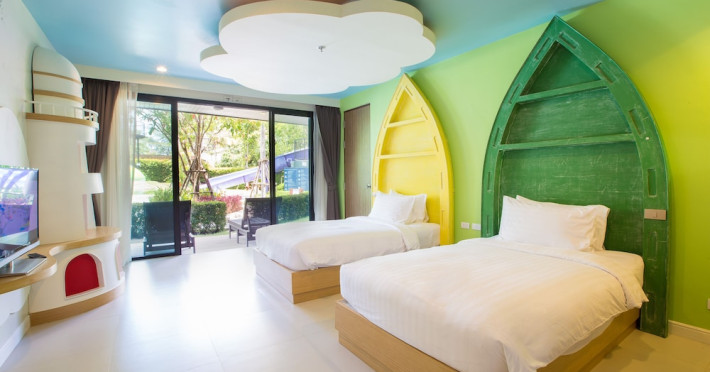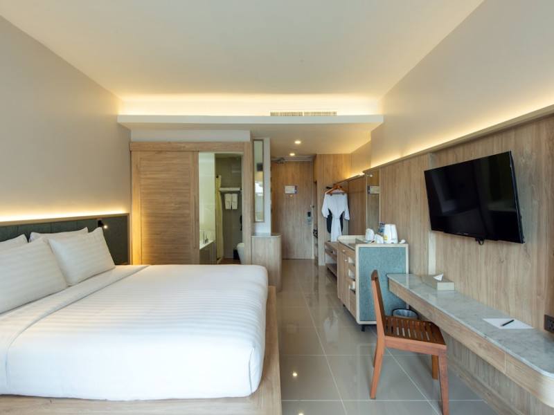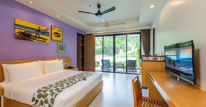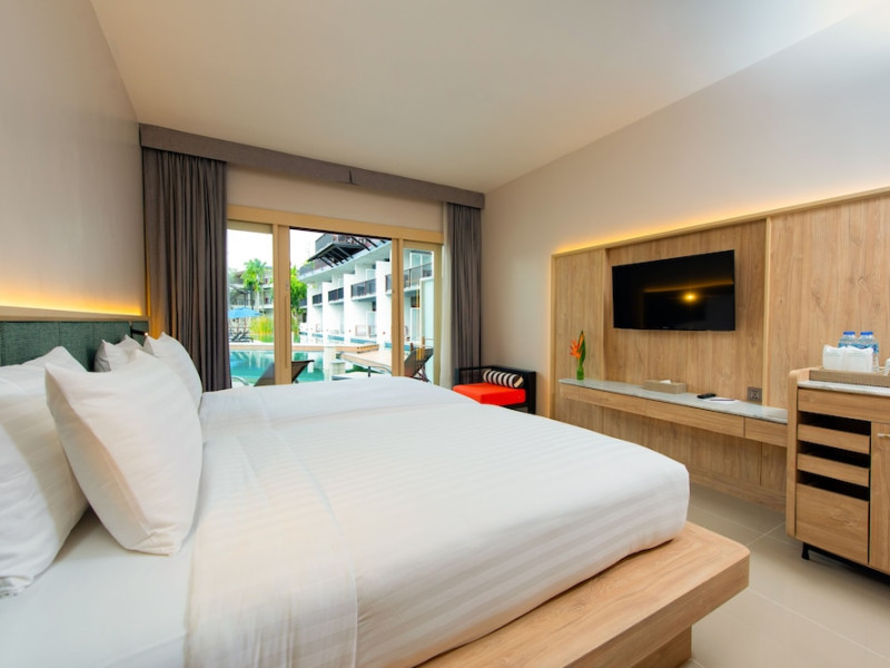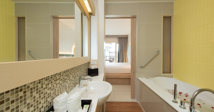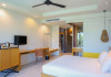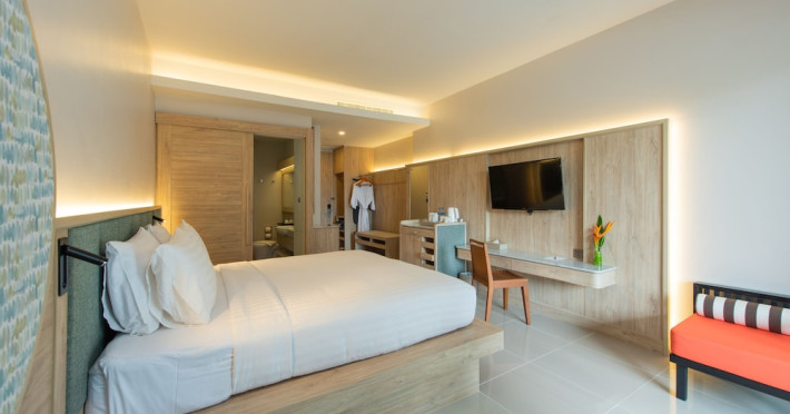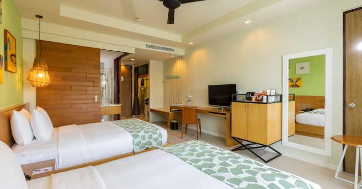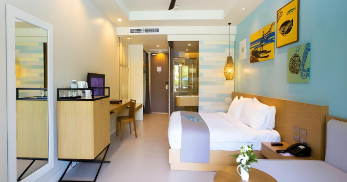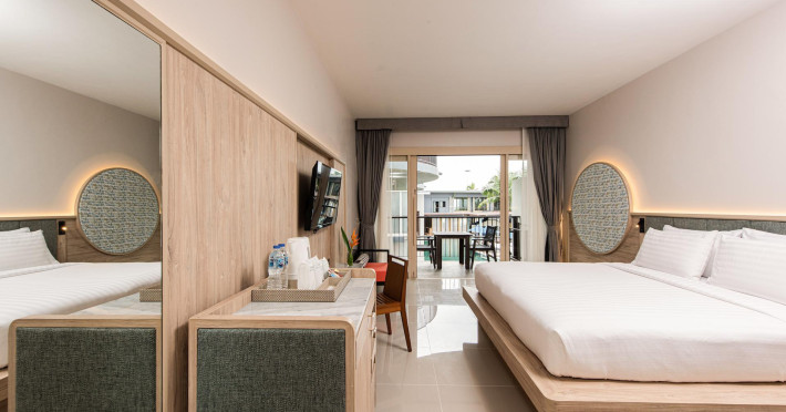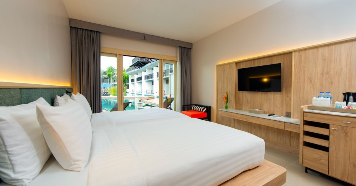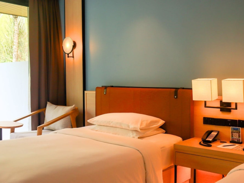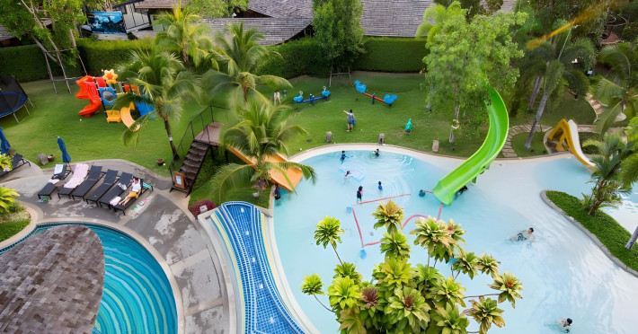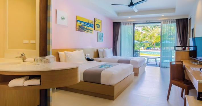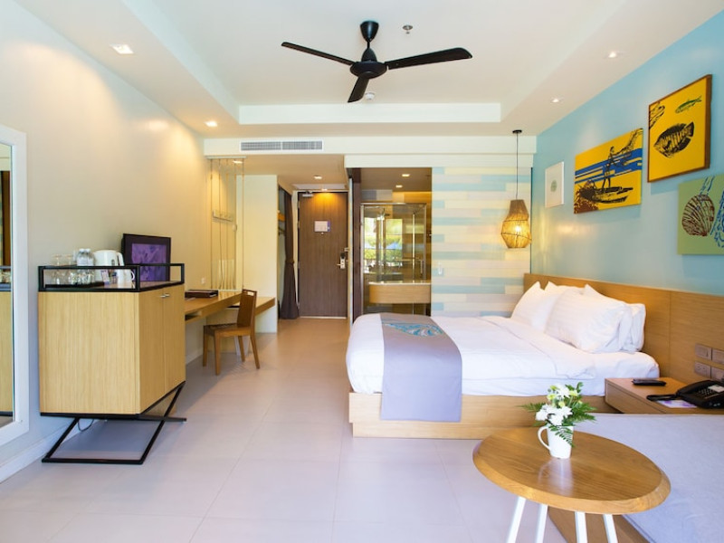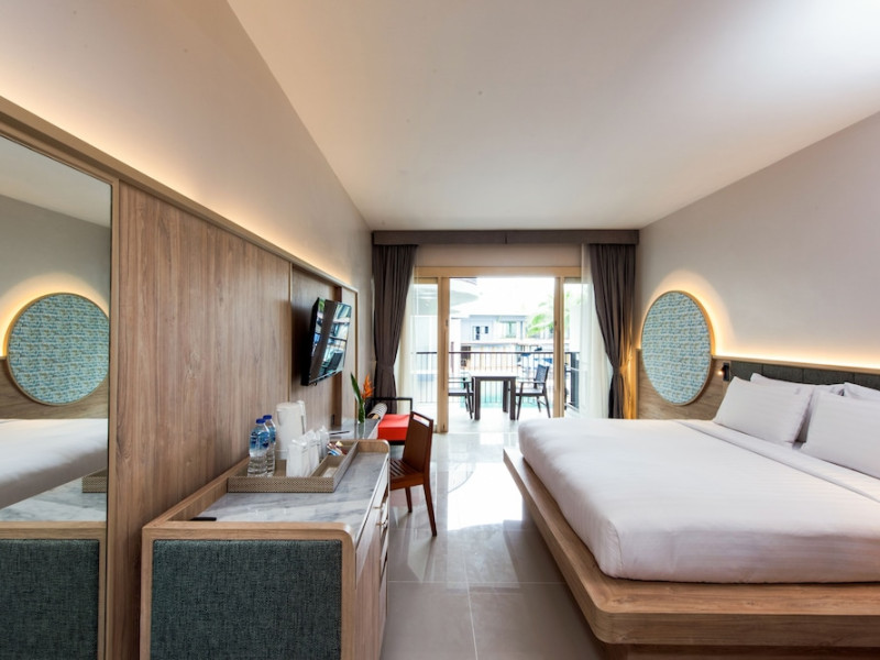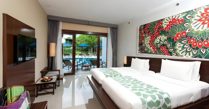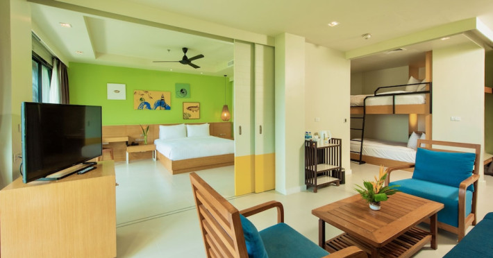 Holiday Inn Resort Krabi Ao Nang Beach offers a beachfront location amidst tropical greenery, a 30-minute drive from Krabi International Airport and a short walk to Ao Nang shopping area. It provides easy access to attractions, including Phi Phi and Railay Islands. The resort features multiple swimming pools, including a kids' zone with sliders, and a Kids Club. Dining options include a restaurant with Ao Nang Beach views, a swim-up pool bar, and a coffee shop. Guests can enjoy complimentary Wi-Fi, concierge services, an arcade/game room, and a fitness center. The resort also offers a 24-hour business center, meeting rooms, and free self-parking. Individually furnished guestrooms feature private balconies, satellite programming, and private bathrooms with complimentary toiletries. The hotel is near Ao Nang Landmark Night Market, Nopparat Thara Beach, and Ao Nang Beach. Renovations will occur from May 1, 2025, to July 31, 2025, with efforts to minimize disturbance. Airport transfer and taxi services are available. Some rooms offer separate living rooms and balconies or terraces, along with amenities like refrigerators, coffee/tea makers, and mini-bars. Select rooms include hair dryers and bathrobes. Breakfast is available, and guests can enjoy evening entertainment at the bar. The Holiday Ao Nang Beach Resort Krabi is a Beach Resort, Boutique, Child Friendly, Family Style, Full Service, Honeymoon, Leisure, Modern, Resort, Spa Resort, Tourist, Traditional hotel. The nightlife/restaurants are within walking distance from the hotel.
