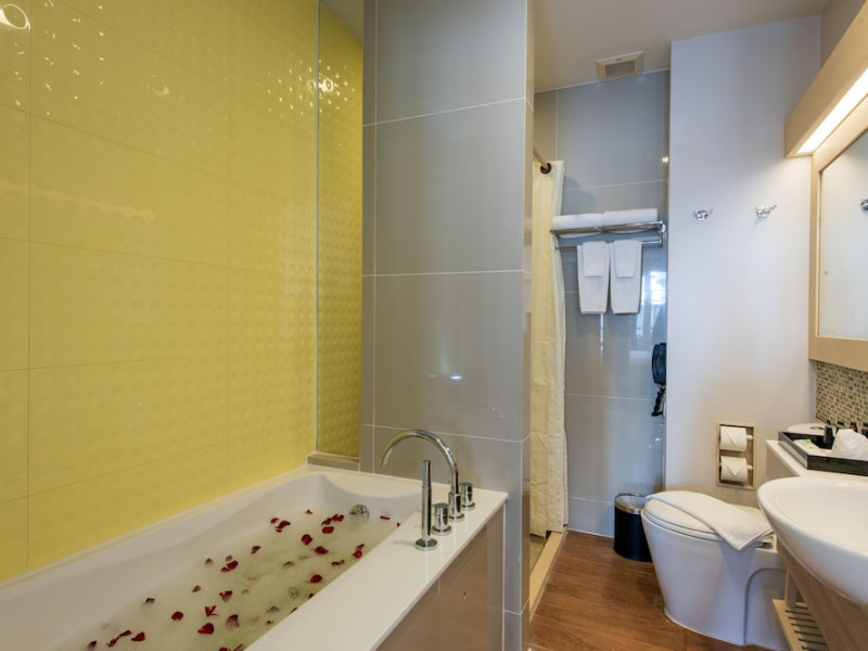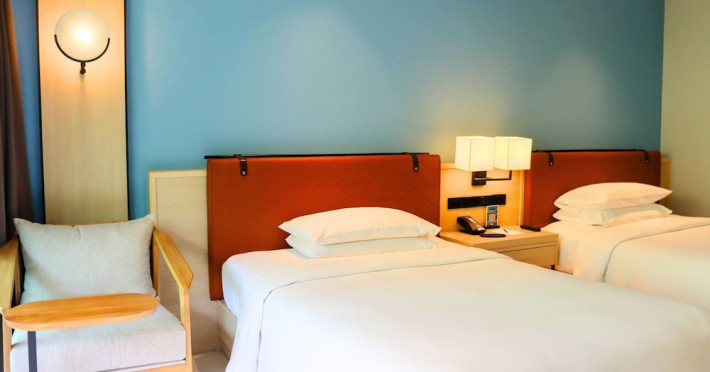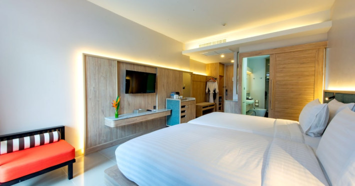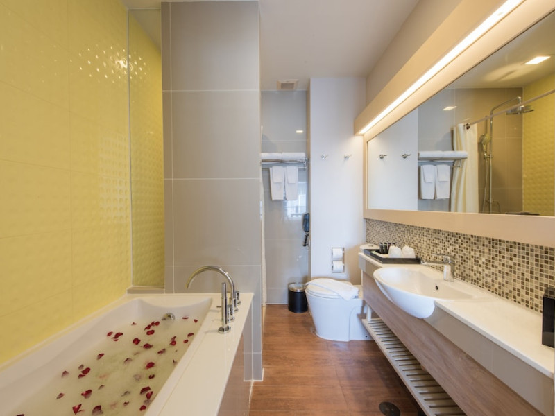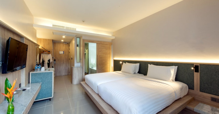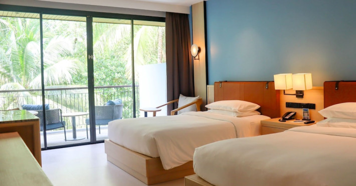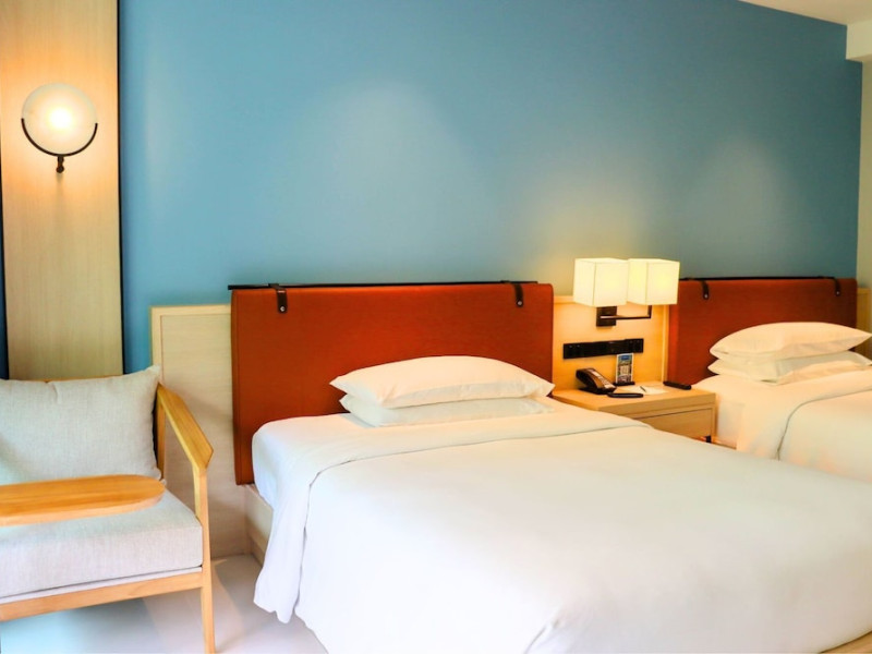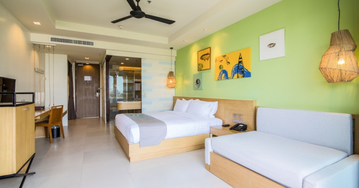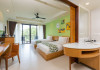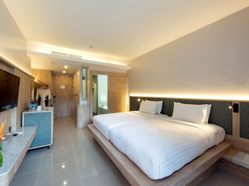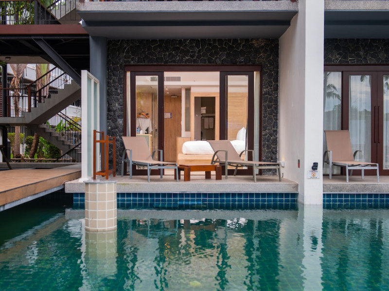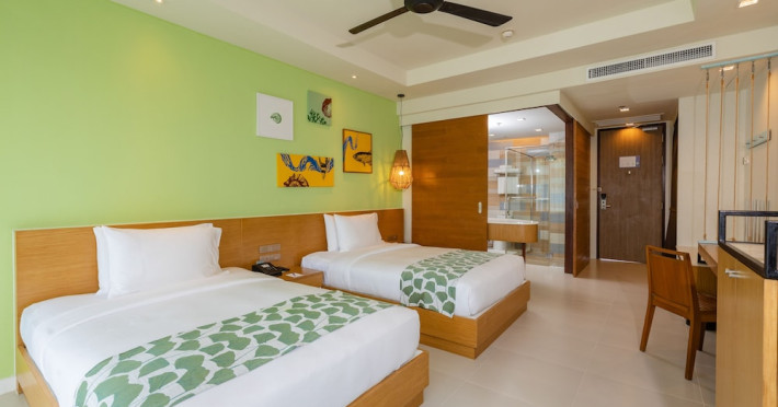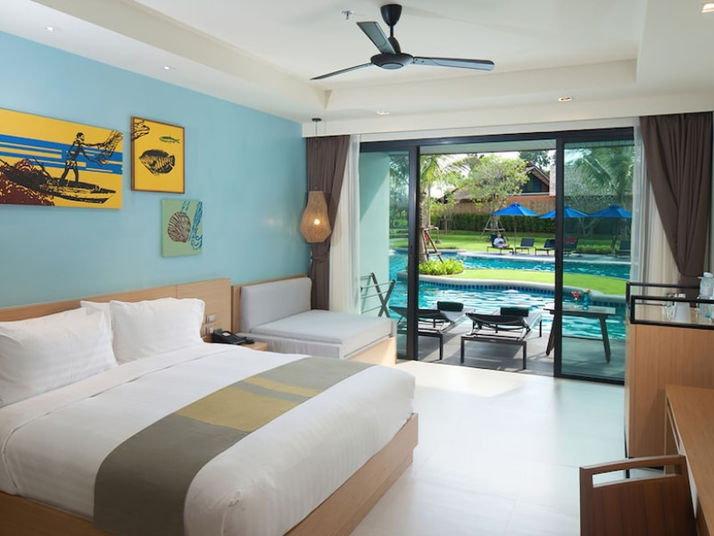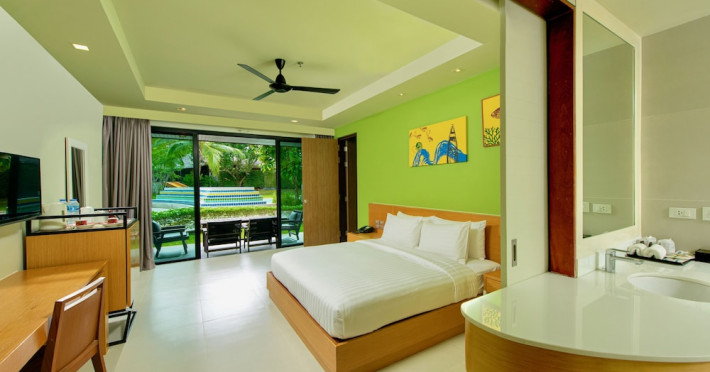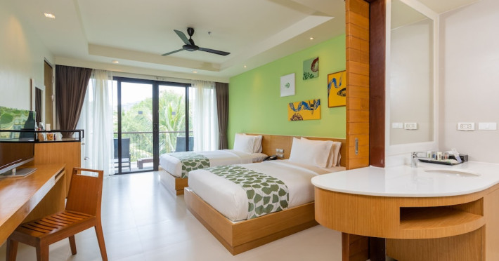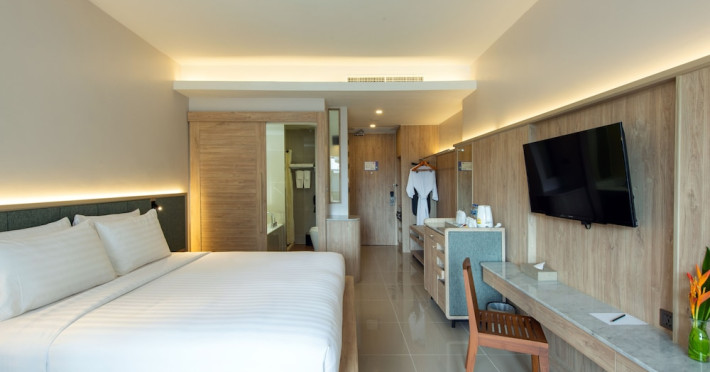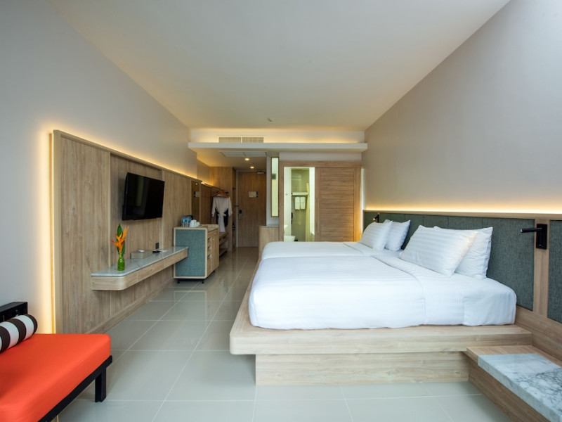 Holiday Inn Resort Krabi Ao Nang Beach offers a beachfront location amidst tropical greenery, a 30-minute drive from Krabi International Airport and a short walk to Ao Nang shopping area. It provides easy access to attractions, including Phi Phi and Railay Islands. The resort features multiple swimming pools, including a kids' zone with sliders, and a Kids Club. Dining options include a restaurant with Ao Nang Beach views, a swim-up pool bar, and a coffee shop. Guests can enjoy complimentary Wi-Fi, concierge services, an arcade/game room, and a fitness center. The resort also offers a 24-hour business center, meeting rooms, and free self-parking. Individually furnished guestrooms feature private balconies, satellite programming, and private bathrooms with complimentary toiletries. The hotel is near Ao Nang Landmark Night Market, Nopparat Thara Beach, and Ao Nang Beach. Renovations will occur from May 1, 2025, to July 31, 2025, with efforts to minimize disturbance. Airport transfer and taxi services are available. Some rooms offer separate living rooms and balconies or terraces, along with amenities like refrigerators, coffee/tea makers, and mini-bars. Select rooms include hair dryers and bathrobes. Breakfast is available, and guests can enjoy evening entertainment at the bar. The Holiday Ao Nang Beach Resort Krabi is a Beach Resort, Boutique, Child Friendly, Family Style, Full Service, Honeymoon, Leisure, Modern, Resort, Spa Resort, Tourist, Traditional hotel. The nightlife/restaurants are within walking distance from the hotel.