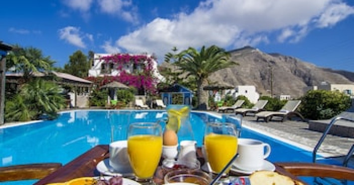 Property Location When you stay at Holiday Beach Resort in Santorini, you'll be connected to a shopping center, within a 15-minute walk of Perissa Beach and Perivolos Beach. This hotel is 5.8 mi (9.3 km) from Athinios Port and 2.8 mi (4.6 km) from Santorini Caldera.