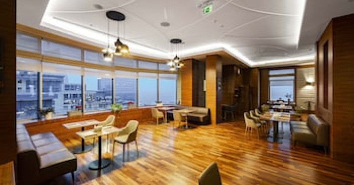 Dining Satisfy your appetite for lunch or dinner at Marina 18, a restaurant which specializes in Mediterranean cuisine, or stay in and take advantage of the 24-hour room service. Quench your thirst with your favorite drink at the bar/lounge. Buffet breakfasts are served on weekdays from 6:30 AM to 10:30 AM and on weekends from 6:30 AM to 11:00 AM for a fee.