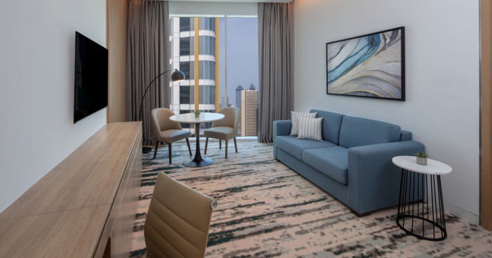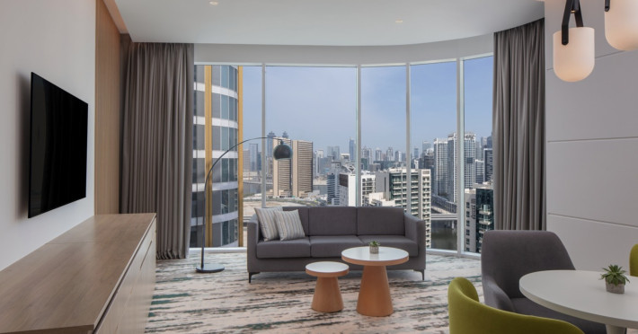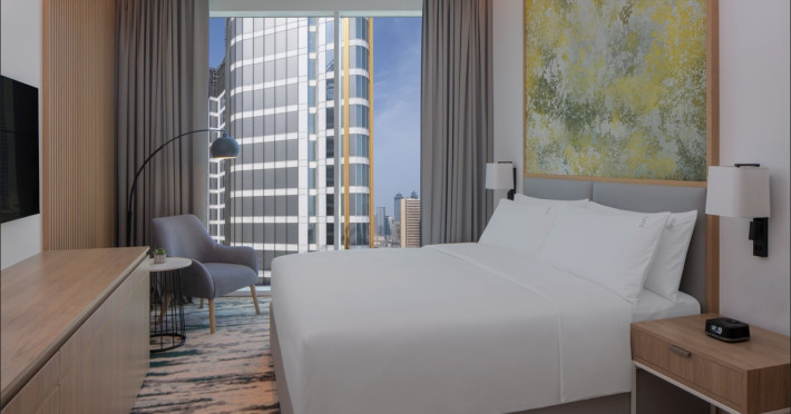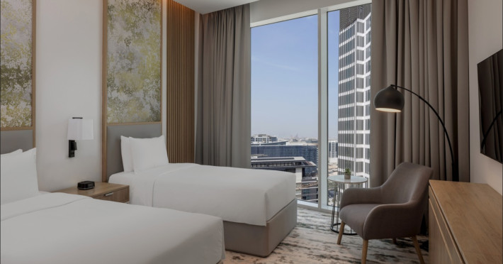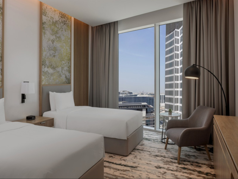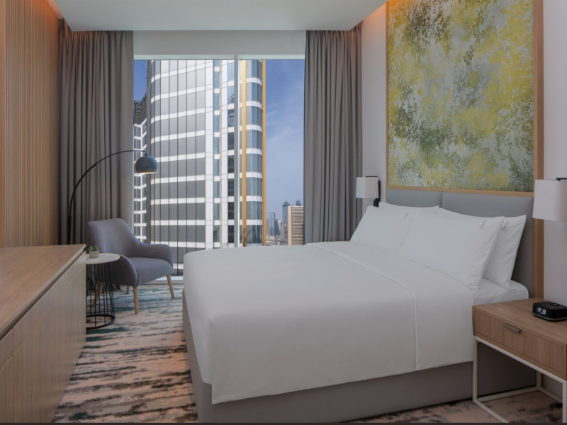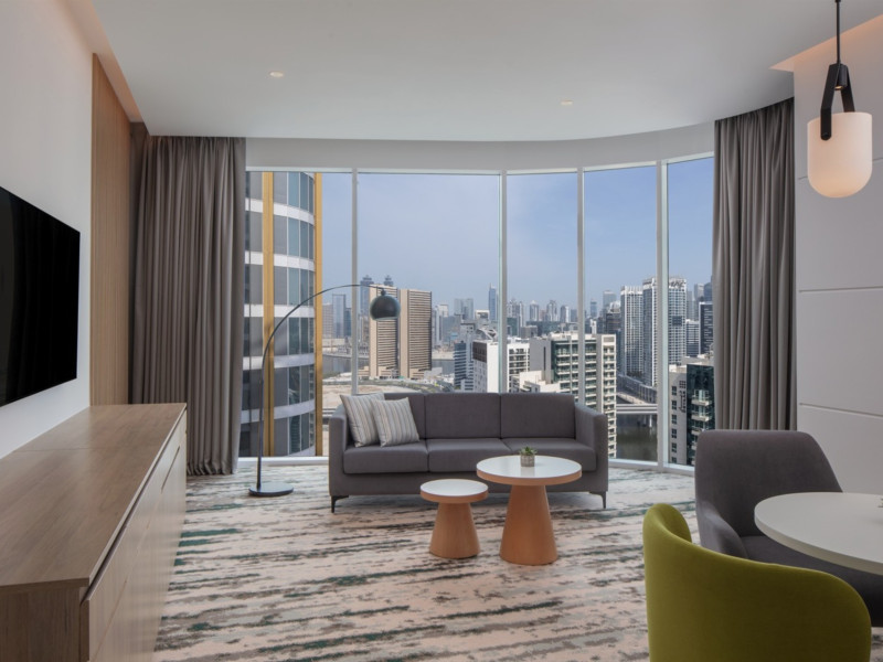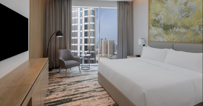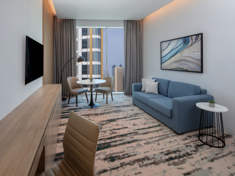 Around 12 km from a beach and approximately 18 km from the sea lies the hotel HOLIDAY INN DUBAI BUSINESS BAY. The nearest bars and restaurants are located directly next to the building. The old town is around 18 km away. A supermarket is around 22 kmAround 12 km from a beach and approximately 18 km from the sea lies the hotel HOLIDAY INN DUBAI BUSINESS BAY. The nearest bars and restaurants are located directly next to the building. The old town is around 18 km away. A supermarket is around 22 km away. There is a shuttle between the hotel and the airport (for a fee). To reach the beach a shuttle is provided. The air-conditioned hotel is equipped with a 24h reception, a lobby, Wi-Fi, internet access, a jacuzzi, a first aid kit, parking spaces as well as a TV lounge. In the outdoor area you will find a heated salt water pool, where sun loungers, sun umbrellas and pool towels are available for free. There is also a separate childrens pool. Furthermore, you can relax outdoors on a terrace. You can store your valuables in the safe, and your luggage in the hotels storage room. For very young guests, kids chairs can be provided. There is also a laundry service available at an additional cost to customers. Ironing equipment can be rented at the hotel for a fee. For your comfort, in addition to the concierge service the hotel page will ensure you are looked after. For conventions and other business meetings, the hotel offers a business centre as well as a conference area with a total of 100 seats as well as a catering service. If you want to explore the holiday region, you can use the car rental service close to the hotel (extra fee). For guests on their honeymoon, the hotel has special offers such as special honeymoon packages. In your hotel, a lot of focus is placed on sustainability. This includes among others a central room air-conditioning. Due to its barrier-free facilities , such as separate, barrier-free entrances, wheelchair accessible rooms and a wheelchair accessible lift, the hotel is also suitable for wheelchair users. Catering As catering services the hotel offers half board and full board. Breakfast is offered from the buffet or à la carte. Dinner is also served as a set meal or à la carte. Half board plus includes selected imported spirits (limited). All Inclusive Light includes local alcoholic beverages. As part of the all-inclusive service, international alcoholic beverages (24h, limited) are available around the clock and at no extra charge. For the meals, there are a restaurant with terrace (calorie-reduced, gluten-free and vegetarian dishes) and a bar, a 24h snackbar as well as the pool bar. The drinks menu of the hotel includes 24h international alcoholic beverages. Distances Discotheque: approximately at 10 km Fun park: approximately at 800 m Airport: approximately at 15 km Aqua park: approximately at 18 km Bus stop: approximately at 100 m Cinema: approximately at 500 m Taxi rank: approximately at 50 m Theatre: approximately at 700 m Nearest dentist: approximately at 500 m Hospital: approximately at 500 m Golf course: approximately at 18 km Nearest bank: approximately at 200 m Tourist information: approximately at 500 m Nearest highway: approximately at 400 m Subway station: approximately at 7 km Nearest public transport: approximately at 400 m Business center: approximately at 50 m Climbing park: approximately at 30 km Tennis court: approximately at 20 km Riding school: approximately at 10 km Nearest riding route: approximately at 15 km Sports amp; Leisure To keep your fitness up on holiday, there is a gym (open 24 hours a day) for guests to use. During your holiday you can also take part in yoga courses. For cyclists there is a storage room. For your wellbeing the hotel also offers massages and beauty treatments. Additional information The 20-storey accommodation has a total of 275 rooms.