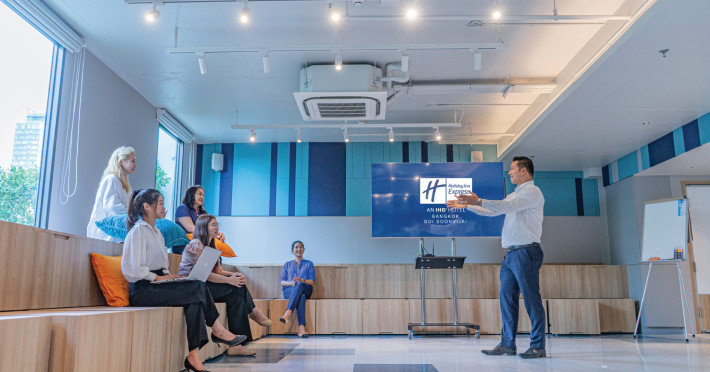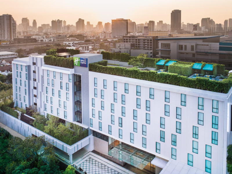 Holiday Inn Express Bangkok Soi Soonvijai is the green hotel in Soi Soonvijai with certified Amazing Thailand Safety & Health Administration (SHA) and IHG Clean Promise. We are also the closest IHG hotel to Suvarnabhumi Airport, an ideal base for medical tourists, as well as, leisure and business travelers looking to experience Bangkok.Our hotel is conveniently located just 2 minutes walk to Bangkok Hospital and Bangkok Plaza. With Free Shuttle Service that takes guests to BTS Thonglor, MRT Phetchaburi and Makkasan Airport Rail Link Stations, traveling from and to Suvarnabhumi Airport and key dining, sightseeing, entertainment areas are hassle-free. For medical tourists, the hotel offers free transfers to Piyavate hospital and Praram 9 hospital. Located in Phetchaburi Road area within arm’s reach of key corporate offices and popular nightlife entertainment and shopping malls along Sukhumvit Road such as Thonglor, Ekkamai, Terminal 21 and EmQuartier.Start the day right with our all-inclusive Express Start Breakfast or Grab & Go option and stay connected with our free Wi-Fi throughout the hotel. Relax in our healing garden or rooftop garden and get the most out of your stay with our 24-hour fitness center, self-service laundry facility and meeting room for up to 30 persons.