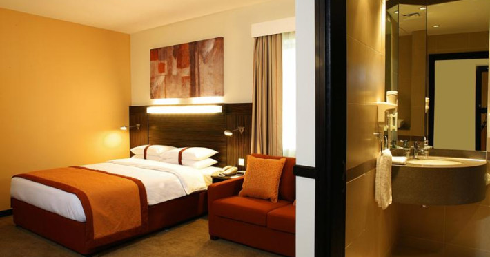 Camerele de la Holiday Inn Express Dubai sunt decorate în nuanţe maro de culoarea nisipului şi oferă lenjerie de pat de lux. Zona de zi include canapea confortabilă şi TV cu acces la canale internationale.