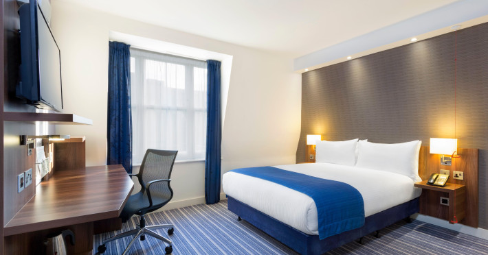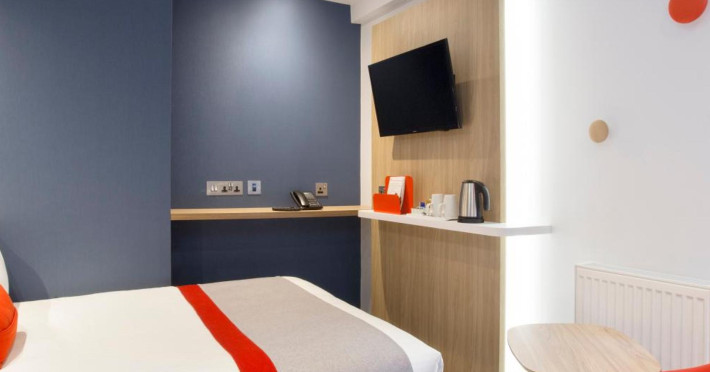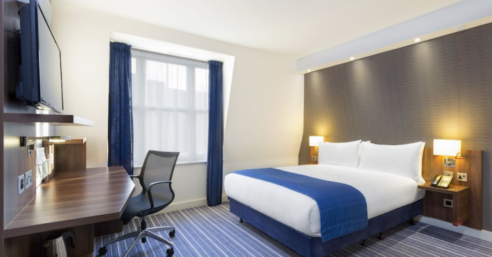 The Holiday Inn Express London - Southwark offers a central London location in the Southwark area, near Southwark and Blackfriars Tube stations, providing easy access to attractions like the Tate Modern and Borough Market. The eco-certified hotel offers rooms with a flat-screen TV, private bathroom with shower and hairdryer, complimentary wireless internet access, desk, and coffee/tea maker. All rooms are air-conditioned. Guests can enjoy a complimentary breakfast, a bar/lounge, a business center, and a vending machine. Additional amenities include express check-out and dry cleaning/laundry services. Limited on-site parking is available. The lobby bar features a wide-screen TV. The Holiday Inn Express London Southwark is a Tourist hotel. The nightlife/restaurants are located in the hotel.