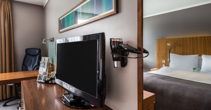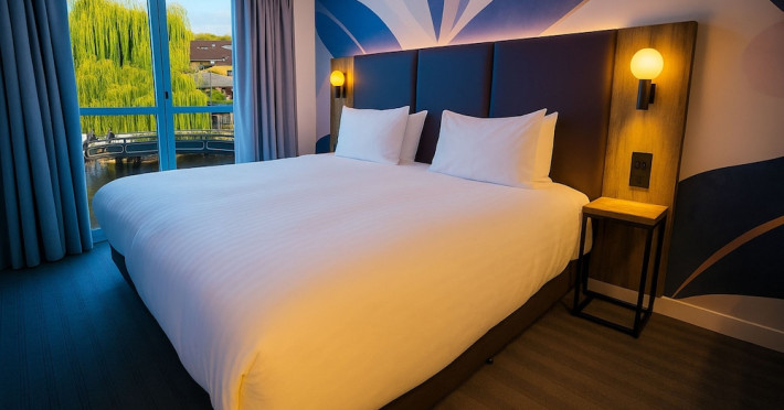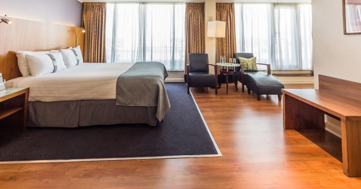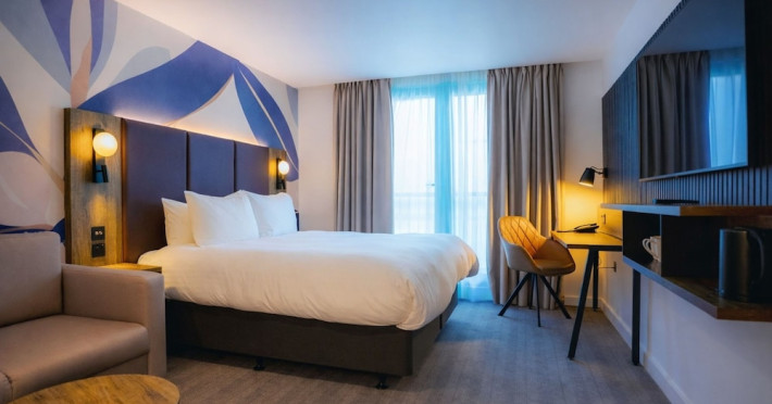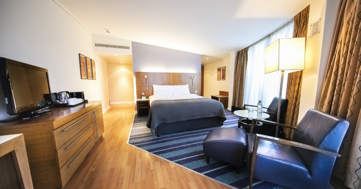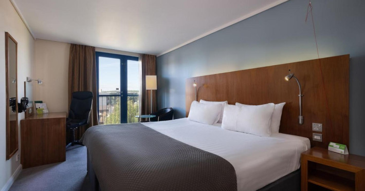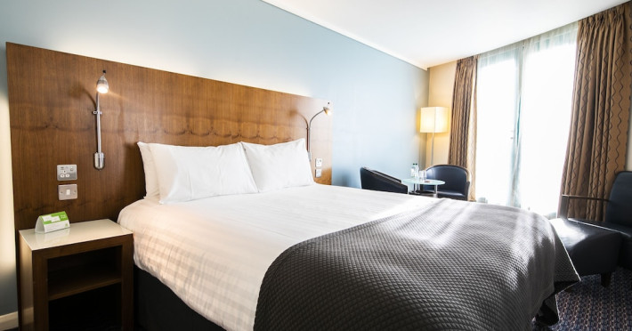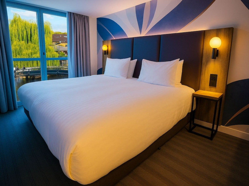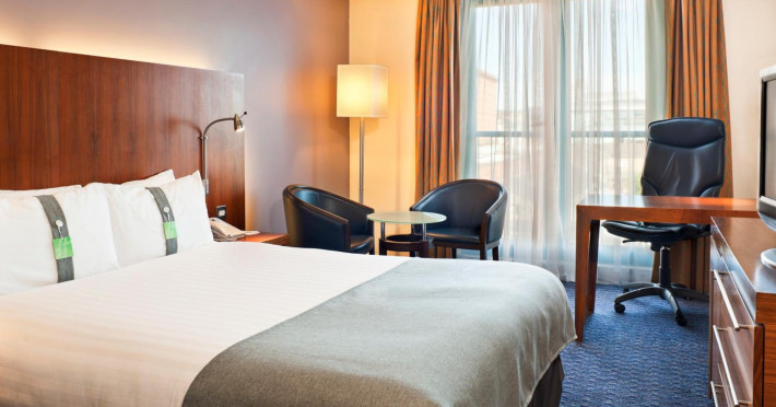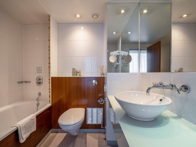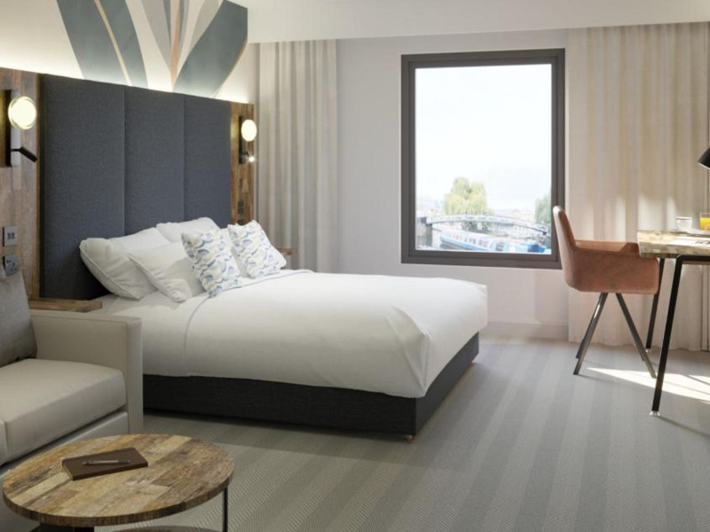 The Holiday Inn London Camden Lock, an eco-certified hotel, is centrally located in London, a 4-minute walk from Camden Town Underground Station and a short tube ride to King’s Cross St Pancras. It offers 130 guestrooms with flat-screen TVs, complimentary Wi-Fi, private bathrooms featuring deep soaking bathtubs and power showers, and complimentary toiletries. Amenities include a restaurant (Mezzanine Restaurant), a coffee shop/cafe, a bar/lounge, 24-hour room service, a business center, concierge services, and a mini-gym (fitness center closed Mon-Thurs & Sun). Meeting space (over 6,000 sq ft, undergoing renovation Nov 22, 2024 - June 30, 2025, during business hours only) is also available. Nearby attractions include Camden Markets (0.1 km), Regent's Park (0.8 km), ZSL London Zoo (1.3 km), and many others within a 3.3 km radius. The British Museum and Hyde Park are within a 10-minute drive. Buffet breakfast is available (fee applies; weekdays 6:30 AM-10:30 AM, weekends 7:00 AM-11:00 AM). The nearest airport is Heathrow (LHR). The Holiday Inn London Camden Lock is a Tourist hotel. The nightlife/restaurants are located in the hotel.