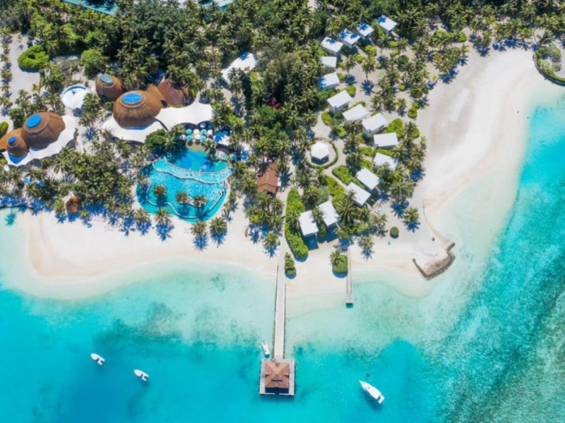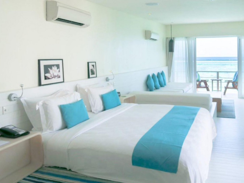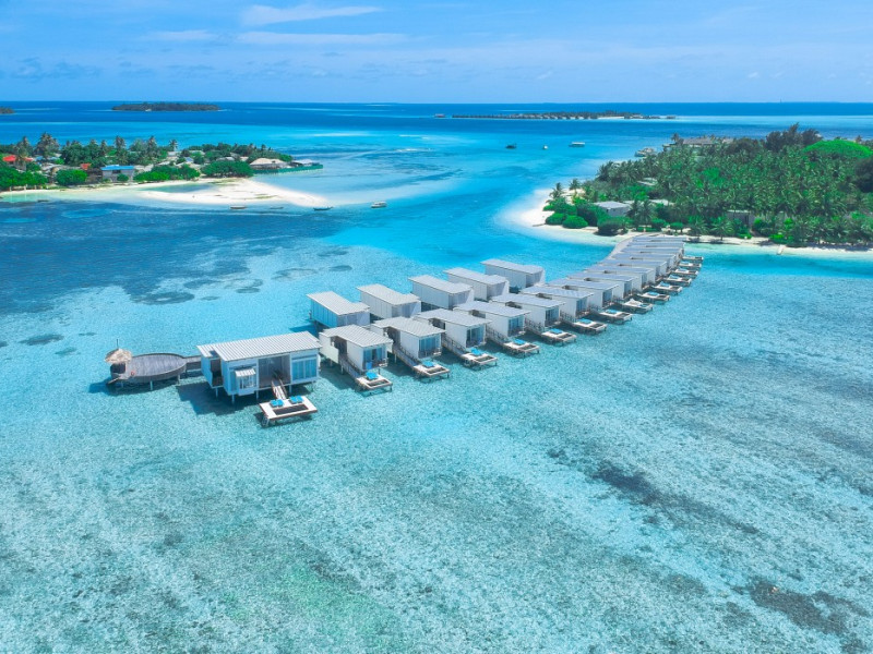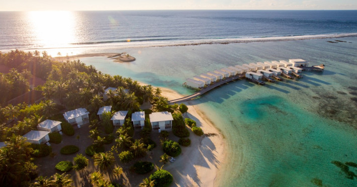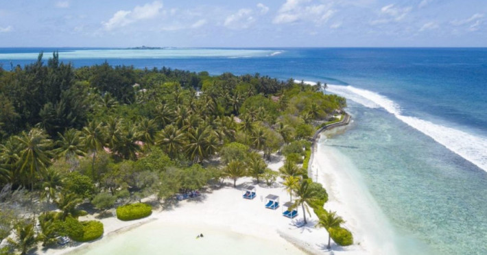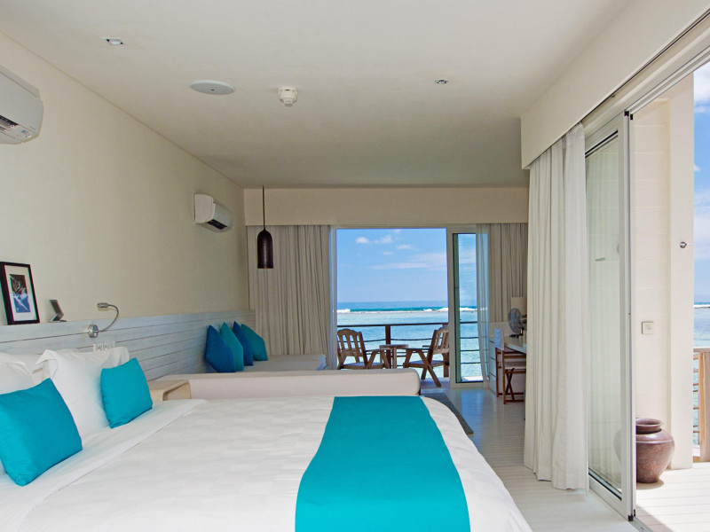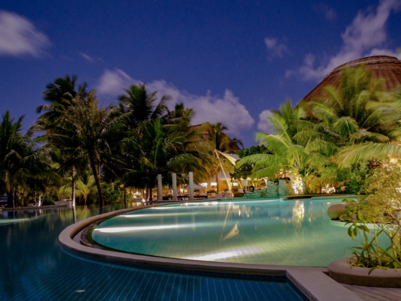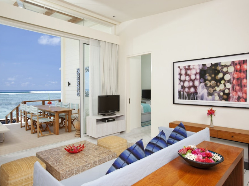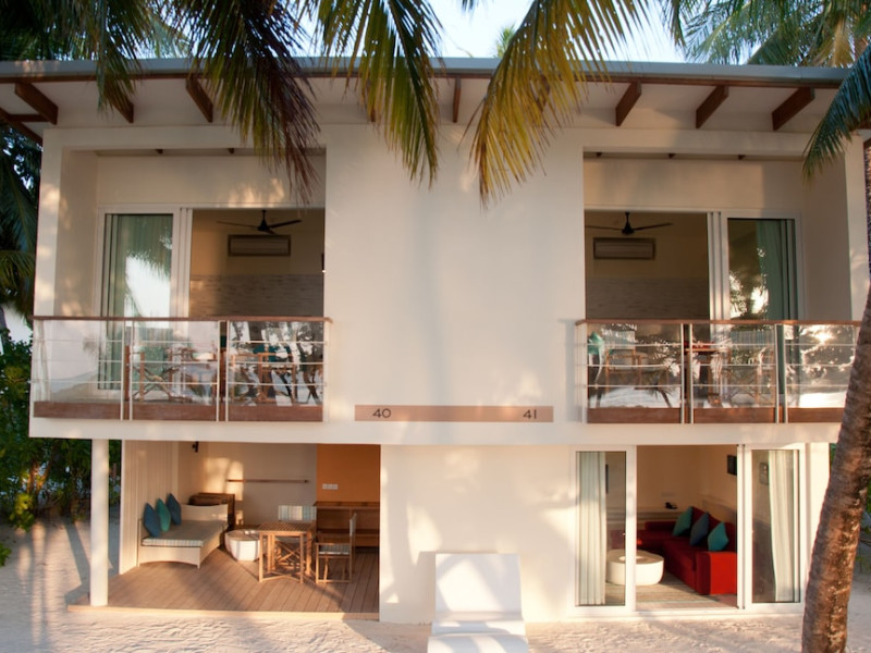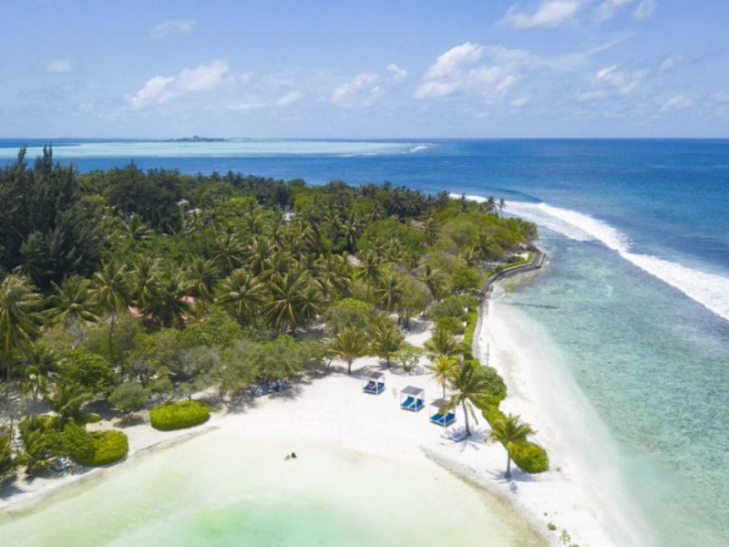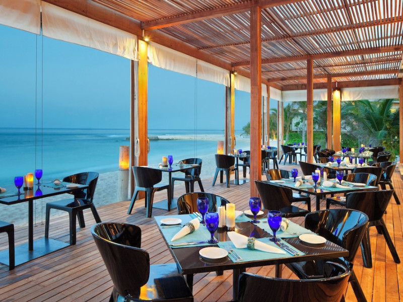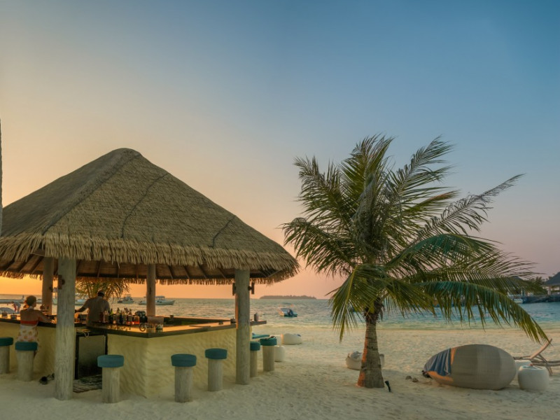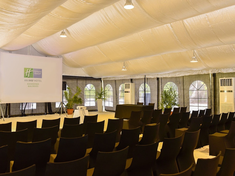 Holiday Inn Resort Kandooma Maldives, a tropical island resort, is a 45-minute speedboat ride from Velana International Airport. The resort offers 154 spacious villas with beach, ocean, garden, or lagoon access. Dining options range from casual to gourmet, with three restaurants and four bars. A complimentary buffet breakfast is served daily. Amenities include a full-service spa (Kandooma Spa by COMO Shambhala), an outdoor pool, a waterslide, complimentary Wi-Fi, concierge services, and babysitting (surcharge). All-inclusive rates are available. Children's activities include the Kandoo Kids Club, PADI Bubblemaker, surf camps, and swimming lessons; the resort offers a Kids Stay and Eat Free program. For certified divers staying a minimum of three nights, a Dive Free program (two dives per person, per day, maximum two divers per room) is available. A 24-hour airport shuttle is available for a surcharge. The resort has 2153 square feet of meeting space. Guestrooms feature MP3 docking stations and flat-screen TVs. Nearby beaches include Kandooma Beach (0.3 km), Gulhi Beach (13.2 km), and Vadoo Beach (29.3 km). Surfers must book through Perfect Wave. Drones are prohibited except in designated areas with prior notice. Third-party services are not permitted. To arrange airport transfers, contact reservations.hikandooma@ihg.com at least 24 hours in advance. The Holiday Inn Resort Kandooma Maldives is a Beach Resort, Child Friendly, Honeymoon, Leisure, Tourist hotel. The nightlife/restaurants are located in the hotel.