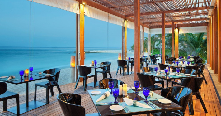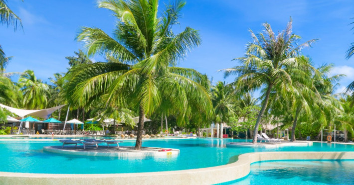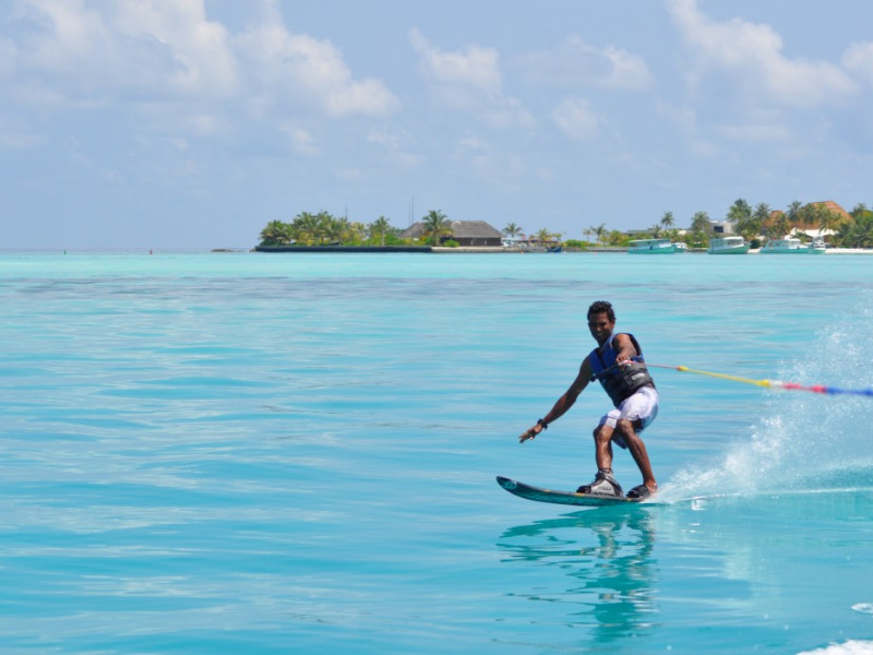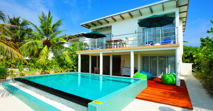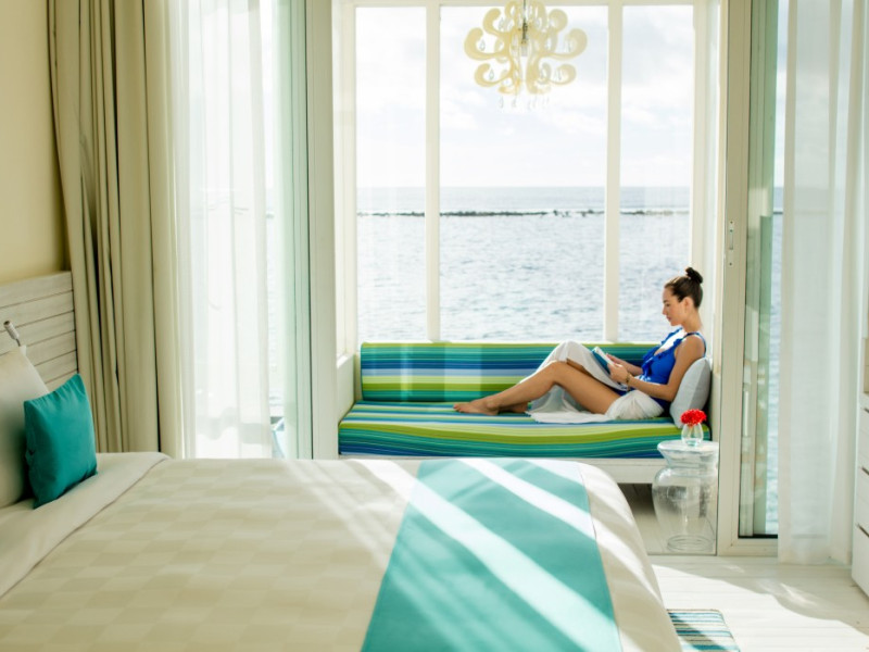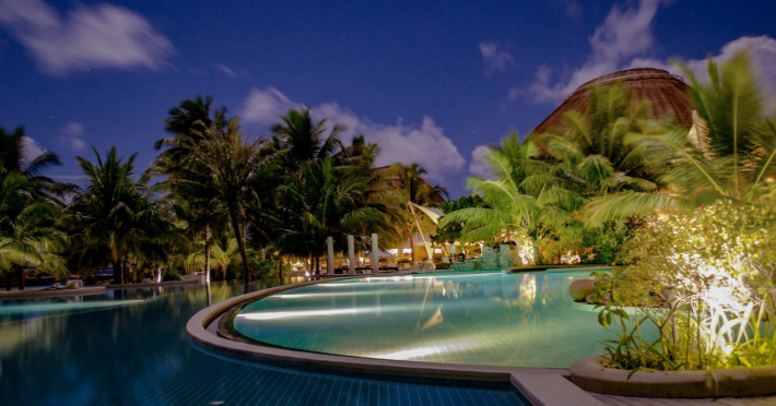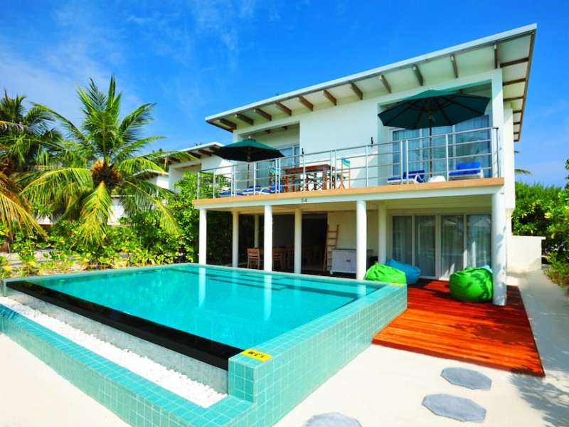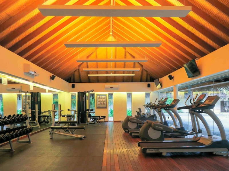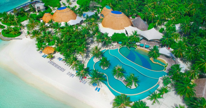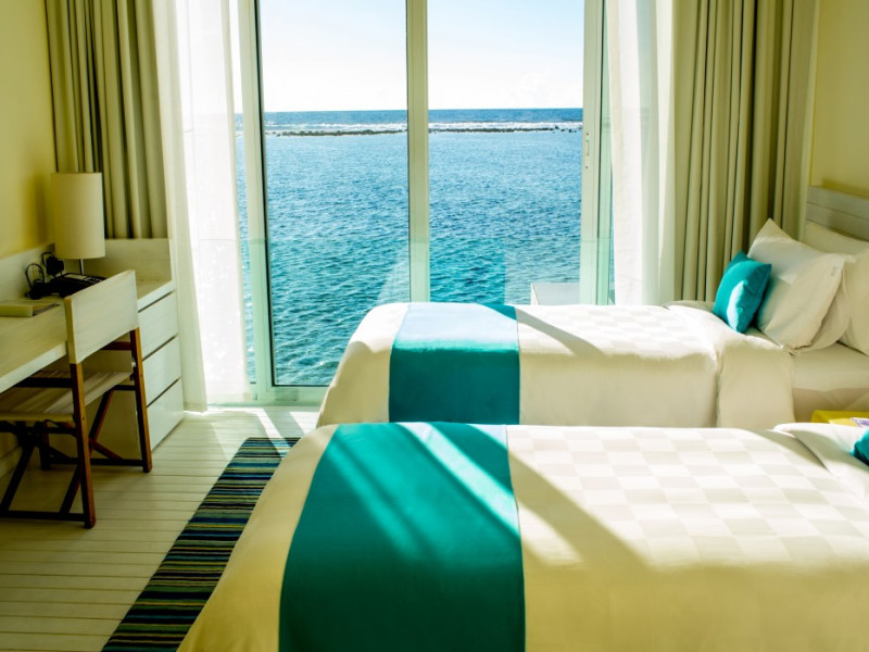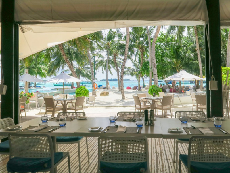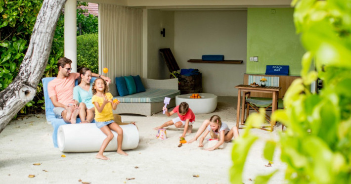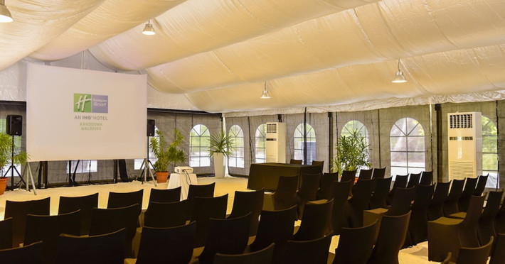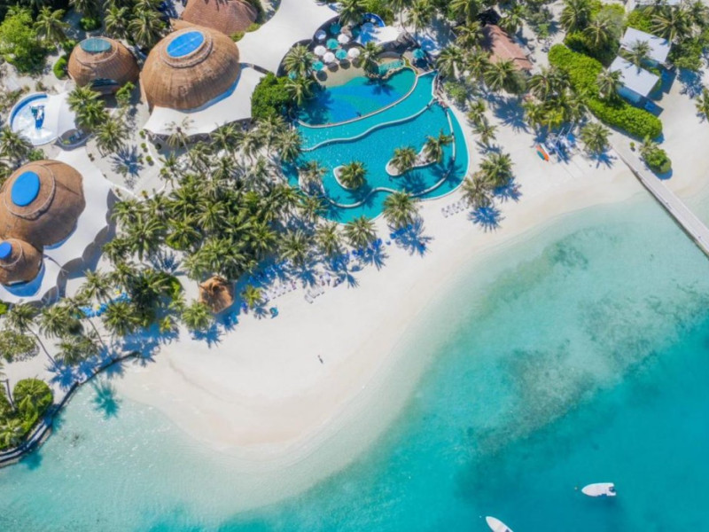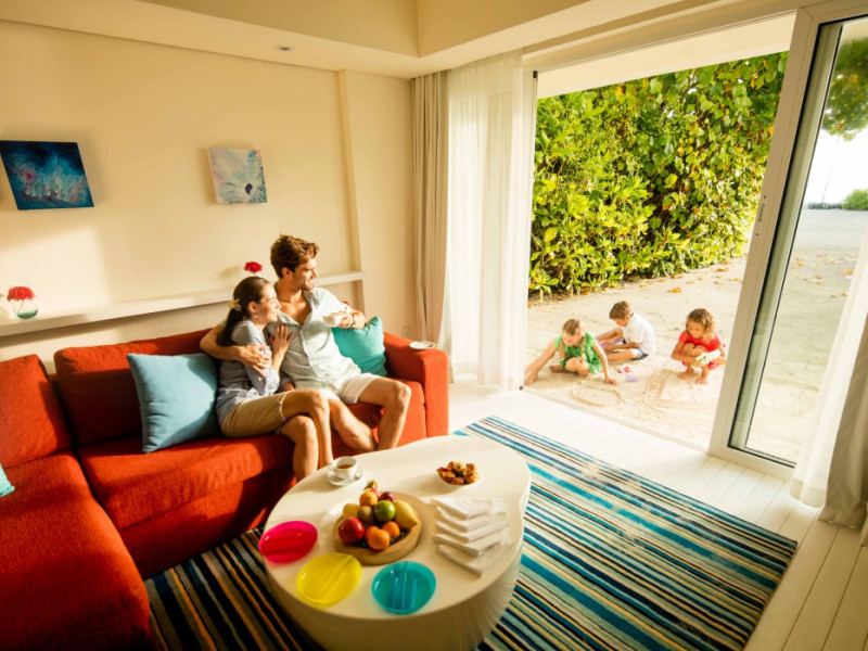 Holiday Inn Resort Kandooma Maldives, a tropical island resort, is a 45-minute speedboat ride from Velana International Airport. The resort offers 154 spacious villas with beach, ocean, garden, or lagoon access. Dining options range from casual to gourmet, with three restaurants and four bars. A complimentary buffet breakfast is served daily. Amenities include a full-service spa (Kandooma Spa by COMO Shambhala), an outdoor pool, a waterslide, complimentary Wi-Fi, concierge services, and babysitting (surcharge). All-inclusive rates are available. Children's activities include the Kandoo Kids Club, PADI Bubblemaker, surf camps, and swimming lessons; the resort offers a Kids Stay and Eat Free program. For certified divers staying a minimum of three nights, a Dive Free program (two dives per person, per day, maximum two divers per room) is available. A 24-hour airport shuttle is available for a surcharge. The resort has 2153 square feet of meeting space. Guestrooms feature MP3 docking stations and flat-screen TVs. Nearby beaches include Kandooma Beach (0.3 km), Gulhi Beach (13.2 km), and Vadoo Beach (29.3 km). Surfers must book through Perfect Wave. Drones are prohibited except in designated areas with prior notice. Third-party services are not permitted. To arrange airport transfers, contact reservations.hikandooma@ihg.com at least 24 hours in advance. The Holiday Inn Resort Kandooma Maldives is a Beach Resort, Child Friendly, Honeymoon, Leisure, Tourist hotel. The nightlife/restaurants are located in the hotel.