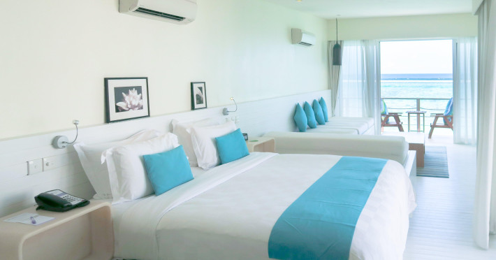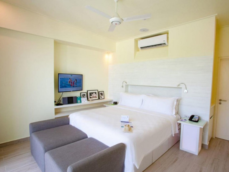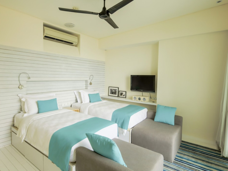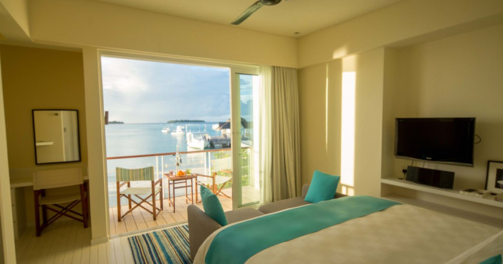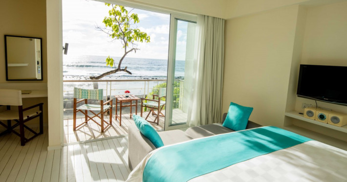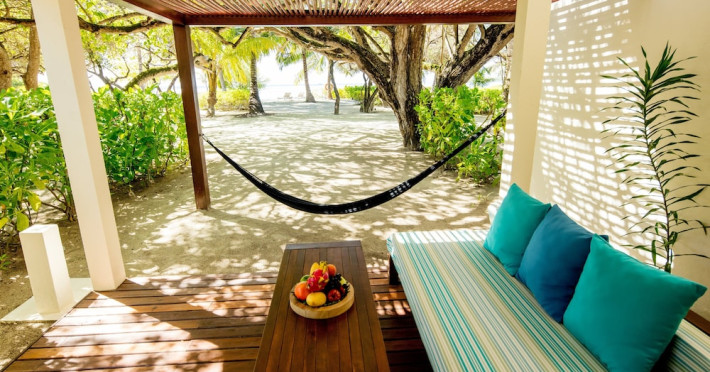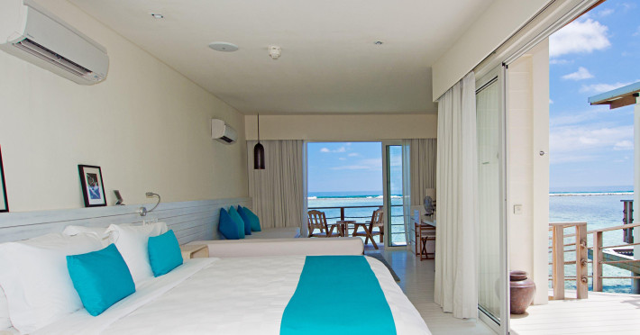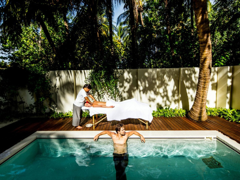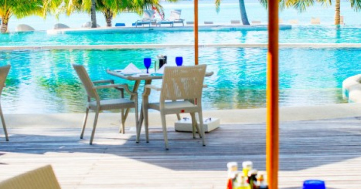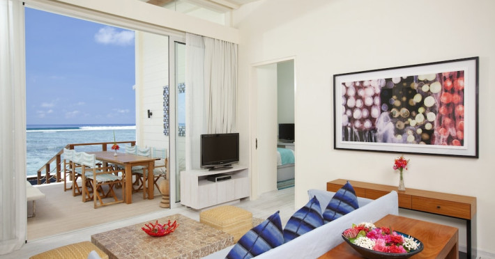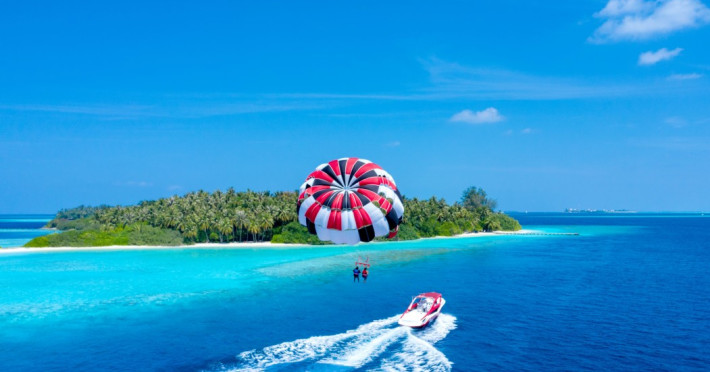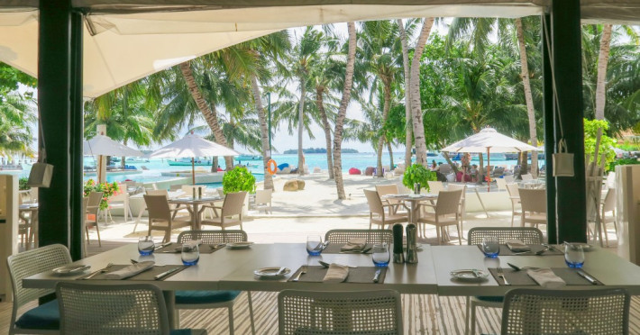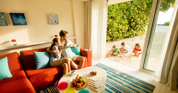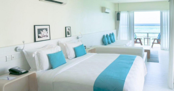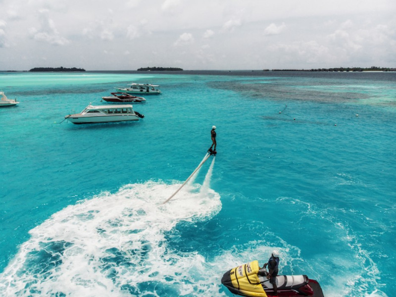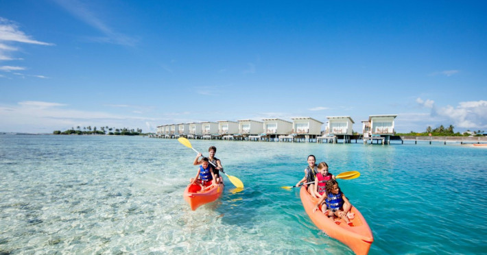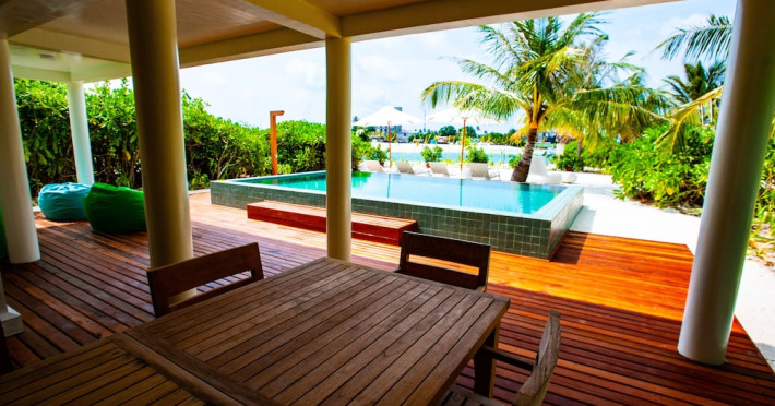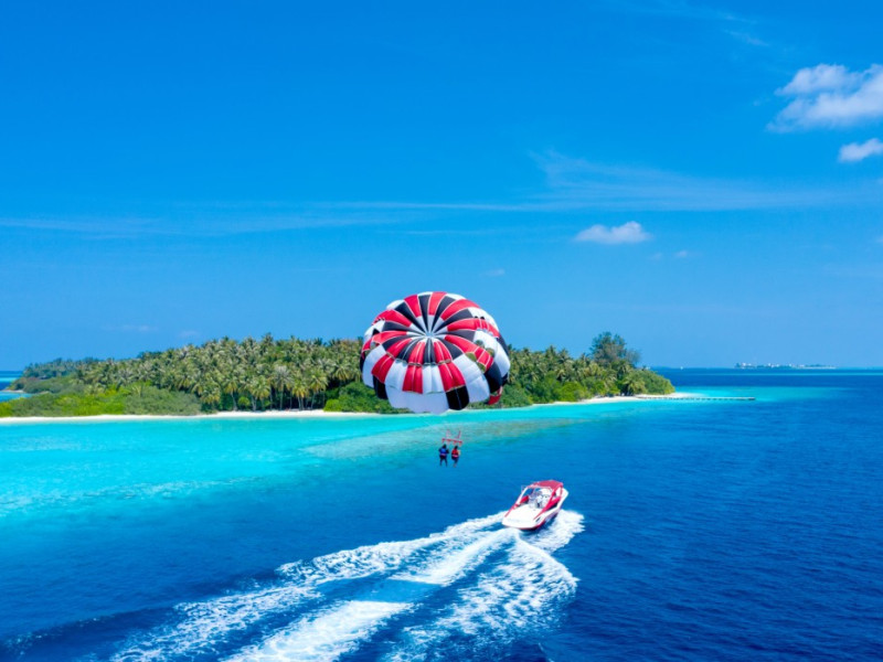 Holiday Inn Resort Kandooma Maldives, a tropical island resort, is a 45-minute speedboat ride from Velana International Airport. The resort offers 154 spacious villas with beach, ocean, garden, or lagoon access. Dining options range from casual to gourmet, with three restaurants and four bars. A complimentary buffet breakfast is served daily. Amenities include a full-service spa (Kandooma Spa by COMO Shambhala), an outdoor pool, a waterslide, complimentary Wi-Fi, concierge services, and babysitting (surcharge). All-inclusive rates are available. Children's activities include the Kandoo Kids Club, PADI Bubblemaker, surf camps, and swimming lessons; the resort offers a Kids Stay and Eat Free program. For certified divers staying a minimum of three nights, a Dive Free program (two dives per person, per day, maximum two divers per room) is available. A 24-hour airport shuttle is available for a surcharge. The resort has 2153 square feet of meeting space. Guestrooms feature MP3 docking stations and flat-screen TVs. Nearby beaches include Kandooma Beach (0.3 km), Gulhi Beach (13.2 km), and Vadoo Beach (29.3 km). Surfers must book through Perfect Wave. Drones are prohibited except in designated areas with prior notice. Third-party services are not permitted. To arrange airport transfers, contact reservations.hikandooma@ihg.com at least 24 hours in advance. The Holiday Inn Resort Kandooma Maldives is a Beach Resort, Child Friendly, Honeymoon, Leisure, Tourist hotel. The nightlife/restaurants are located in the hotel.