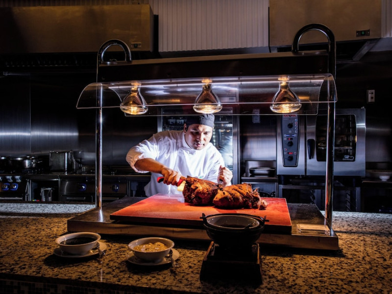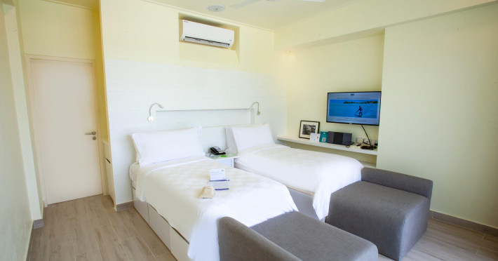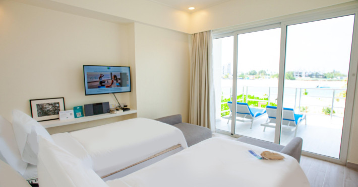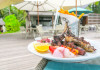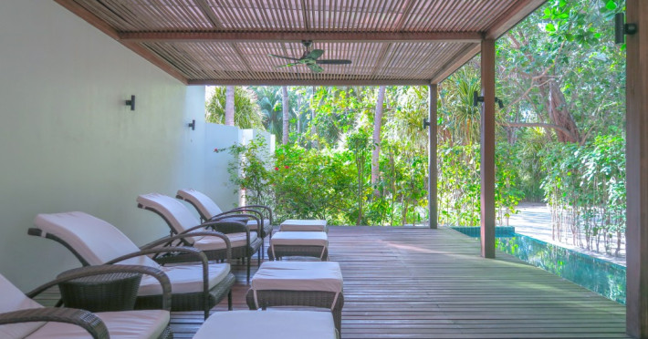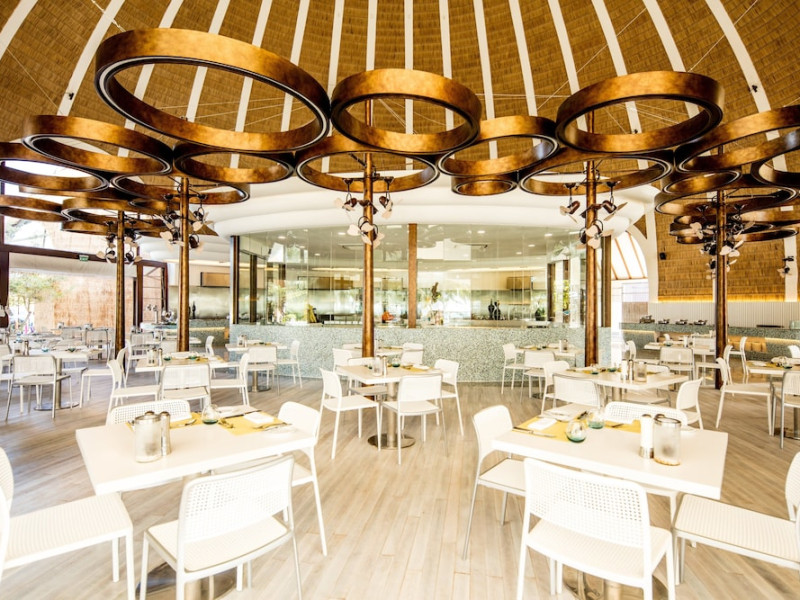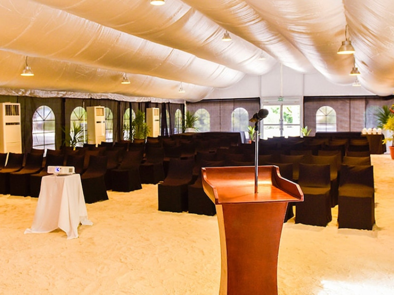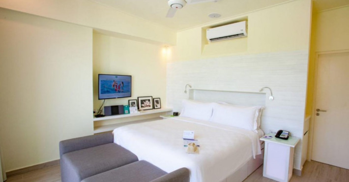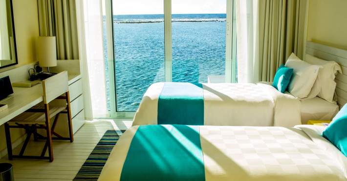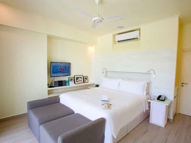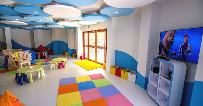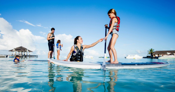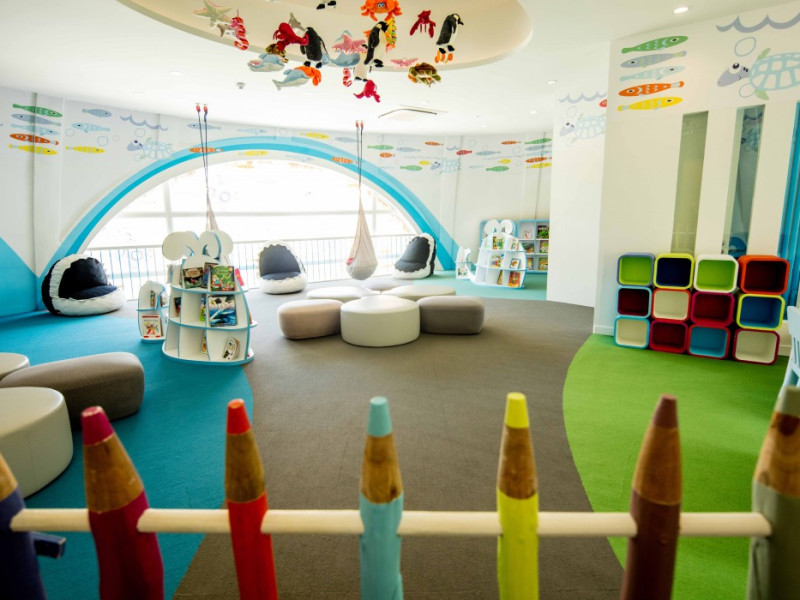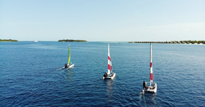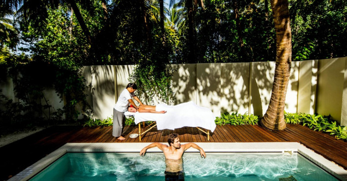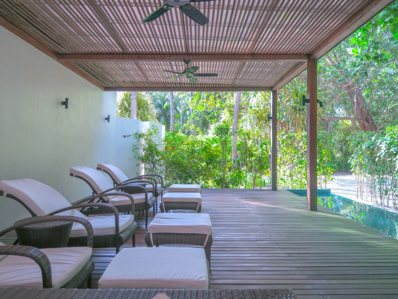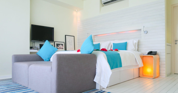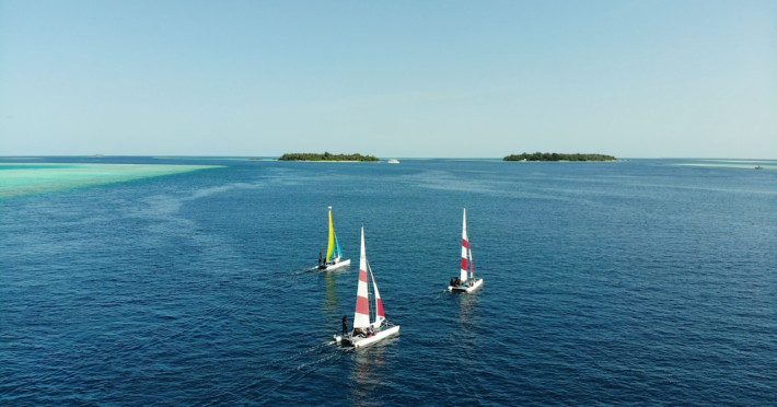 Holiday Inn Resort Kandooma Maldives, a tropical island resort, is a 45-minute speedboat ride from Velana International Airport. The resort offers 154 spacious villas with beach, ocean, garden, or lagoon access. Dining options range from casual to gourmet, with three restaurants and four bars. A complimentary buffet breakfast is served daily. Amenities include a full-service spa (Kandooma Spa by COMO Shambhala), an outdoor pool, a waterslide, complimentary Wi-Fi, concierge services, and babysitting (surcharge). All-inclusive rates are available. Children's activities include the Kandoo Kids Club, PADI Bubblemaker, surf camps, and swimming lessons; the resort offers a Kids Stay and Eat Free program. For certified divers staying a minimum of three nights, a Dive Free program (two dives per person, per day, maximum two divers per room) is available. A 24-hour airport shuttle is available for a surcharge. The resort has 2153 square feet of meeting space. Guestrooms feature MP3 docking stations and flat-screen TVs. Nearby beaches include Kandooma Beach (0.3 km), Gulhi Beach (13.2 km), and Vadoo Beach (29.3 km). Surfers must book through Perfect Wave. Drones are prohibited except in designated areas with prior notice. Third-party services are not permitted. To arrange airport transfers, contact reservations.hikandooma@ihg.com at least 24 hours in advance. The Holiday Inn Resort Kandooma Maldives is a Beach Resort, Child Friendly, Honeymoon, Leisure, Tourist hotel. The nightlife/restaurants are located in the hotel.