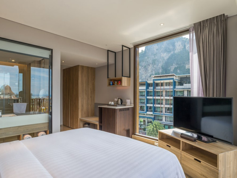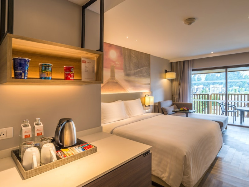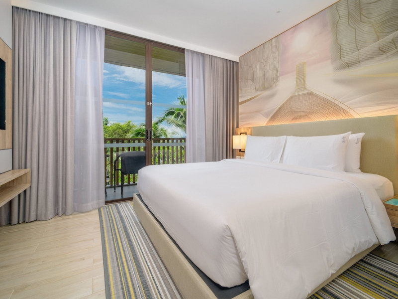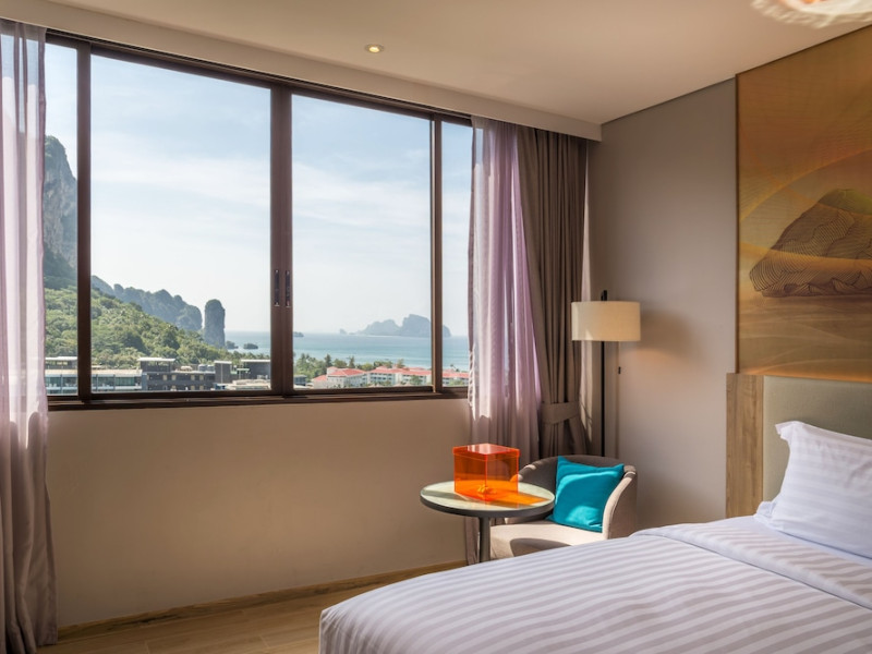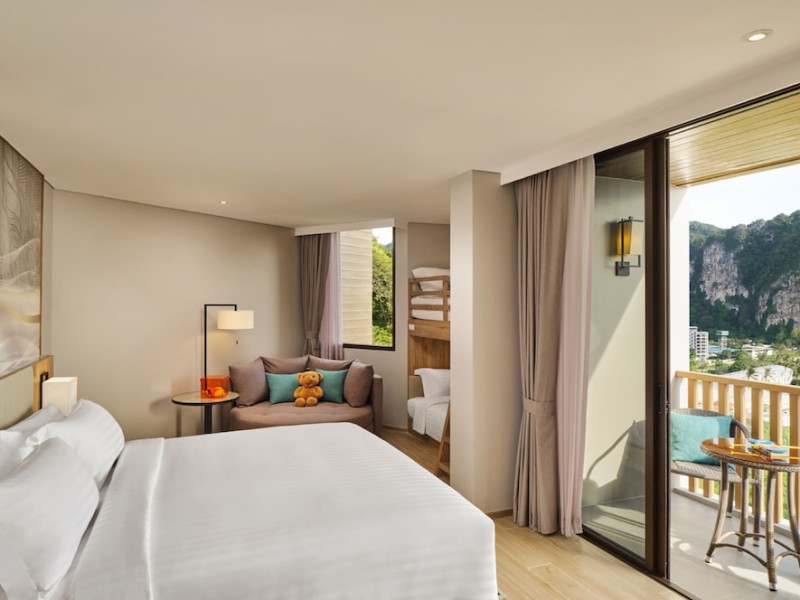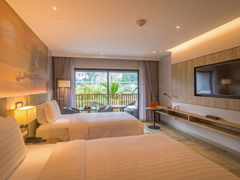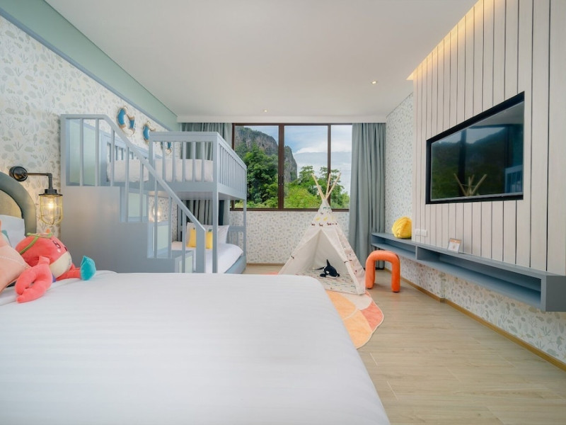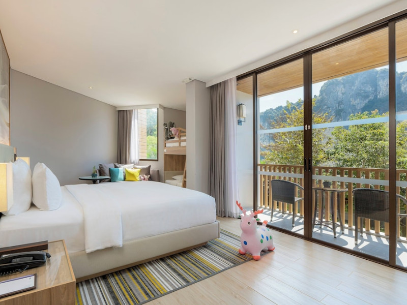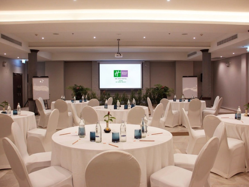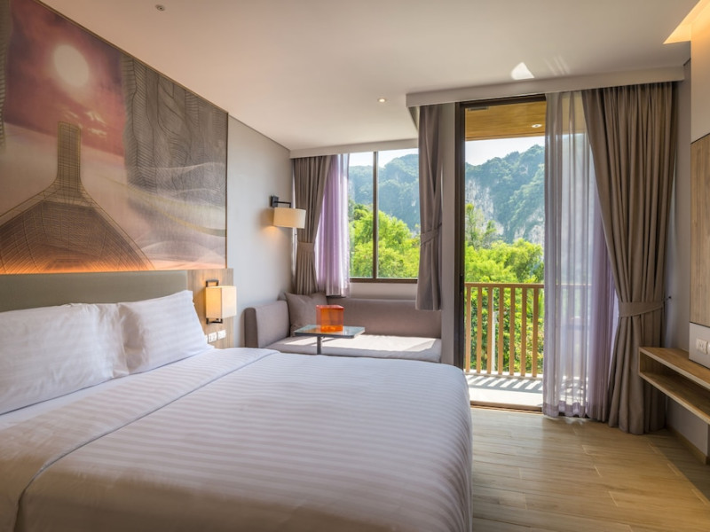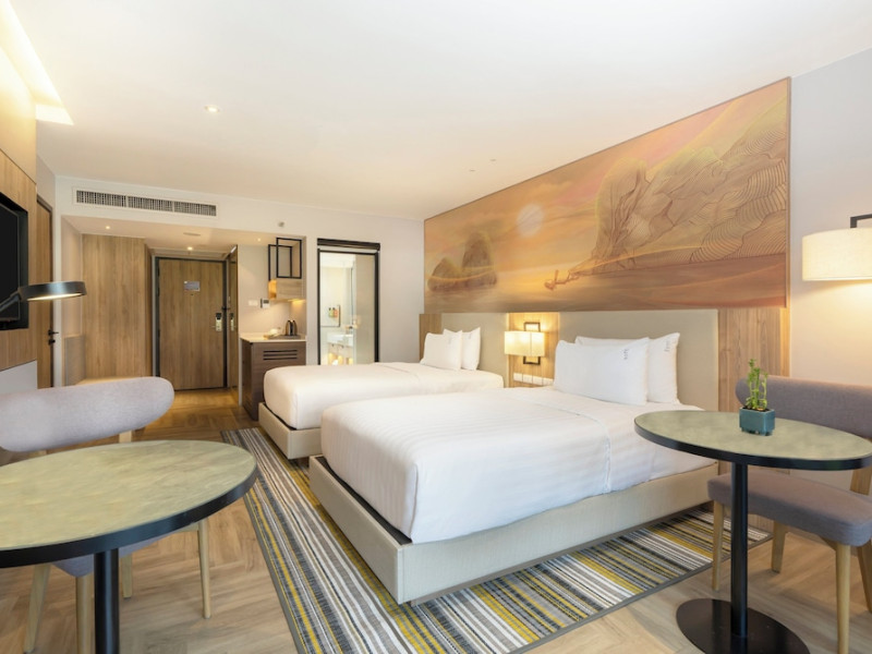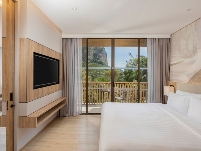 Holiday Inn Resort Krabi Ao Nang Beach offers 171 spacious guestrooms and suites with modern designs inspired by Krabi's landscape. Enjoy complimentary Wi-Fi, Smart TVs, memory foam beds with premium bedding, minibars, and private bathrooms with showers, complimentary toiletries, and bidets. Dining options include the Rakhang Thai Bistro & Bar, serving Thai and international cuisine. Relax by one of two outdoor swimming pools (note: one pool will be under renovation from May 16, 2025, to August 31, 2025; an alternate pool will remain open), unwind at the full-service spa, or work out at the 24-hour fitness center. Other amenities include a kids' club, kids' pool, outdoor playground, sauna, concierge services, a living plant wall, a bar/lounge, and poolside bar. A roundtrip airport shuttle (surcharge) and ferry terminal shuttle (surcharge) are available. The resort is a 1-minute drive from Ao Nang Beach and offers easy access to local attractions. Buffet breakfasts are available daily (fee applies). Renovation work will be conducted during business hours with efforts to minimize noise and disturbance. The Holiday Inn Resort Krabi Ao Nang Beach is a Honeymoon, Leisure, Resort, Tourist hotel. The nightlife/restaurants are easily accessible by taxi or bus from the hotel.