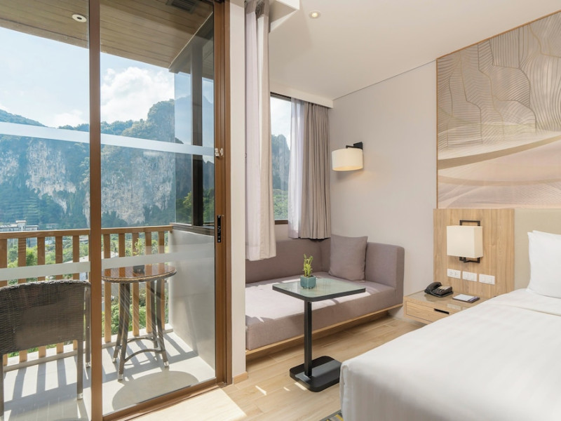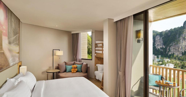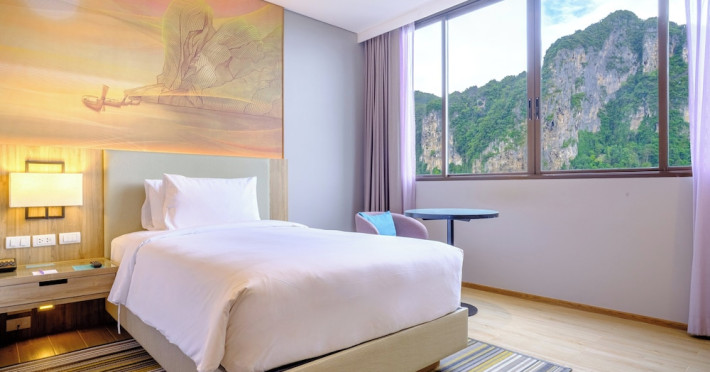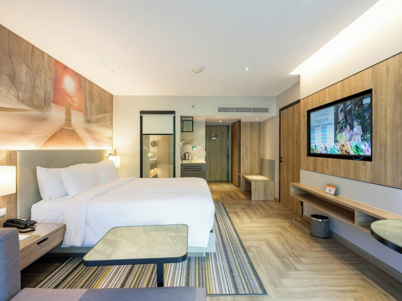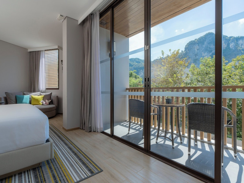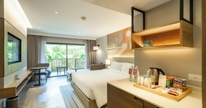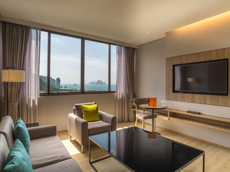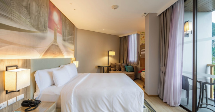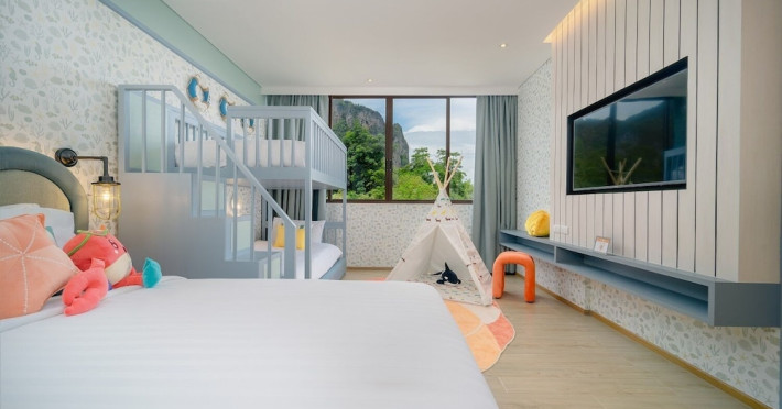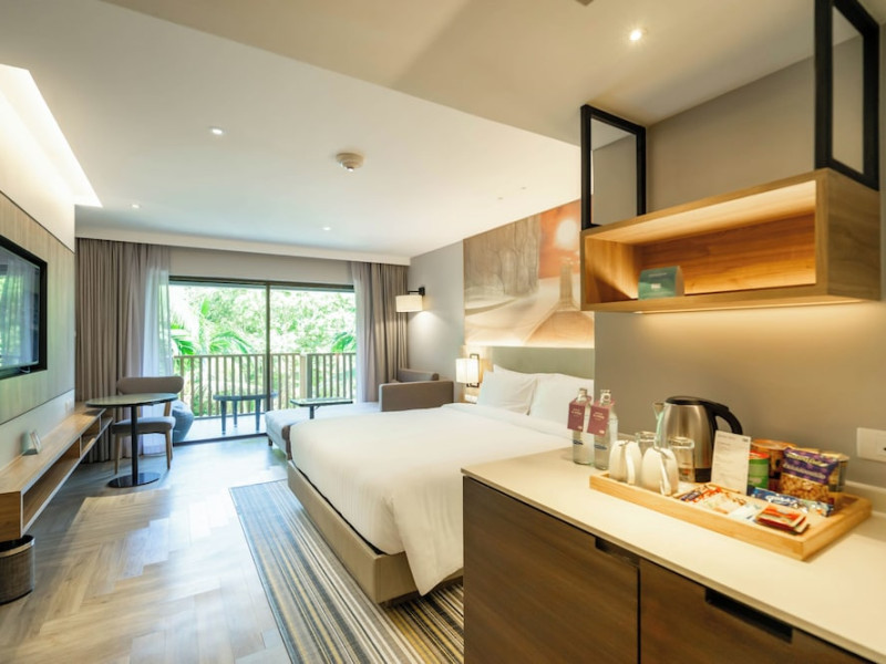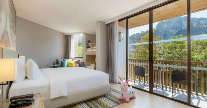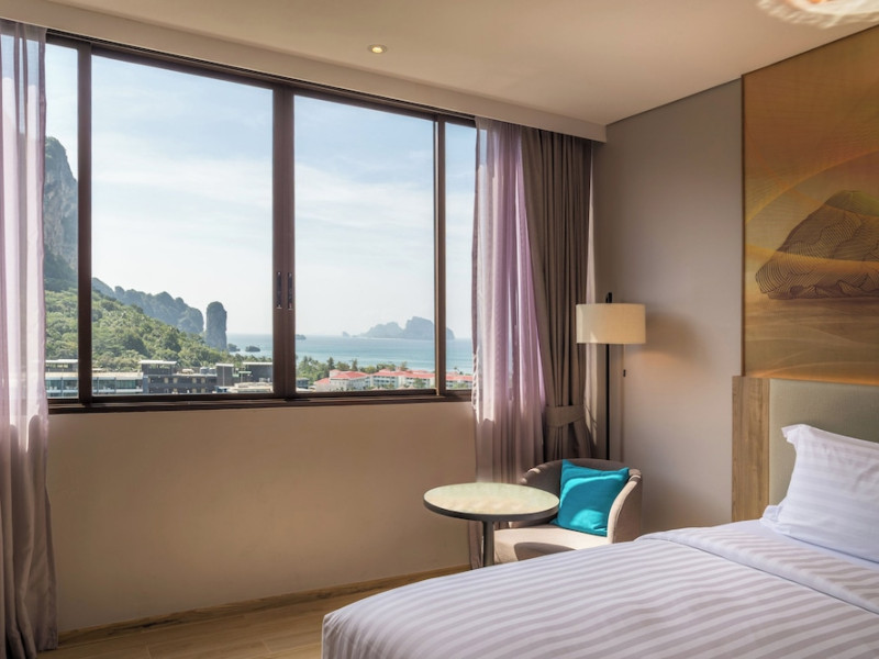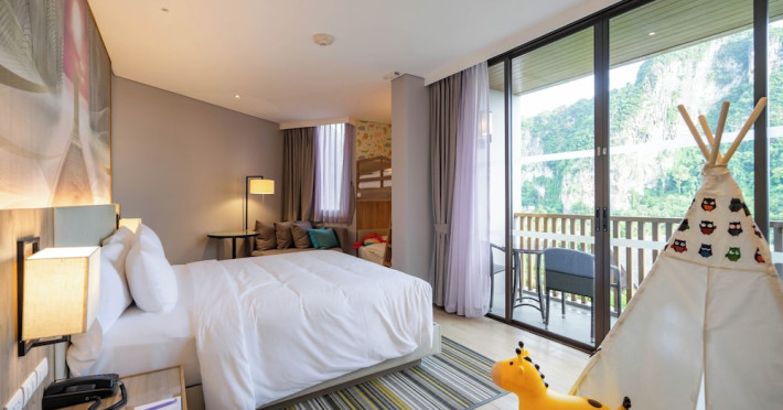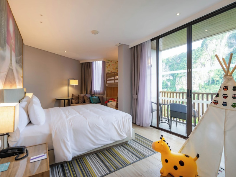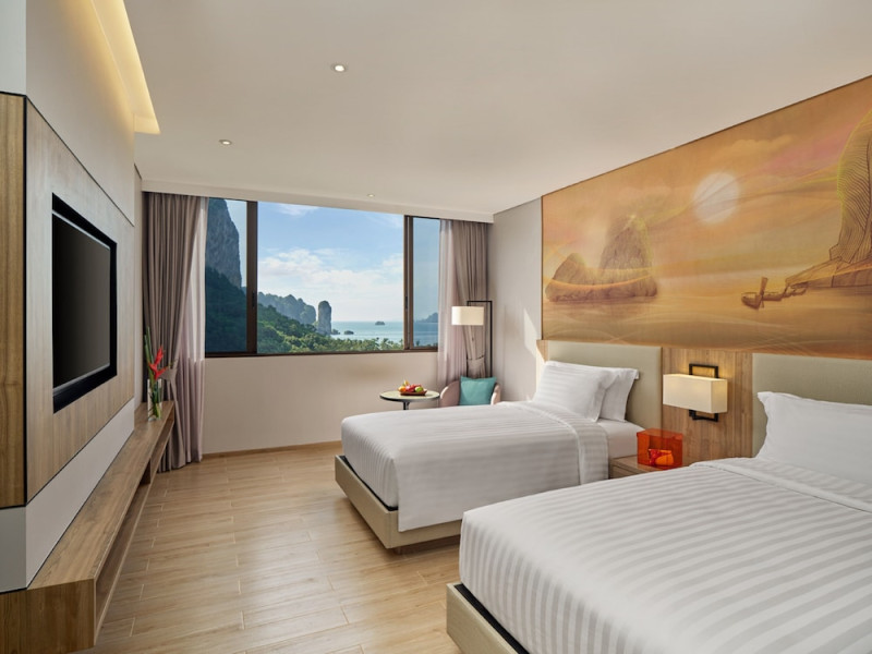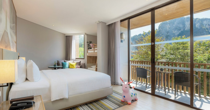 Holiday Inn Resort Krabi Ao Nang Beach offers 171 spacious guestrooms and suites with modern designs inspired by Krabi's landscape. Enjoy complimentary Wi-Fi, Smart TVs, memory foam beds with premium bedding, minibars, and private bathrooms with showers, complimentary toiletries, and bidets. Dining options include the Rakhang Thai Bistro & Bar, serving Thai and international cuisine. Relax by one of two outdoor swimming pools (note: one pool will be under renovation from May 16, 2025, to August 31, 2025; an alternate pool will remain open), unwind at the full-service spa, or work out at the 24-hour fitness center. Other amenities include a kids' club, kids' pool, outdoor playground, sauna, concierge services, a living plant wall, a bar/lounge, and poolside bar. A roundtrip airport shuttle (surcharge) and ferry terminal shuttle (surcharge) are available. The resort is a 1-minute drive from Ao Nang Beach and offers easy access to local attractions. Buffet breakfasts are available daily (fee applies). Renovation work will be conducted during business hours with efforts to minimize noise and disturbance. The Holiday Inn Resort Krabi Ao Nang Beach is a Honeymoon, Leisure, Resort, Tourist hotel. The nightlife/restaurants are easily accessible by taxi or bus from the hotel.