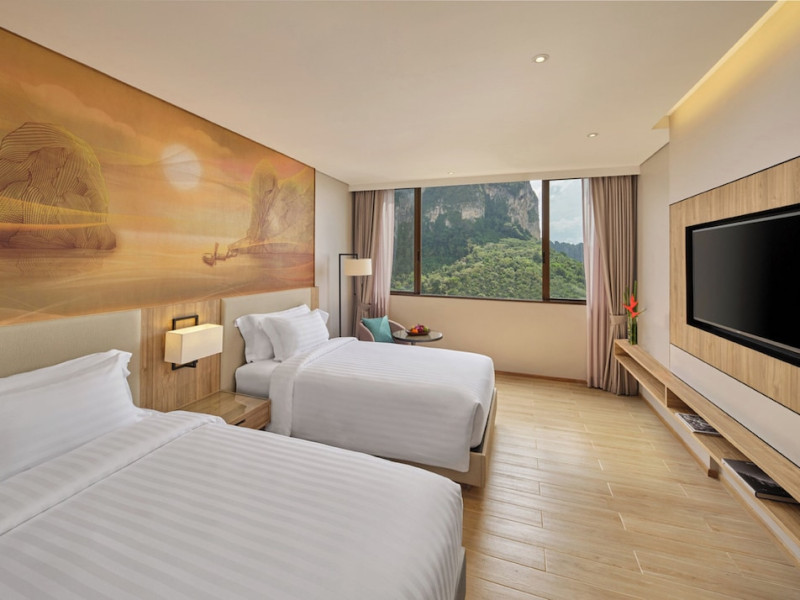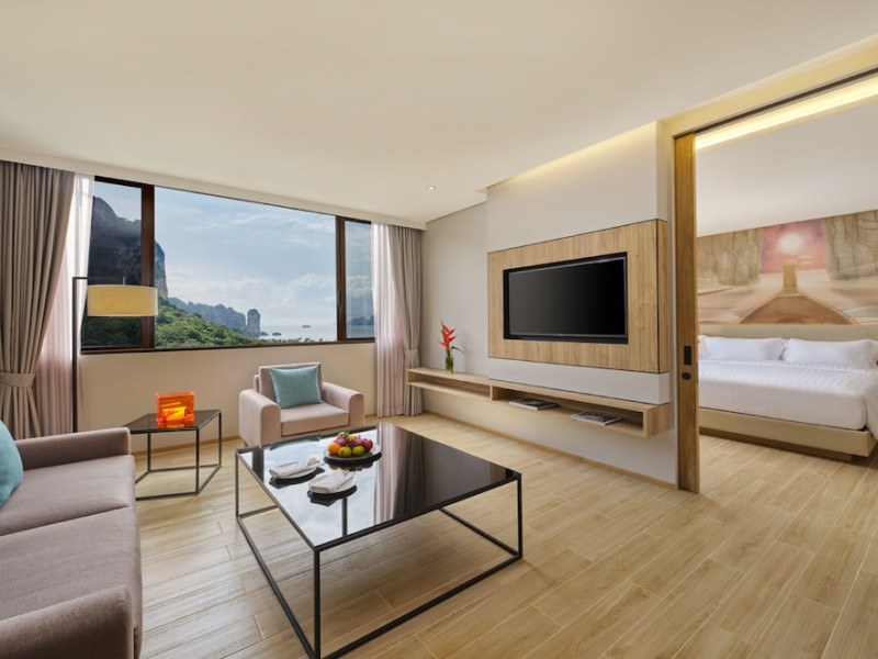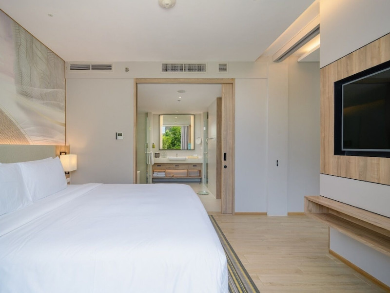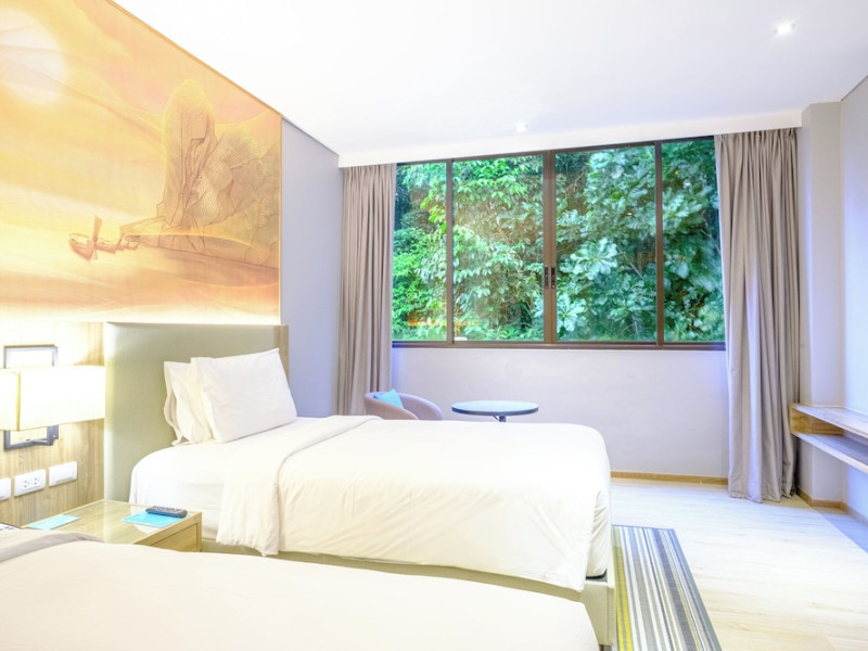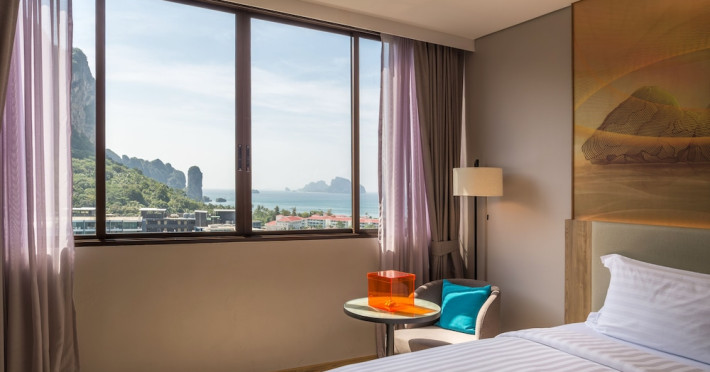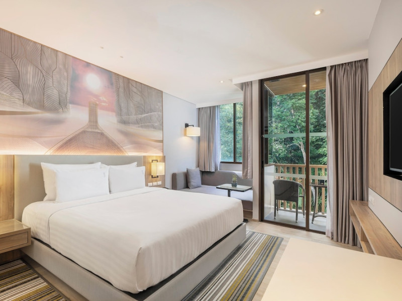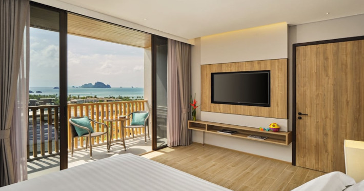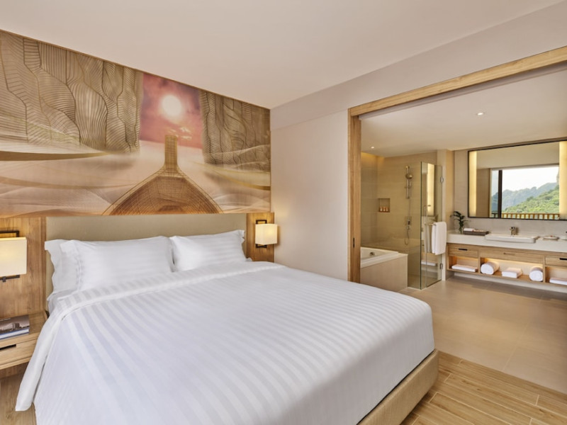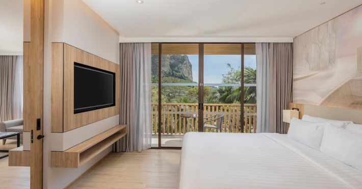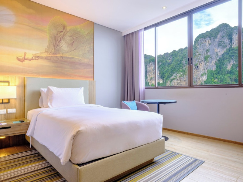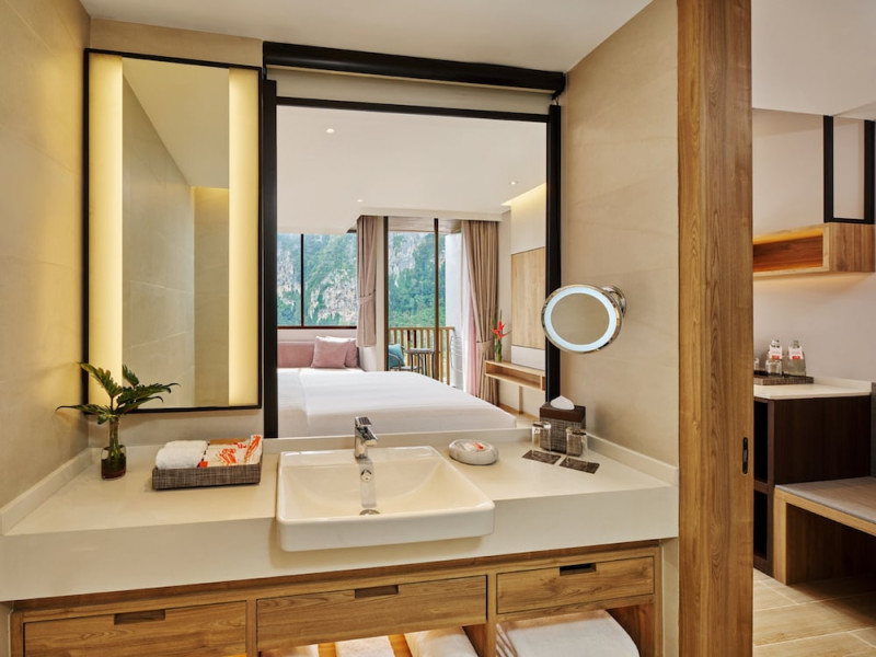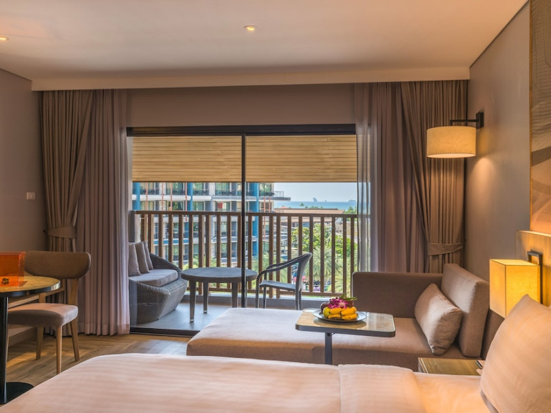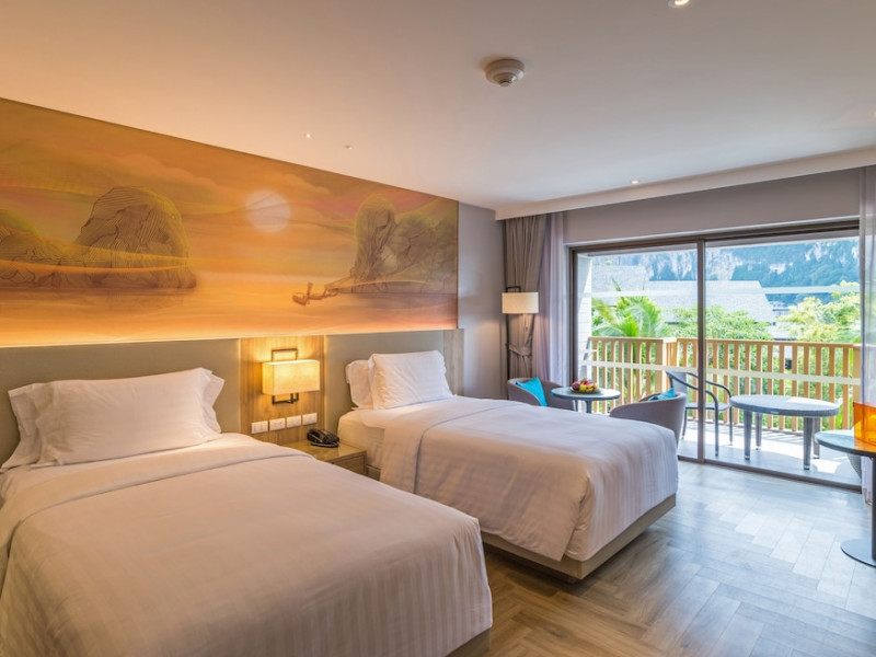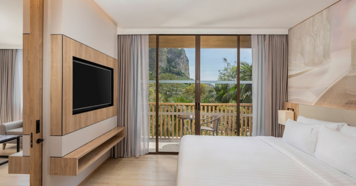 Holiday Inn Resort Krabi Ao Nang Beach offers 171 spacious guestrooms and suites with modern designs inspired by Krabi's landscape. Enjoy complimentary Wi-Fi, Smart TVs, memory foam beds with premium bedding, minibars, and private bathrooms with showers, complimentary toiletries, and bidets. Dining options include the Rakhang Thai Bistro & Bar, serving Thai and international cuisine. Relax by one of two outdoor swimming pools (note: one pool will be under renovation from May 16, 2025, to August 31, 2025; an alternate pool will remain open), unwind at the full-service spa, or work out at the 24-hour fitness center. Other amenities include a kids' club, kids' pool, outdoor playground, sauna, concierge services, a living plant wall, a bar/lounge, and poolside bar. A roundtrip airport shuttle (surcharge) and ferry terminal shuttle (surcharge) are available. The resort is a 1-minute drive from Ao Nang Beach and offers easy access to local attractions. Buffet breakfasts are available daily (fee applies). Renovation work will be conducted during business hours with efforts to minimize noise and disturbance. The Holiday Inn Resort Krabi Ao Nang Beach is a Honeymoon, Leisure, Resort, Tourist hotel. The nightlife/restaurants are easily accessible by taxi or bus from the hotel.