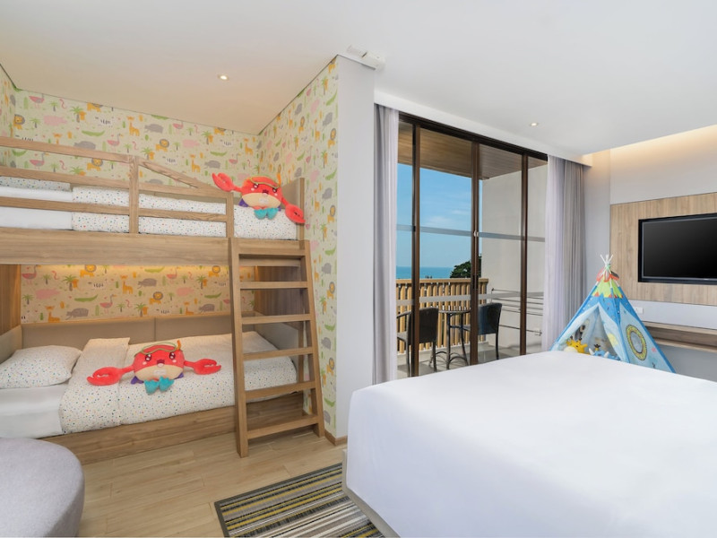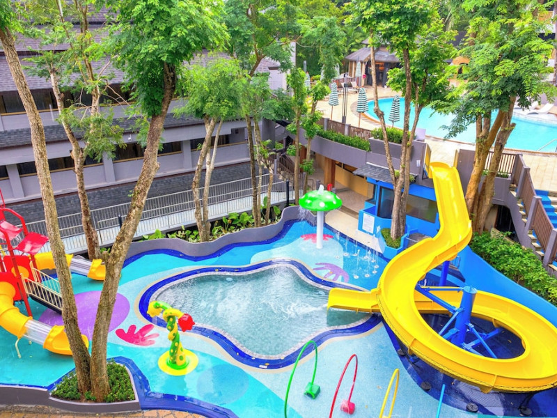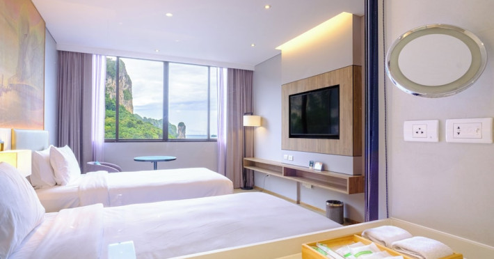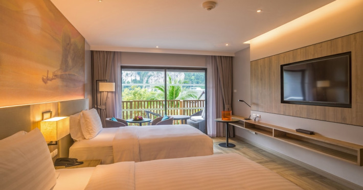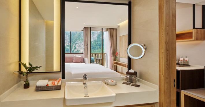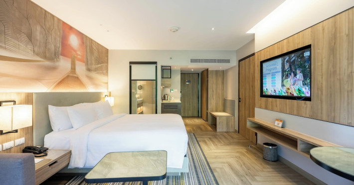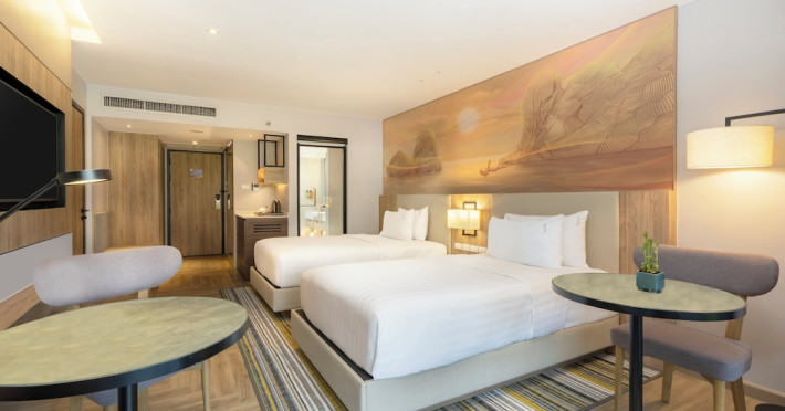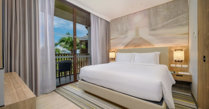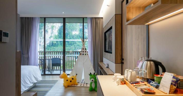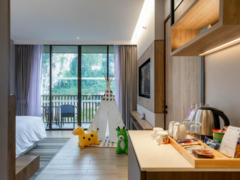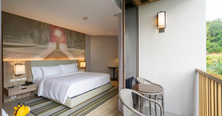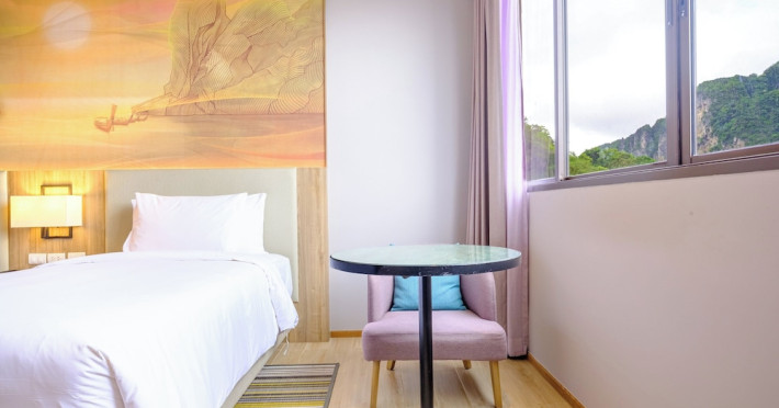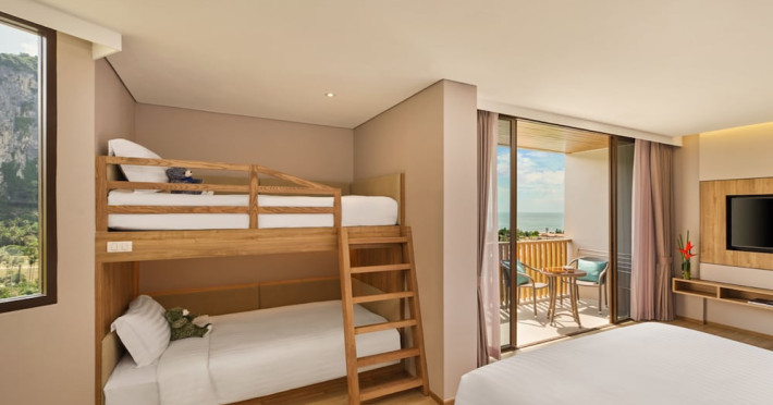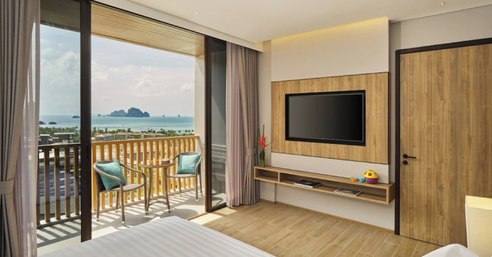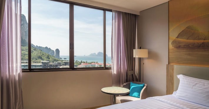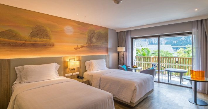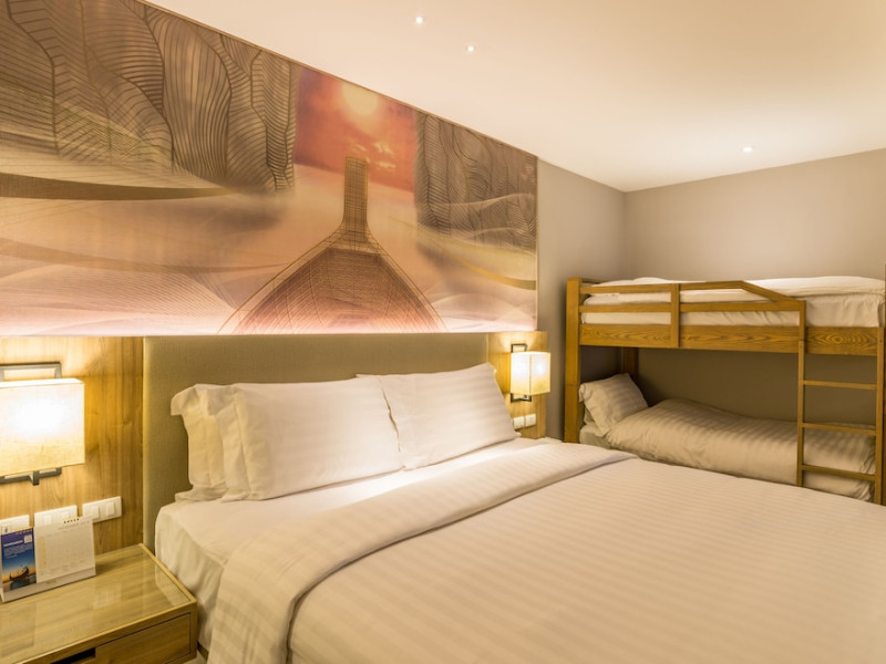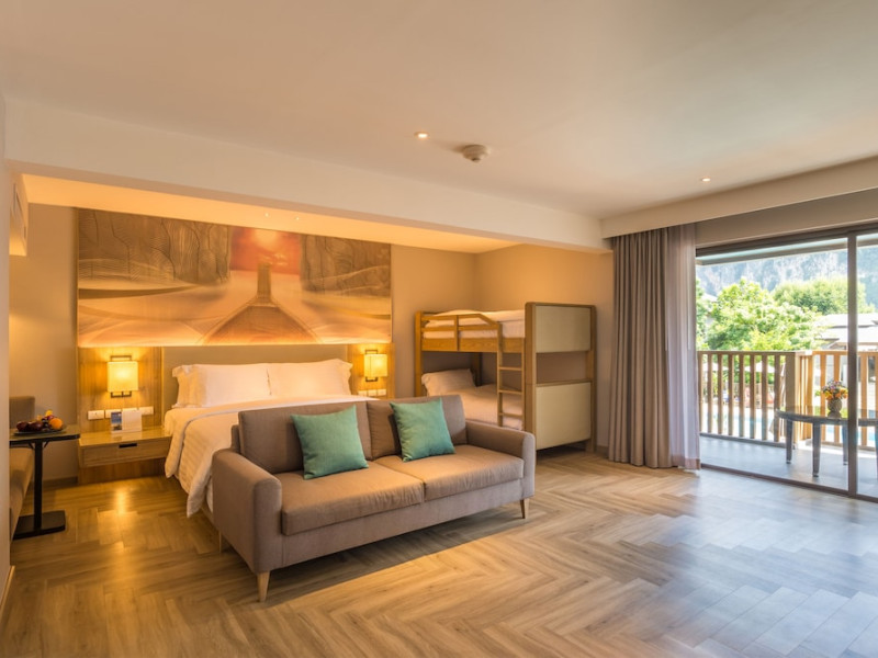 Holiday Inn Resort Krabi Ao Nang Beach offers 171 spacious guestrooms and suites with modern designs inspired by Krabi's landscape. Enjoy complimentary Wi-Fi, Smart TVs, memory foam beds with premium bedding, minibars, and private bathrooms with showers, complimentary toiletries, and bidets. Dining options include the Rakhang Thai Bistro & Bar, serving Thai and international cuisine. Relax by one of two outdoor swimming pools (note: one pool will be under renovation from May 16, 2025, to August 31, 2025; an alternate pool will remain open), unwind at the full-service spa, or work out at the 24-hour fitness center. Other amenities include a kids' club, kids' pool, outdoor playground, sauna, concierge services, a living plant wall, a bar/lounge, and poolside bar. A roundtrip airport shuttle (surcharge) and ferry terminal shuttle (surcharge) are available. The resort is a 1-minute drive from Ao Nang Beach and offers easy access to local attractions. Buffet breakfasts are available daily (fee applies). Renovation work will be conducted during business hours with efforts to minimize noise and disturbance. The Holiday Inn Resort Krabi Ao Nang Beach is a Honeymoon, Leisure, Resort, Tourist hotel. The nightlife/restaurants are easily accessible by taxi or bus from the hotel.