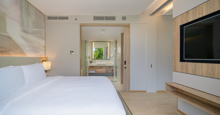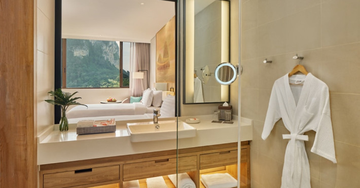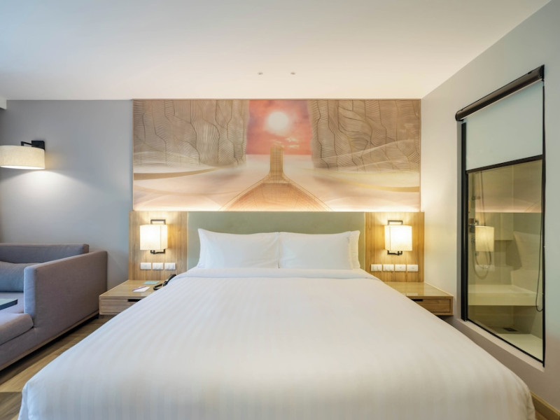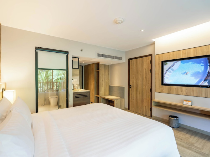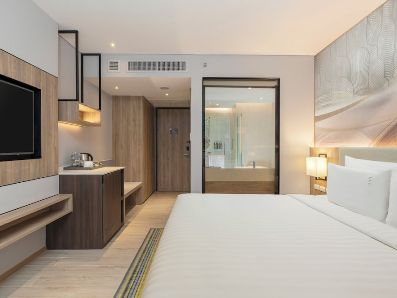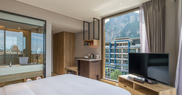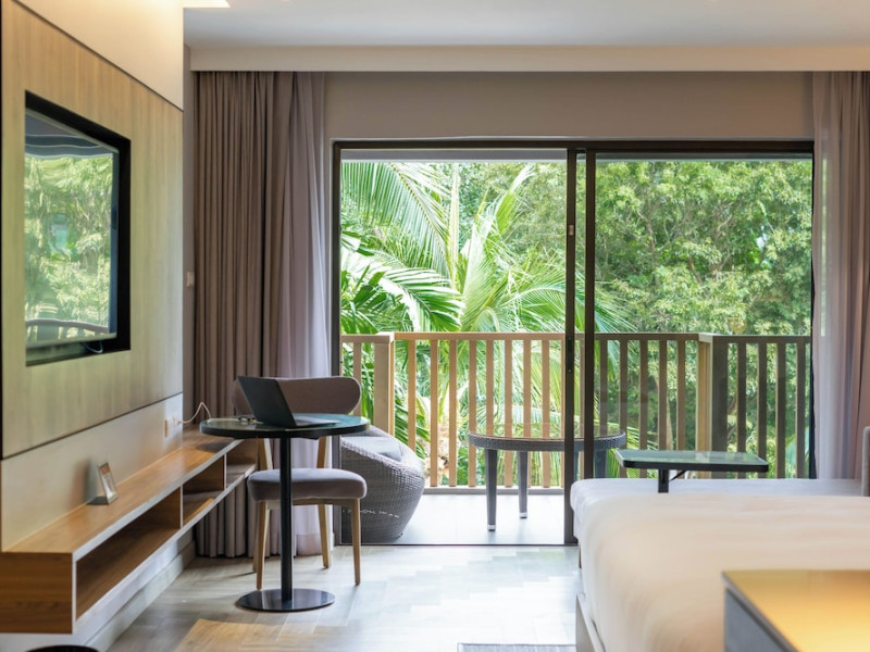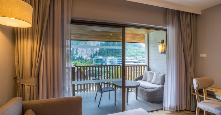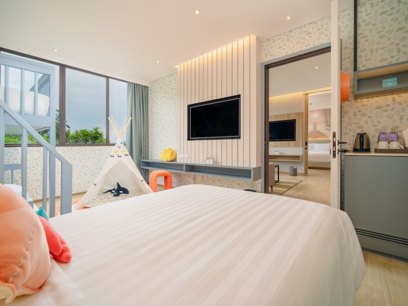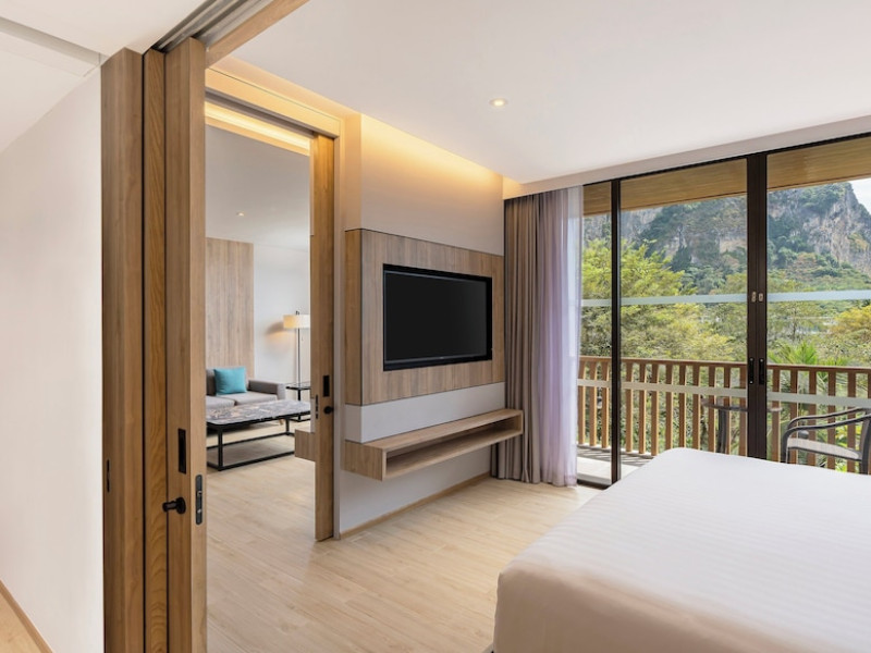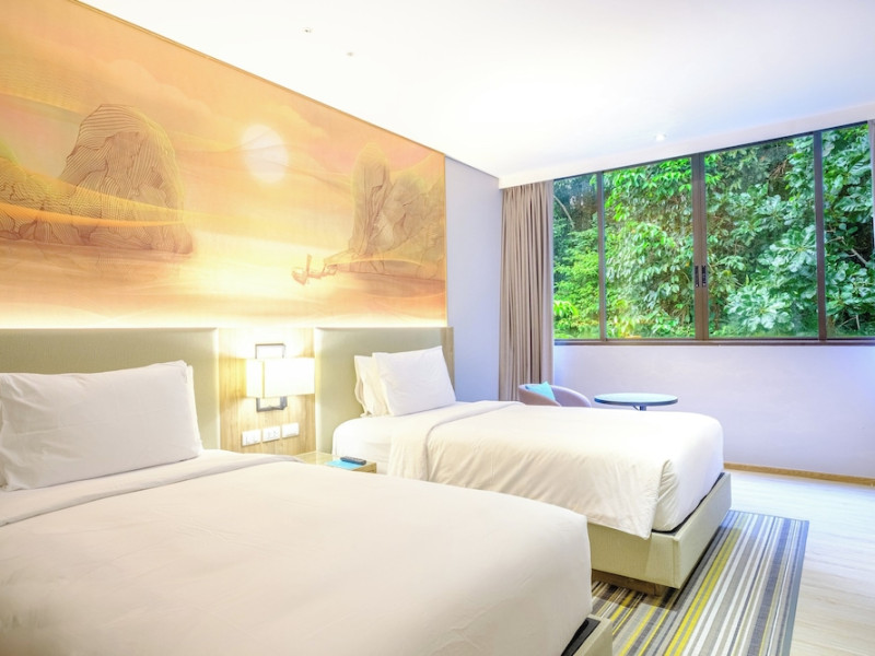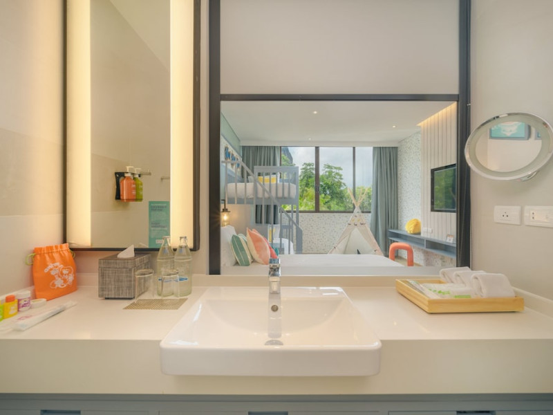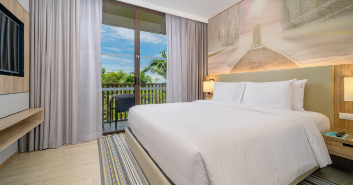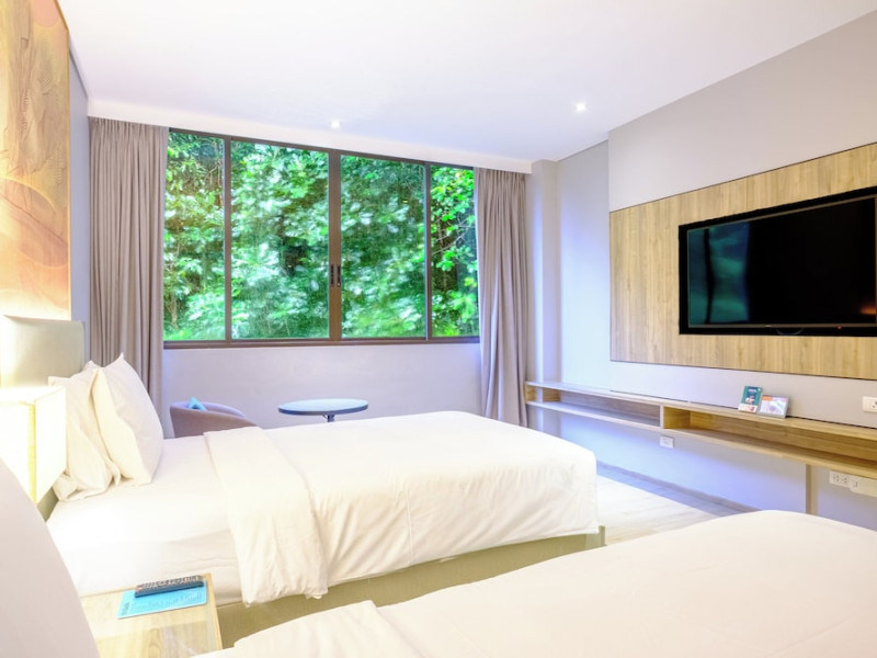 Holiday Inn Resort Krabi Ao Nang Beach offers 171 spacious guestrooms and suites with modern designs inspired by Krabi's landscape. Enjoy complimentary Wi-Fi, Smart TVs, memory foam beds with premium bedding, minibars, and private bathrooms with showers, complimentary toiletries, and bidets. Dining options include the Rakhang Thai Bistro & Bar, serving Thai and international cuisine. Relax by one of two outdoor swimming pools (note: one pool will be under renovation from May 16, 2025, to August 31, 2025; an alternate pool will remain open), unwind at the full-service spa, or work out at the 24-hour fitness center. Other amenities include a kids' club, kids' pool, outdoor playground, sauna, concierge services, a living plant wall, a bar/lounge, and poolside bar. A roundtrip airport shuttle (surcharge) and ferry terminal shuttle (surcharge) are available. The resort is a 1-minute drive from Ao Nang Beach and offers easy access to local attractions. Buffet breakfasts are available daily (fee applies). Renovation work will be conducted during business hours with efforts to minimize noise and disturbance. The Holiday Inn Resort Krabi Ao Nang Beach is a Honeymoon, Leisure, Resort, Tourist hotel. The nightlife/restaurants are easily accessible by taxi or bus from the hotel.