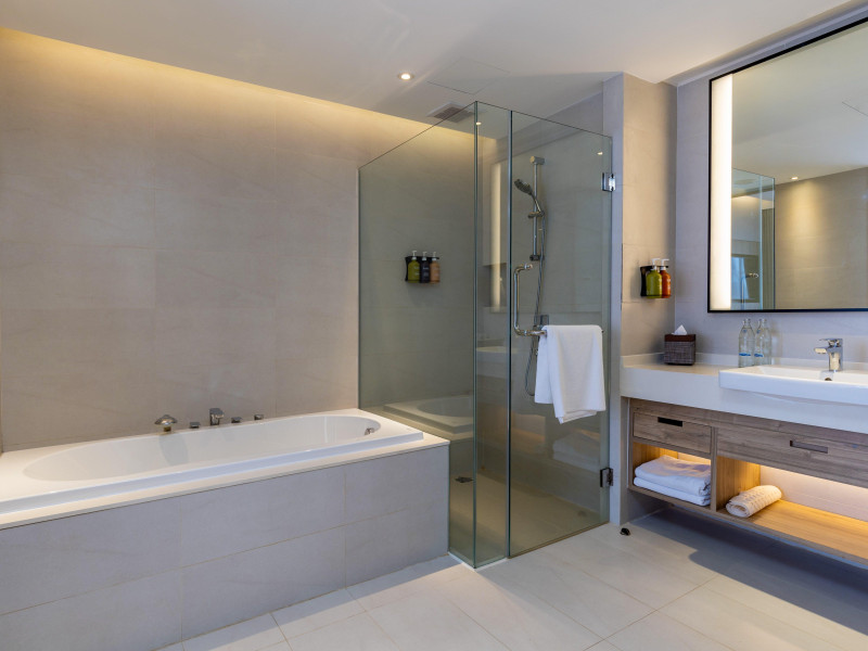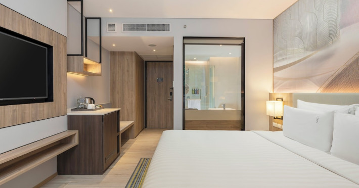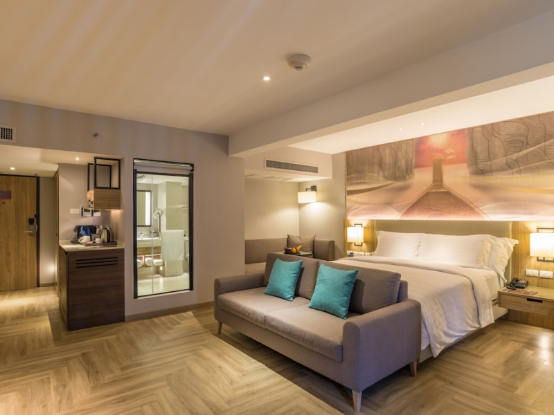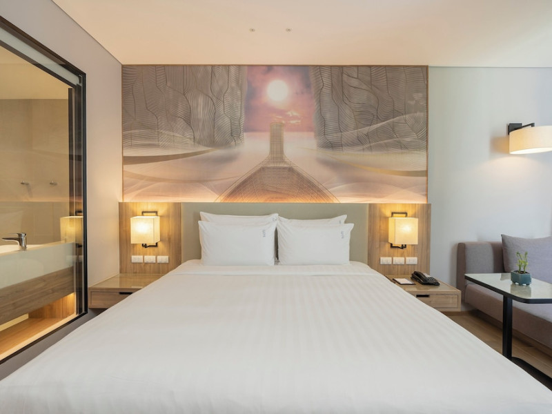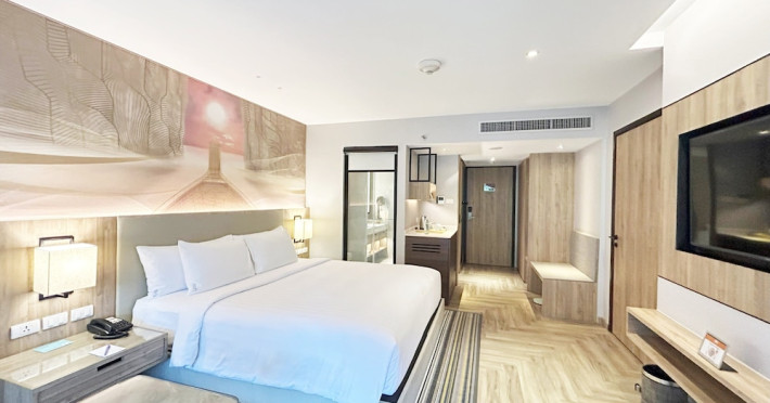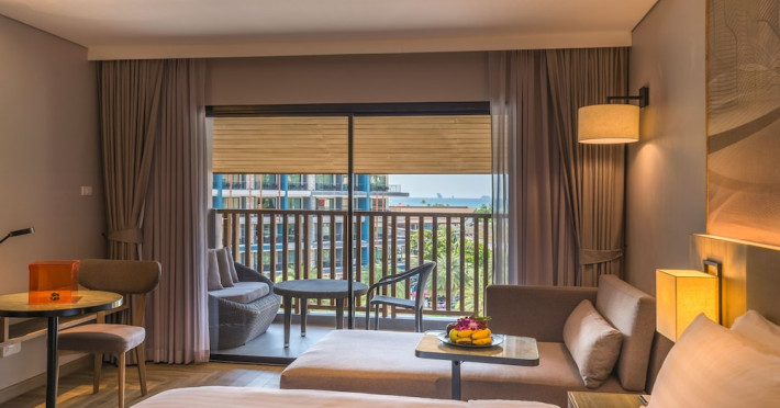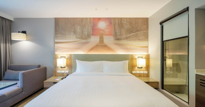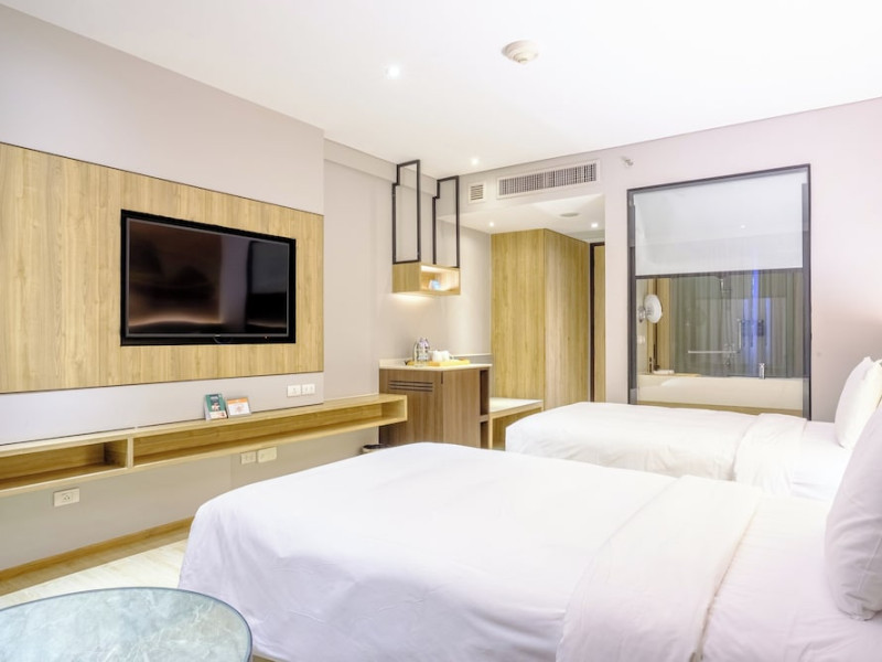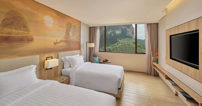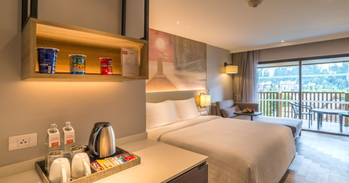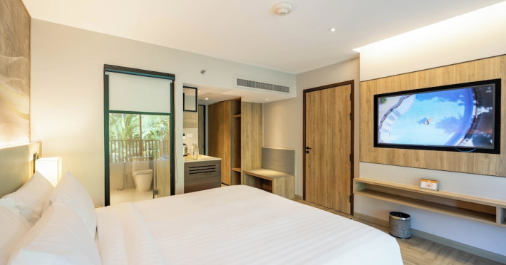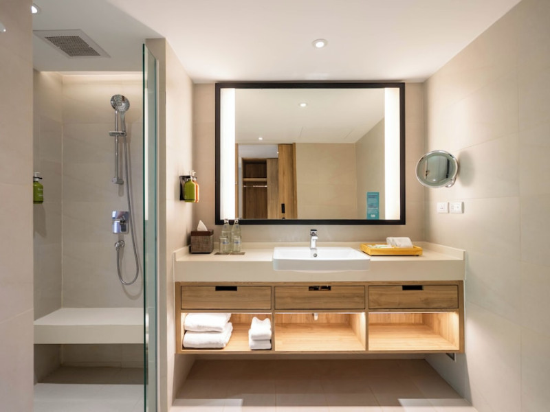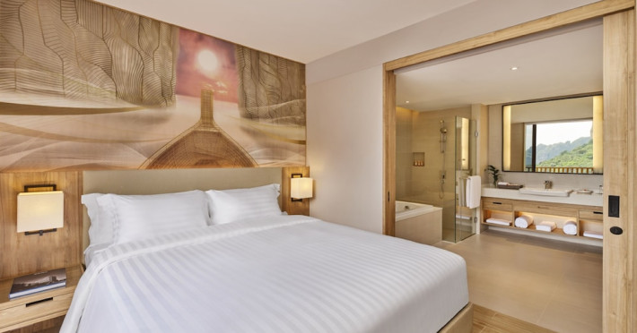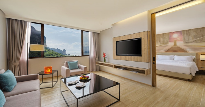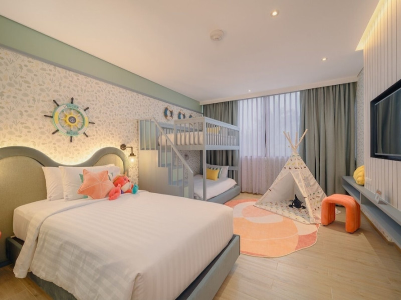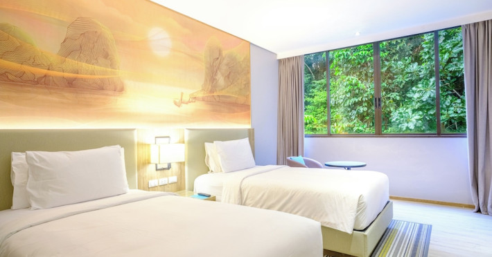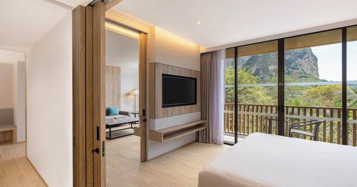 Holiday Inn Resort Krabi Ao Nang Beach offers 171 spacious guestrooms and suites with modern designs inspired by Krabi's landscape. Enjoy complimentary Wi-Fi, Smart TVs, memory foam beds with premium bedding, minibars, and private bathrooms with showers, complimentary toiletries, and bidets. Dining options include the Rakhang Thai Bistro & Bar, serving Thai and international cuisine. Relax by one of two outdoor swimming pools (note: one pool will be under renovation from May 16, 2025, to August 31, 2025; an alternate pool will remain open), unwind at the full-service spa, or work out at the 24-hour fitness center. Other amenities include a kids' club, kids' pool, outdoor playground, sauna, concierge services, a living plant wall, a bar/lounge, and poolside bar. A roundtrip airport shuttle (surcharge) and ferry terminal shuttle (surcharge) are available. The resort is a 1-minute drive from Ao Nang Beach and offers easy access to local attractions. Buffet breakfasts are available daily (fee applies). Renovation work will be conducted during business hours with efforts to minimize noise and disturbance. The Holiday Inn Resort Krabi Ao Nang Beach is a Honeymoon, Leisure, Resort, Tourist hotel. The nightlife/restaurants are easily accessible by taxi or bus from the hotel.