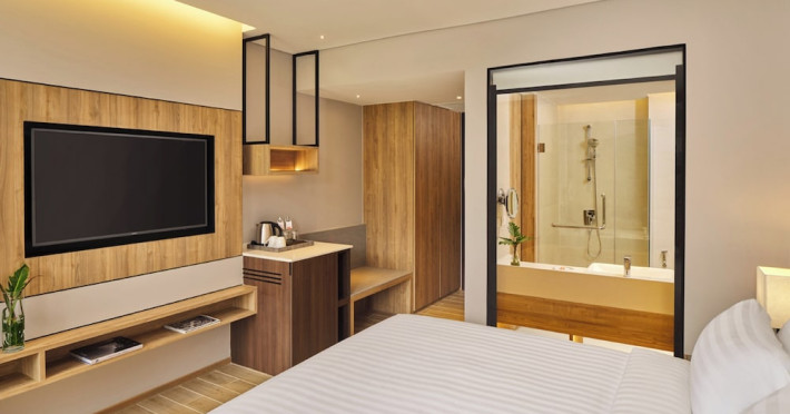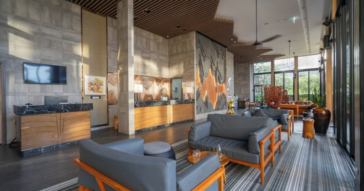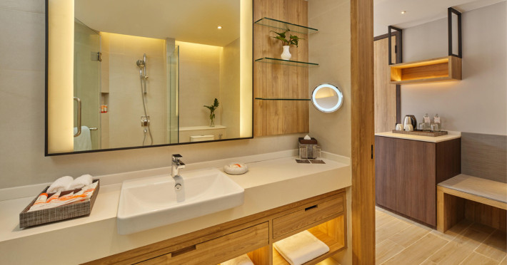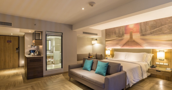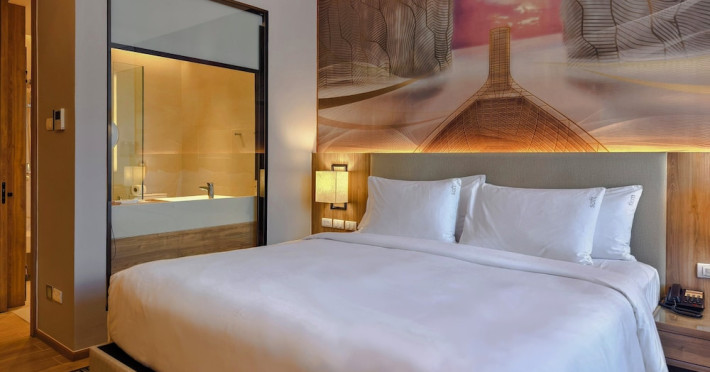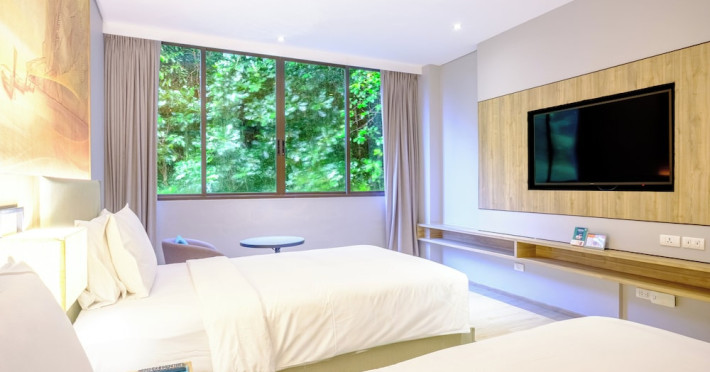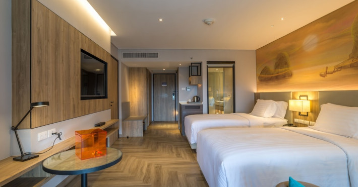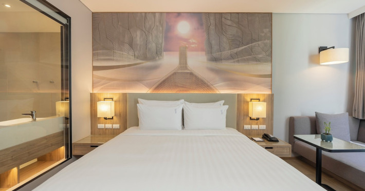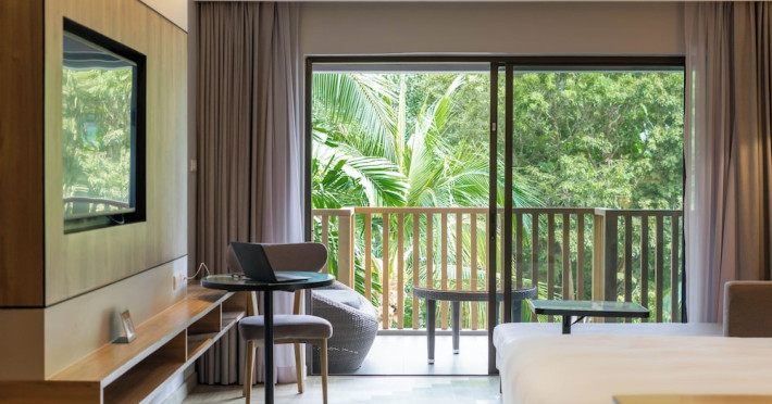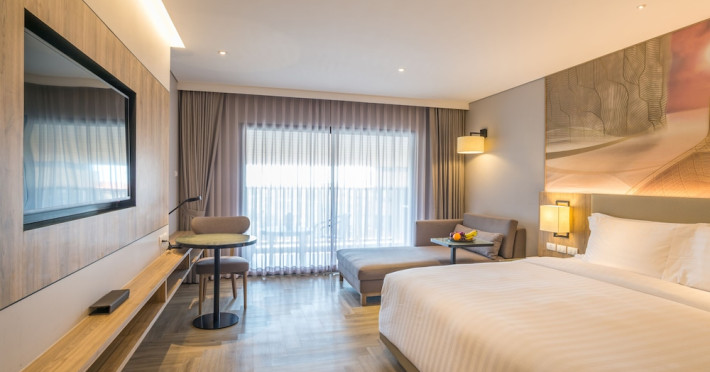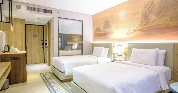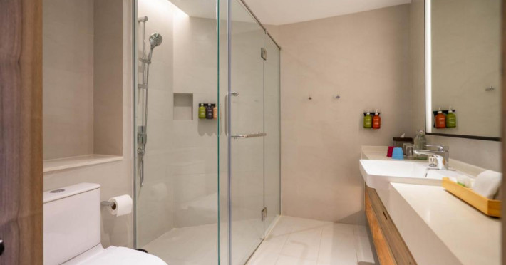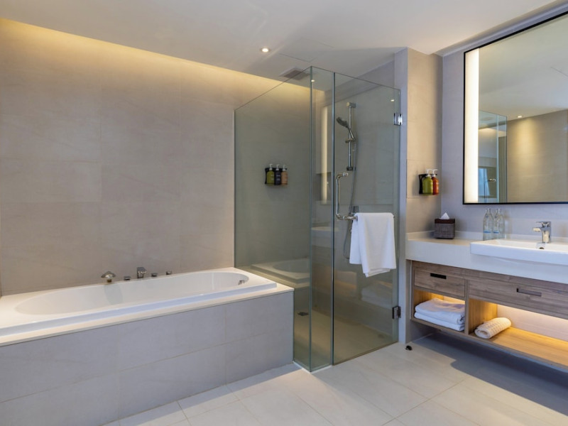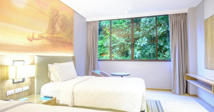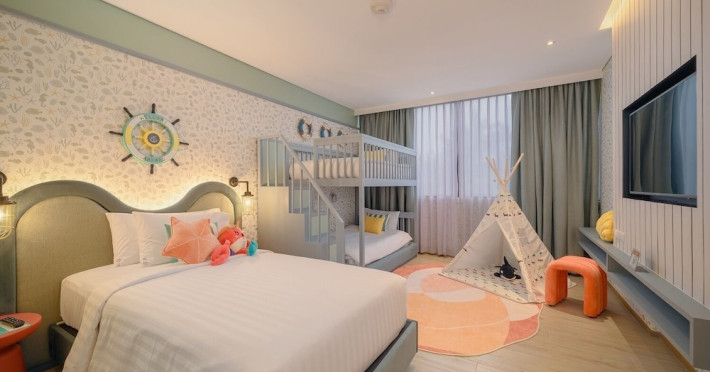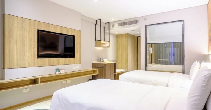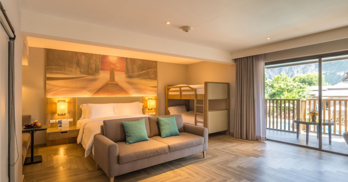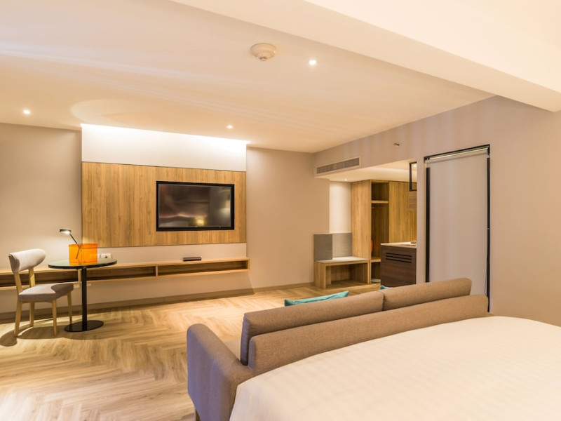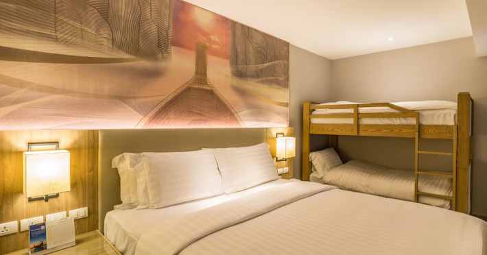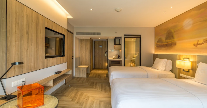Holiday Inn Resort Krabi Ao Nang Beach offers 171 spacious guestrooms and suites with modern designs inspired by Krabi's landscape. Enjoy complimentary Wi-Fi, Smart TVs, memory foam beds with premium bedding, minibars, and private bathrooms with showers, complimentary toiletries, and bidets. Dining options include the Rakhang Thai Bistro & Bar, serving Thai and international cuisine. Relax by one of two outdoor swimming pools (note: one pool will be under renovation from May 16, 2025, to August 31, 2025; an alternate pool will remain open), unwind at the full-service spa, or work out at the 24-hour fitness center. Other amenities include a kids' club, kids' pool, outdoor playground, sauna, concierge services, a living plant wall, a bar/lounge, and poolside bar. A roundtrip airport shuttle (surcharge) and ferry terminal shuttle (surcharge) are available. The resort is a 1-minute drive from Ao Nang Beach and offers easy access to local attractions. Buffet breakfasts are available daily (fee applies). Renovation work will be conducted during business hours with efforts to minimize noise and disturbance. The Holiday Inn Resort Krabi Ao Nang Beach is a Honeymoon, Leisure, Resort, Tourist hotel. The nightlife/restaurants are easily accessible by taxi or bus from the hotel.