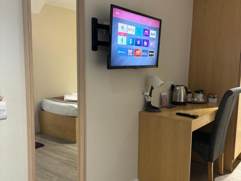 Holtwhites Hotel in Enfield, North London, offers fully renovated en-suite accommodation with free WiFi. Each room includes a flat-screen TV, tea and coffee making facilities, and a private shower room. A hairdryer and ironing board are available upon request. The hotel is 850 metres from Enfield Town Centre and 1.2km from Enfield Town station (direct access to Central London). Good transport links to UK airports are available. Reception is open 24 hours. Please note: access is via stairs only; parking is limited and first-come, first-served; guests under 18 must be accompanied by an adult; smoking is prohibited (GBP 100 cleaning fee applies); a GBP 100 damage deposit (refundable) is required upon arrival (credit card or cash); photo ID and credit card are required upon check-in; special requests are subject to availability and additional charges; please inform the hotel of your arrival time; guests under 18 must check in with a parent or guardian. The Holtwhites Hotel is a hotel.
