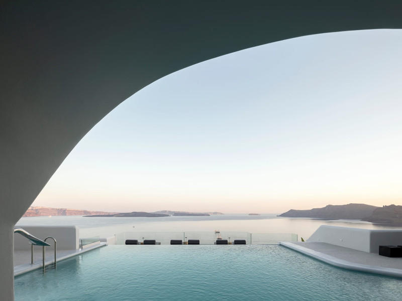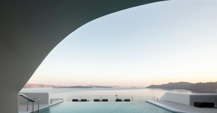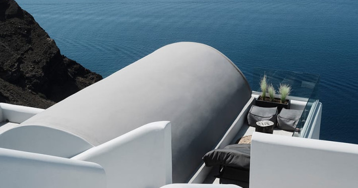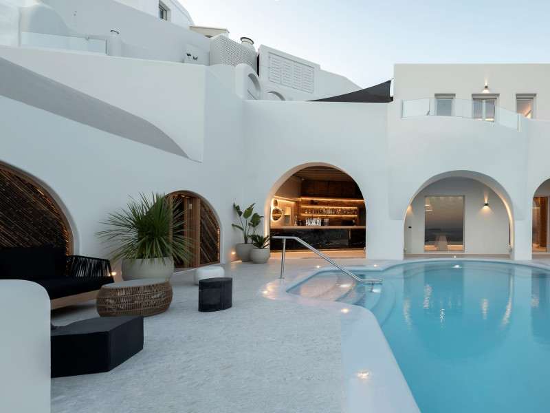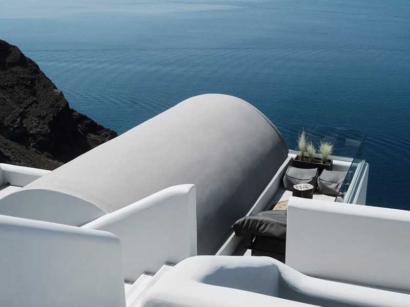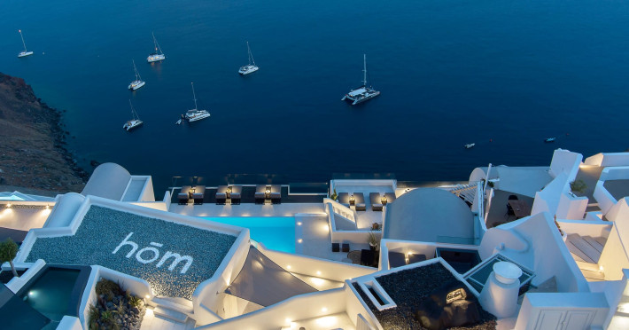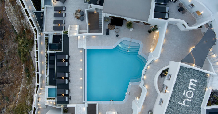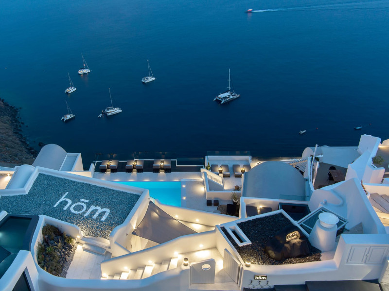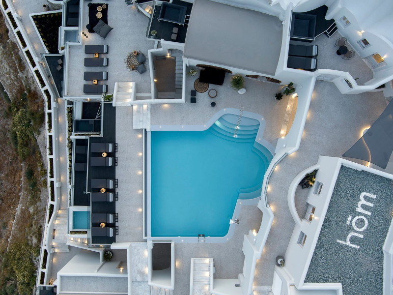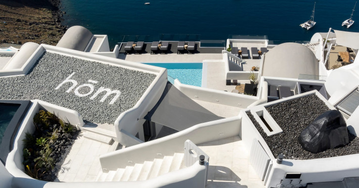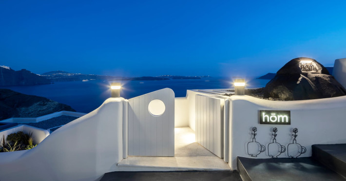 Hom Santorini is a contemporary conceptual summerhouse in Oia, sharing the Greek warm welcome into twelve dreamy suites.Hom follows the path of a less cluttered life creating a combination of simplicity and beauty.Earthy colors, oval and curvy shapes, clear lines are in harmony with aquatic elements embracing a modern depiction of ancient Greek aesthetics.