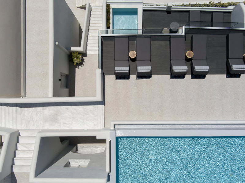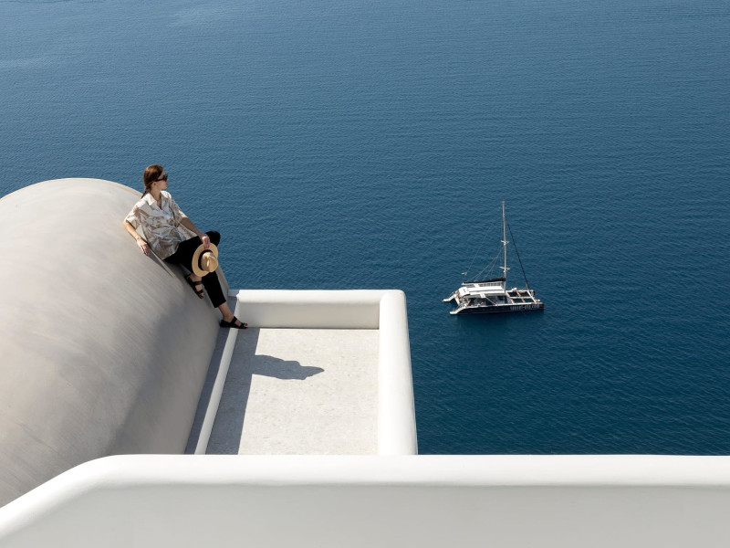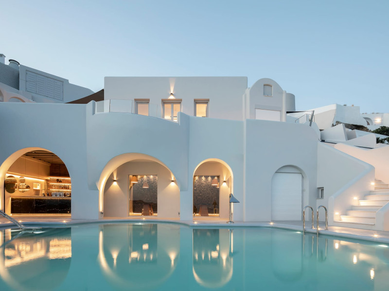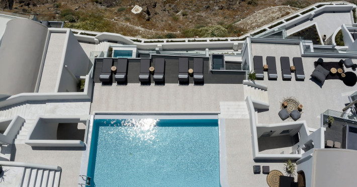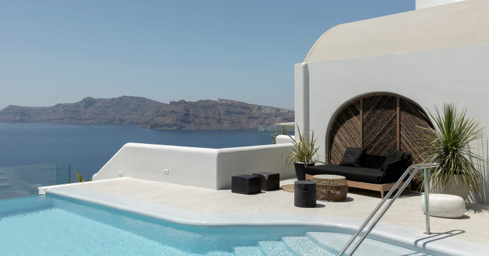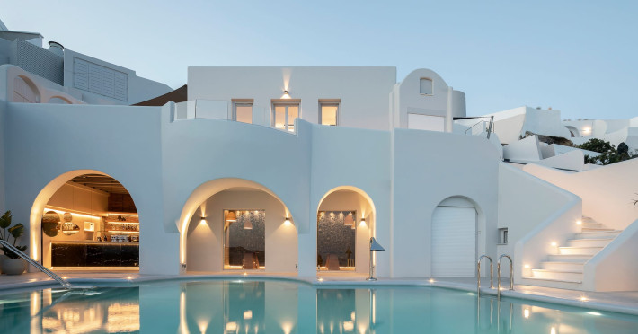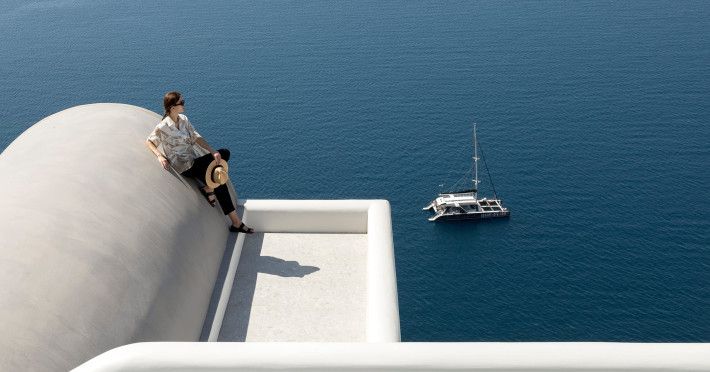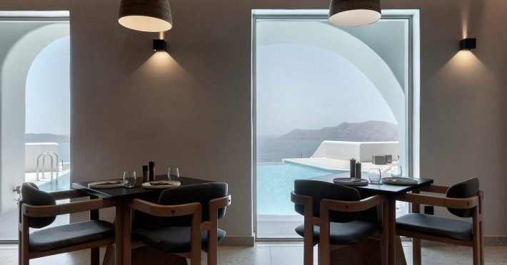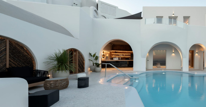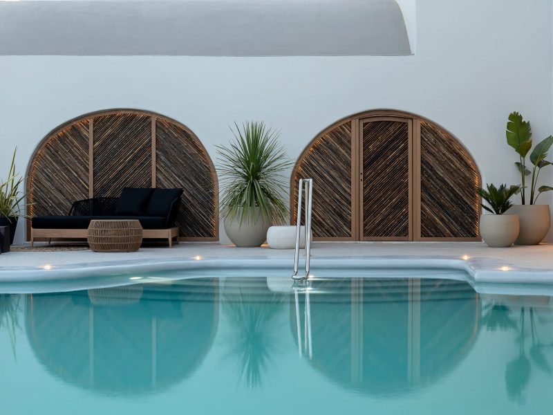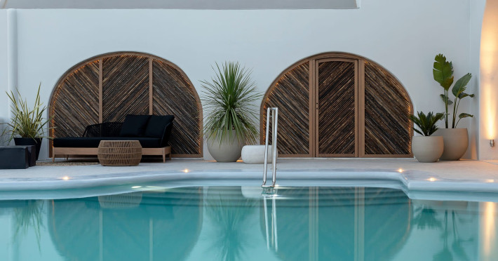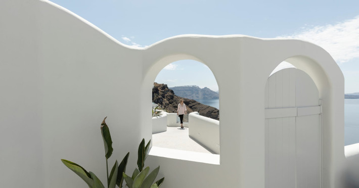 Hom Santorini is a contemporary conceptual summerhouse in Oia, sharing the Greek warm welcome into twelve dreamy suites.Hom follows the path of a less cluttered life creating a combination of simplicity and beauty.Earthy colors, oval and curvy shapes, clear lines are in harmony with aquatic elements embracing a modern depiction of ancient Greek aesthetics.