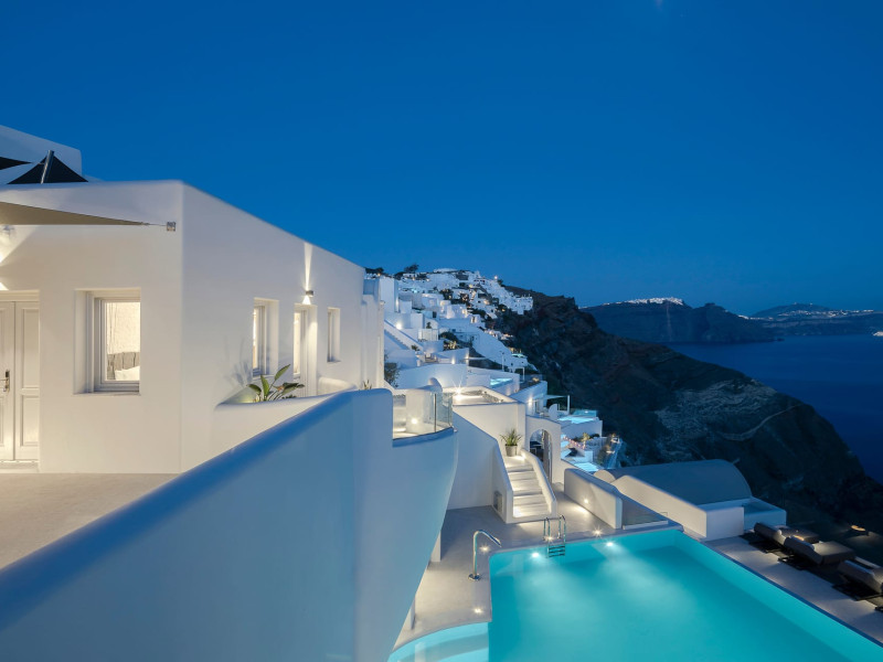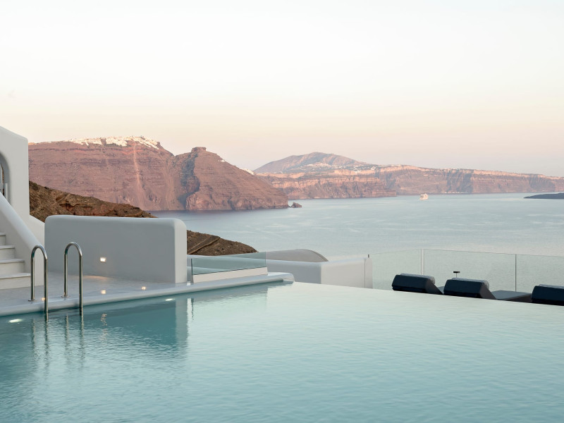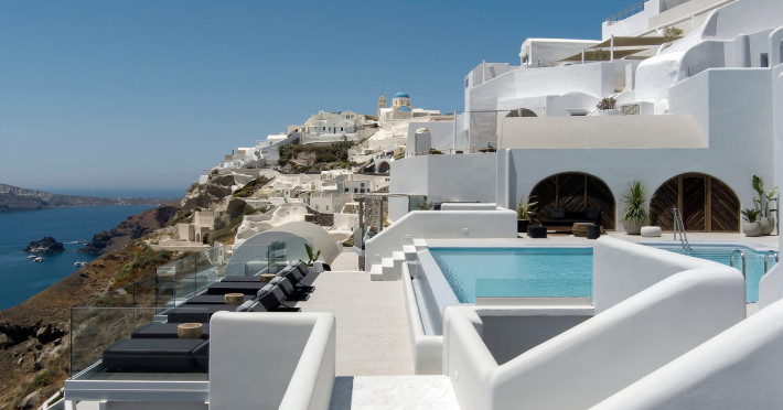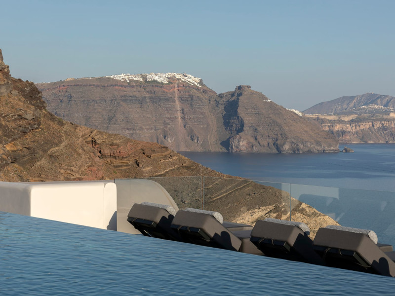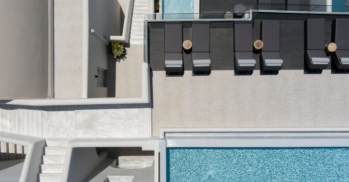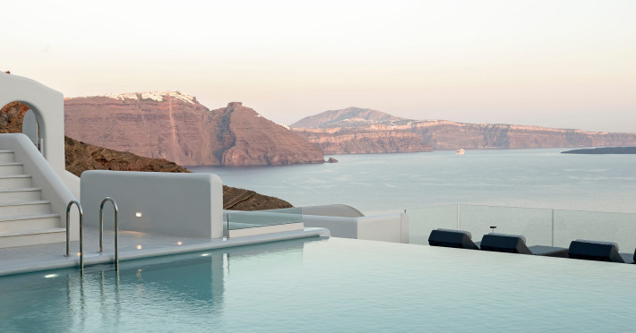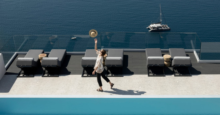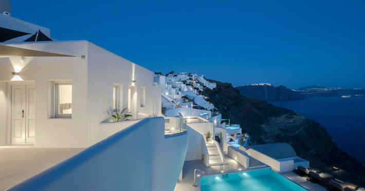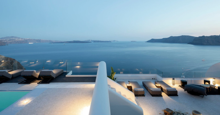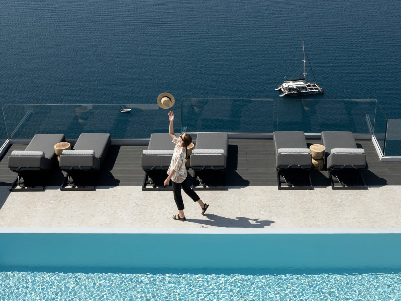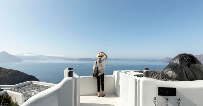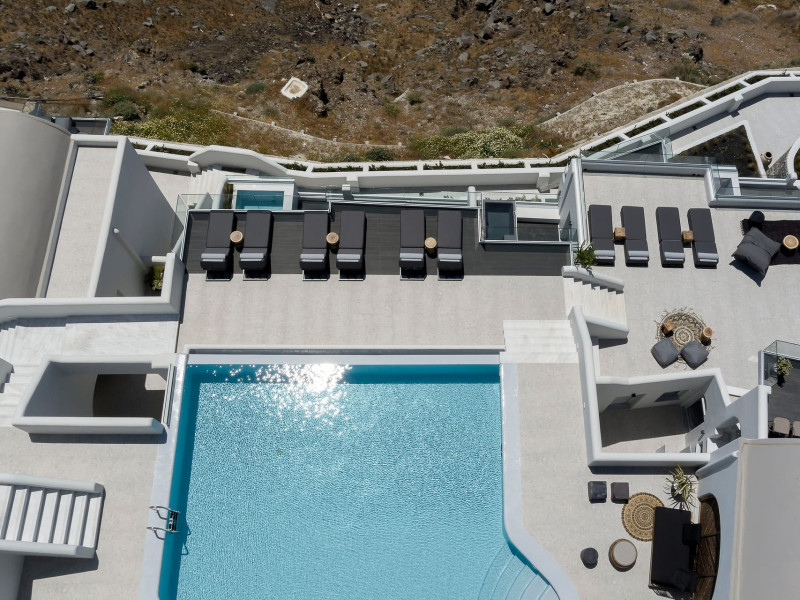 Hom Santorini is a contemporary conceptual summerhouse in Oia, sharing the Greek warm welcome into twelve dreamy suites.Hom follows the path of a less cluttered life creating a combination of simplicity and beauty.Earthy colors, oval and curvy shapes, clear lines are in harmony with aquatic elements embracing a modern depiction of ancient Greek aesthetics.