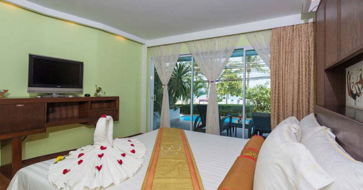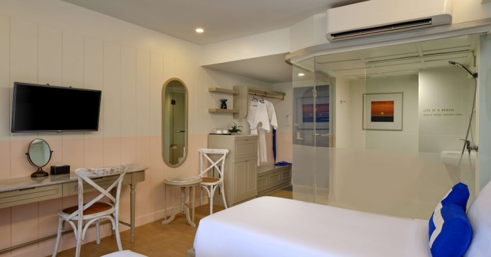 The hotel features a restaurant, bar, garden, and terrace. Guests can enjoy complimentary Wi-Fi, a 24-hour front desk, room service, and concierge services. The air-conditioned rooms include a desk, kettle, refrigerator, flat-screen TV, balcony, and a private bathroom with a shower, complimentary toiletries, and a hairdryer. Buffet breakfast options are available. Additional amenities include multilingual staff, dry cleaning/laundry services, and car parking. An airport shuttle is available for a surcharge. The HOMM Bliss Southbeach Patong is a hotel.