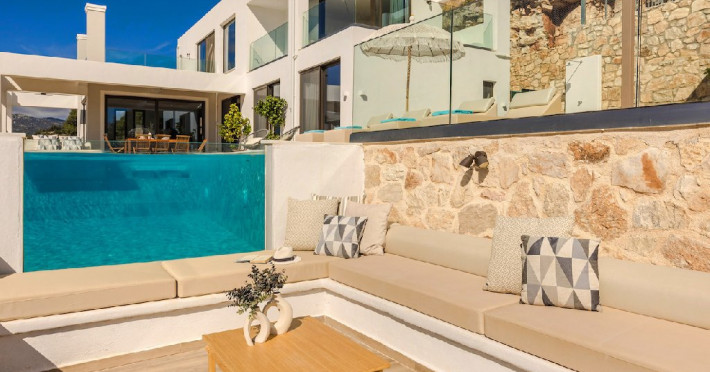 Descriere: Horizon Villas este un complex exclusivist de vile situat in zona Agia Efimia, pe insula Kefalonia, oferind o experienta de cazare eleganta si linistita intr-un cadru natural spectaculos. Complexul este amplasat pe un deal, oferind privelisti panoramice catre Marea Ionica si insulele din apropiere. Vilele sunt concepute intr-un stil modern si minimalist, imbinand designul contemporan cu mediul natural al insulei, fiind potrivite pentru familii sau grupuri de prieteni care cauta intimitate si relaxare.